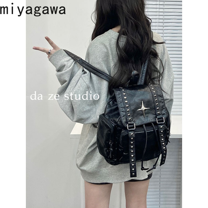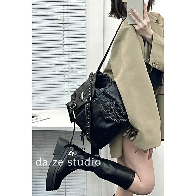 Weiyinxing 2024 New Student Classroom Large Capacity Causal Spicy Girl Y2k Versatile Commuting Black Autumn/Winter Backpack