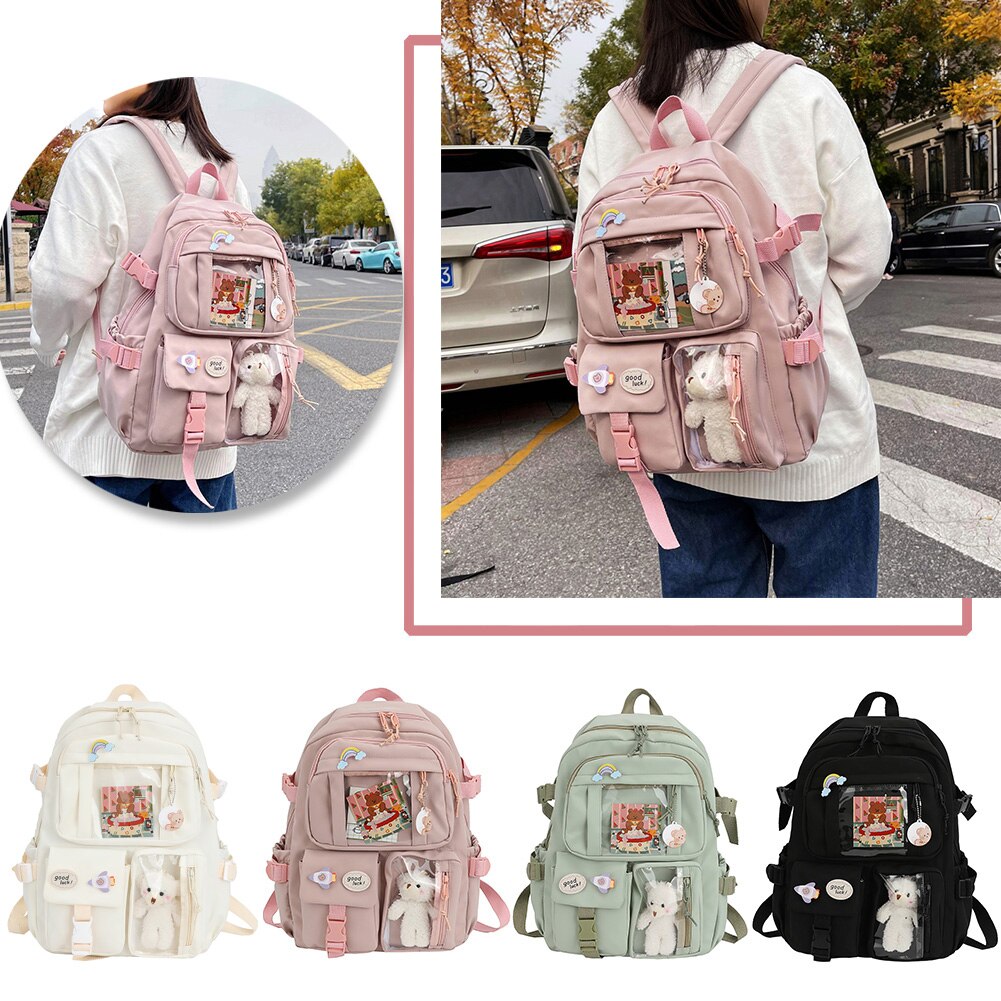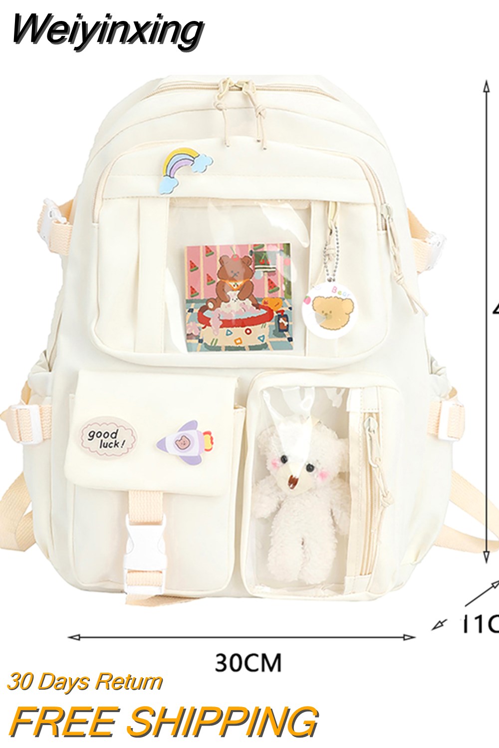 Weiyinxing Aesthetic Women Backpack School Bag for Teen Girls Japanese Korean Rucksack Student Bookbags with Cute Accessor Mochila 0409