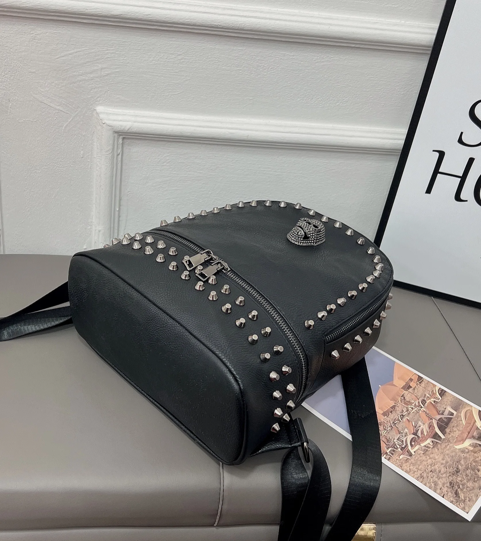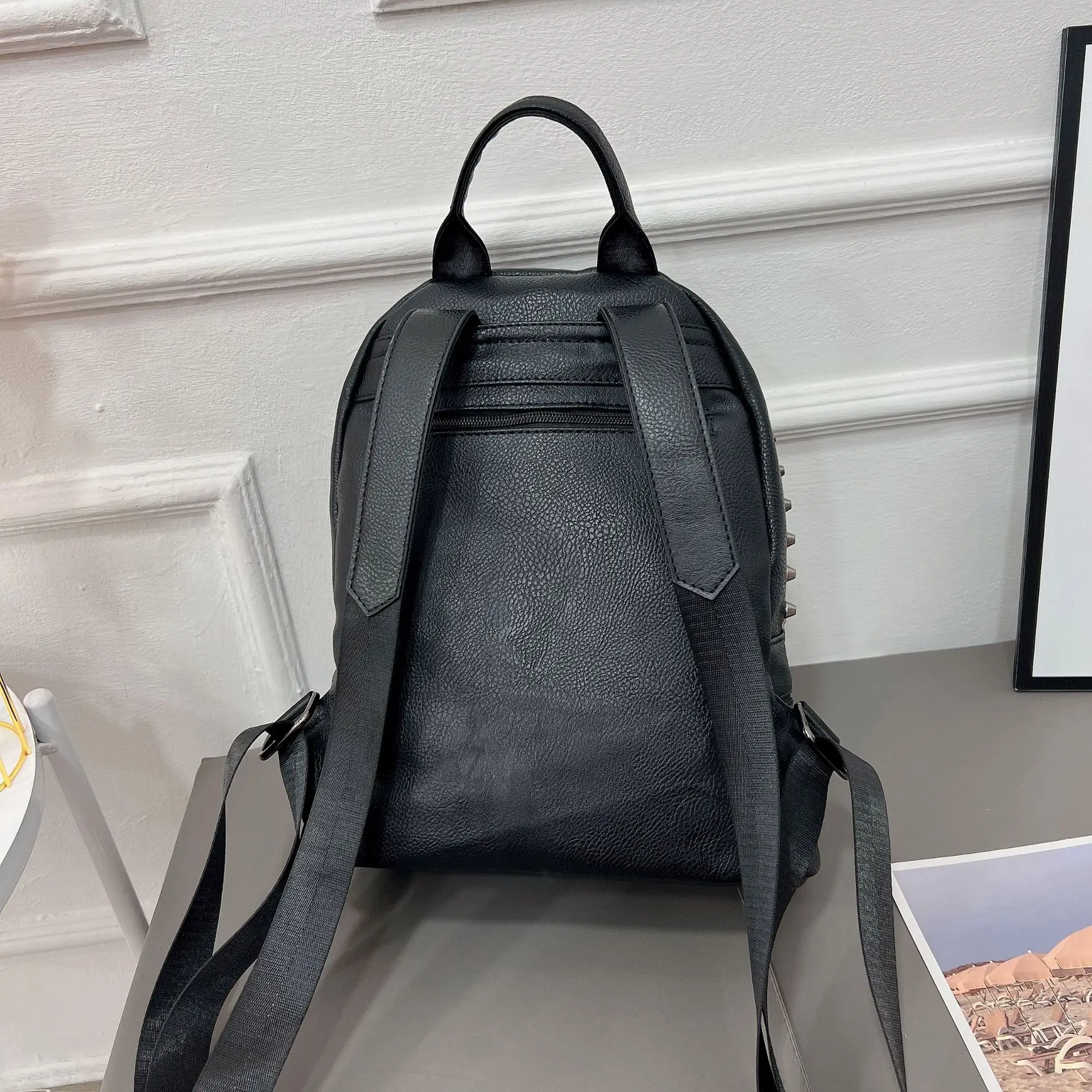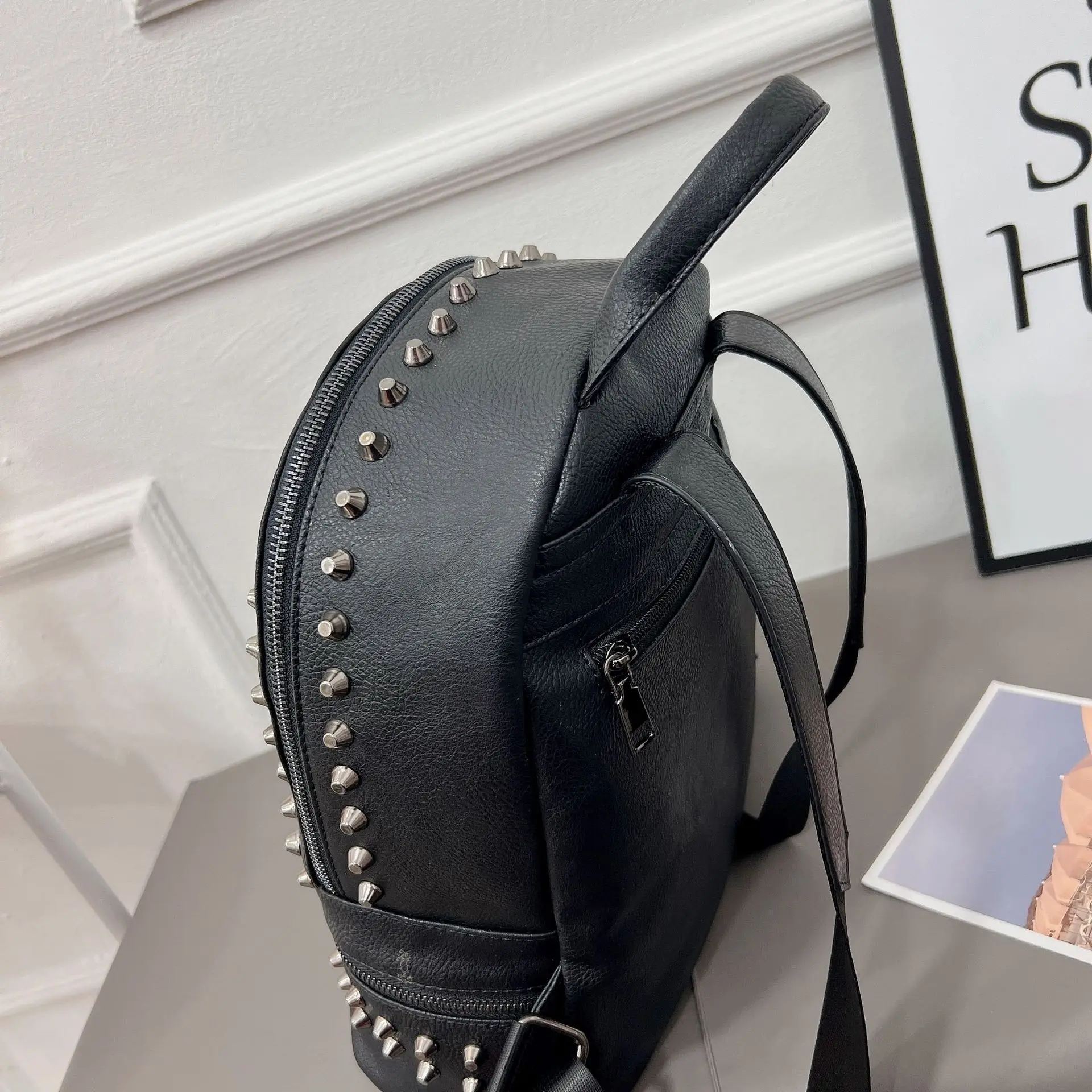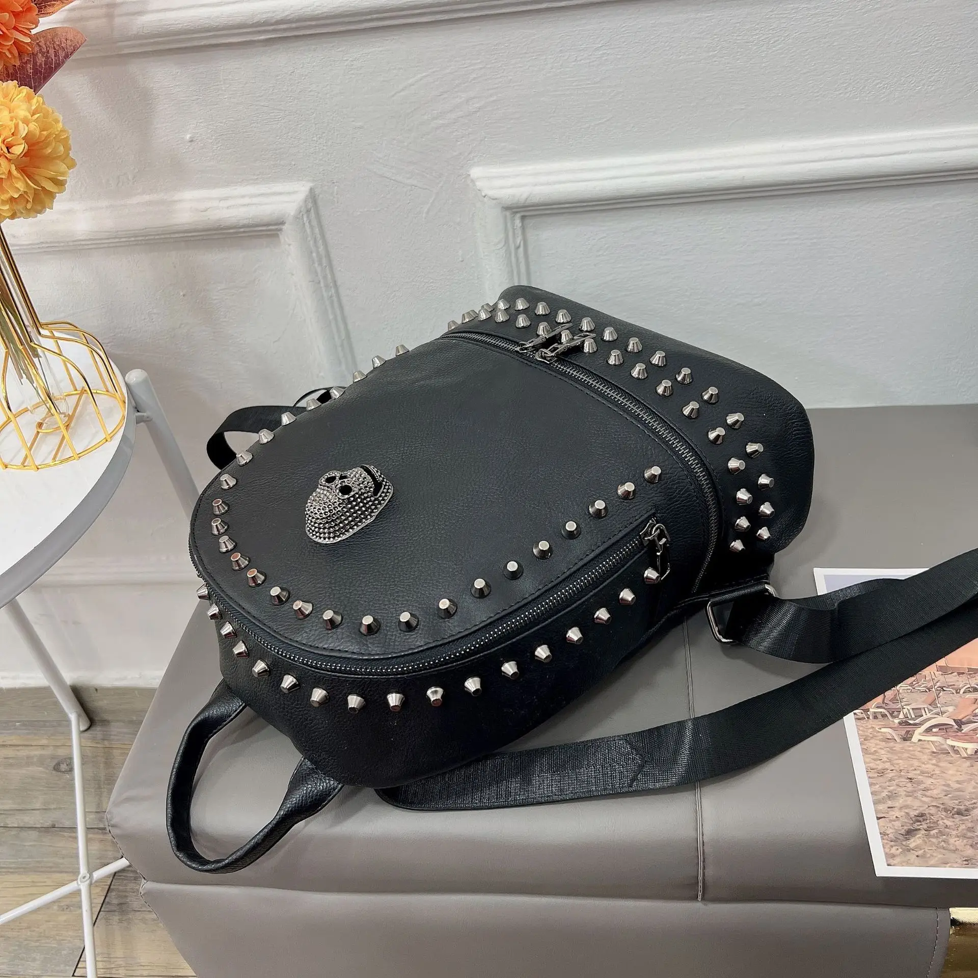 Weiyinxing All Match Soft Leather Rivet Skull Backpack Women Casual Punk Streetwear Schoolbags Y2k Aesthetic Trendy Vintage Backpacks