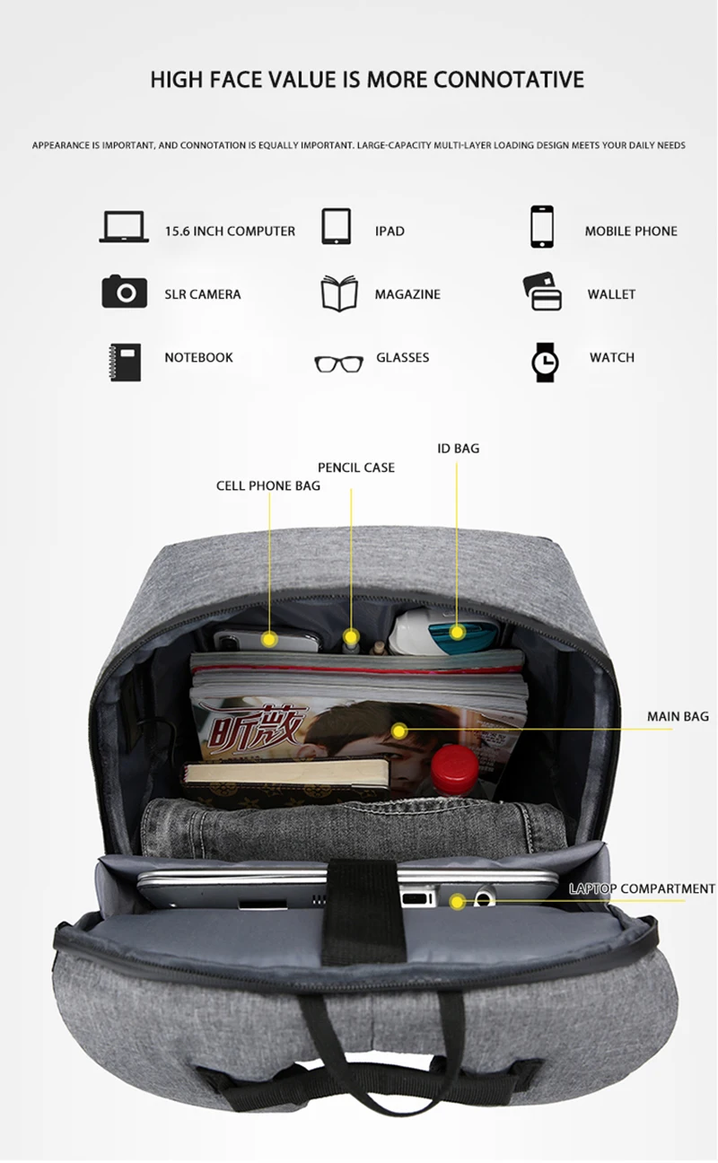 Weiyinxing Backpack 15.6 Inch Laptop Men's Business Backpacks Notebook Casual Multifunction Waterproof High Quality School Bag For Men