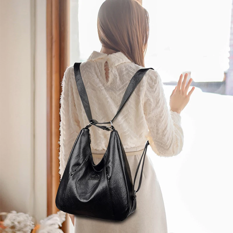 Weiyinxing Backpack for Women Brand Large Capacity Pack High Quality PU Leather Female Travel Bag Multifunction Crossbody Messenger
