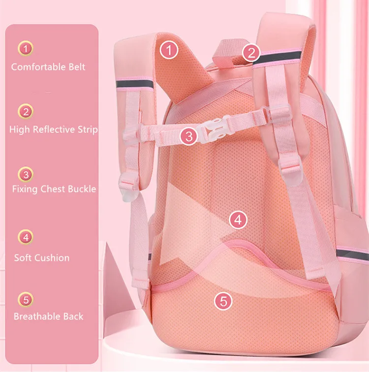 Weiyinxing Backpacks Girl School Bags For Boys Large Capacity Book Bag High Reflective Luminous Elementary Student Backpack Pink
