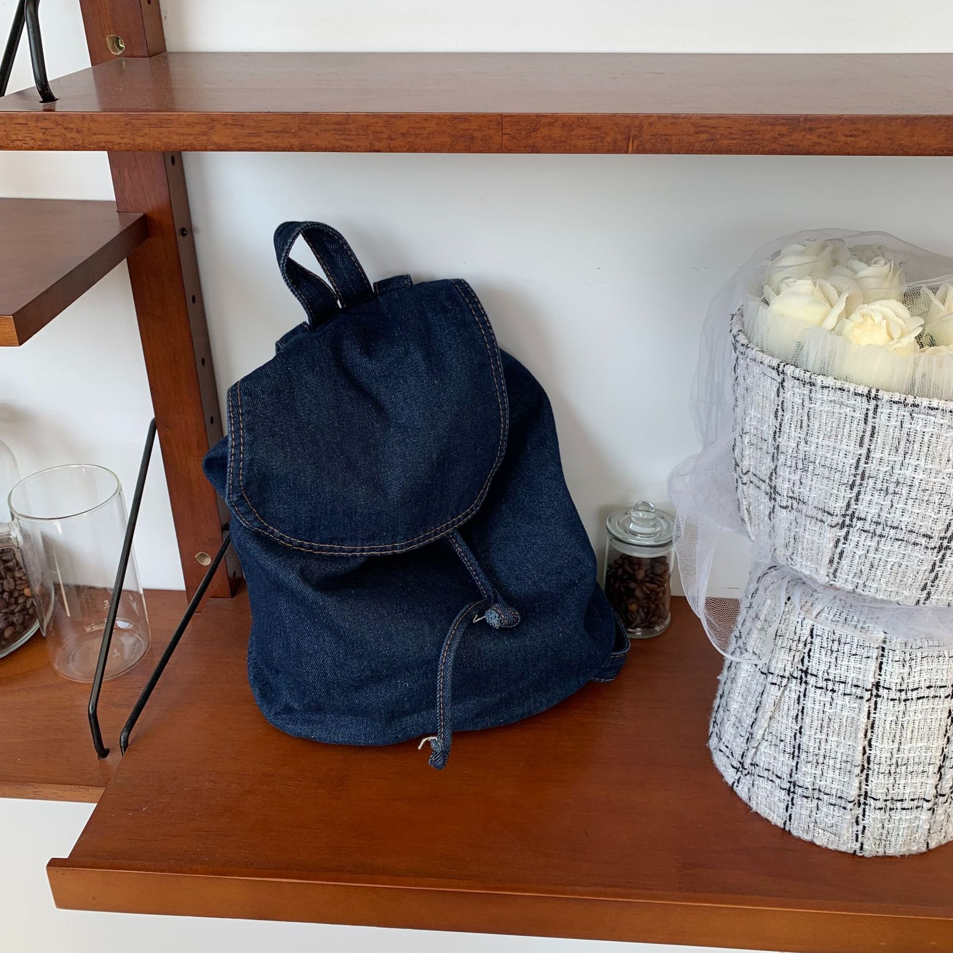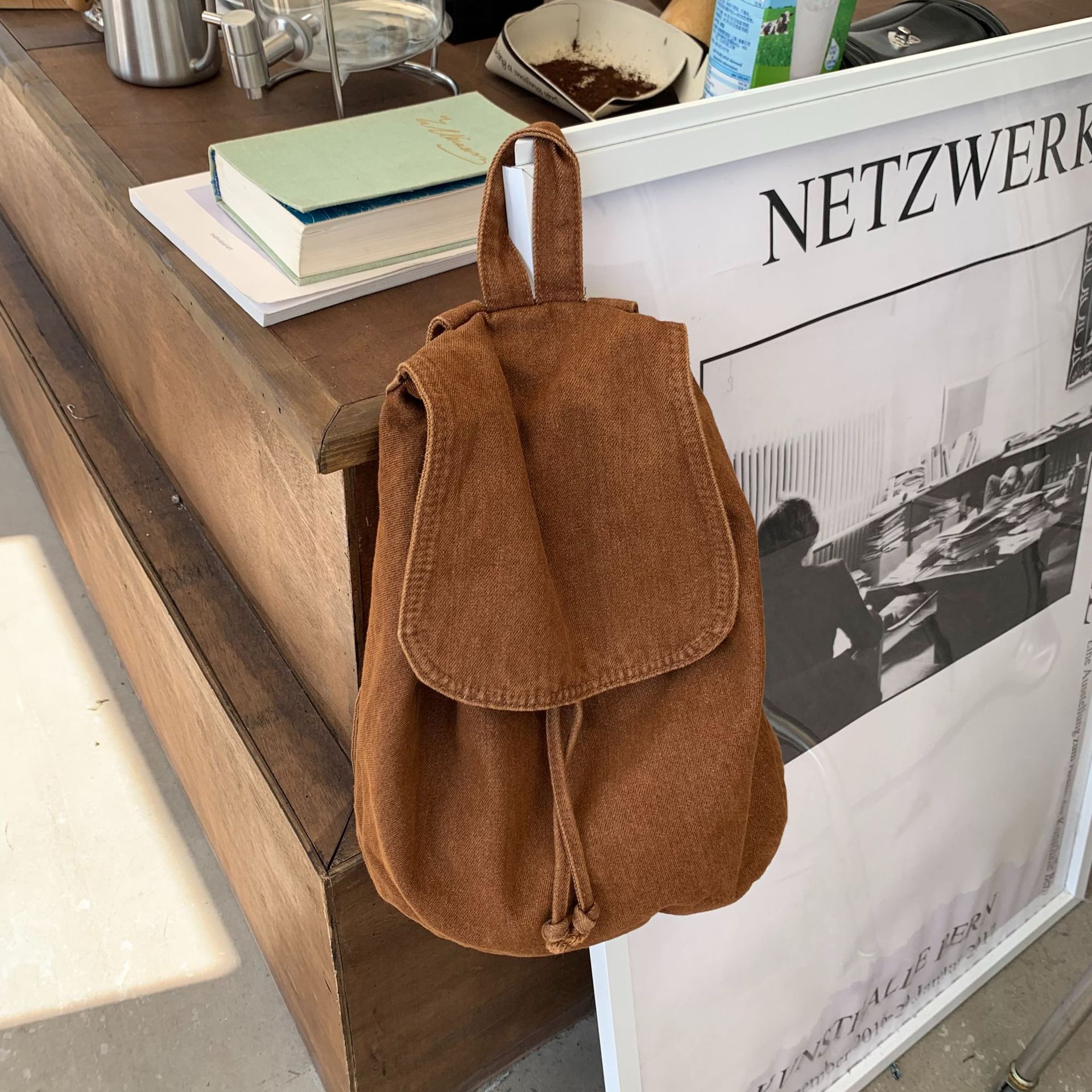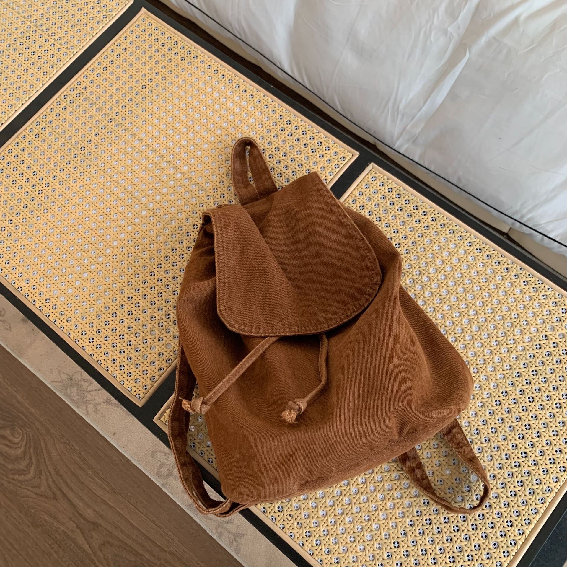 Weiyinxing Bag Women's Bucket Backpack Leisure Simple Student Schoolbag Washing Water Retro Flip Rope Large-Capacity Backpack