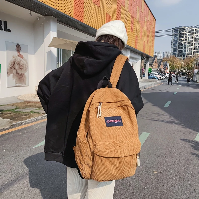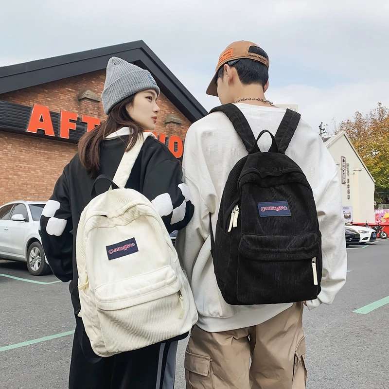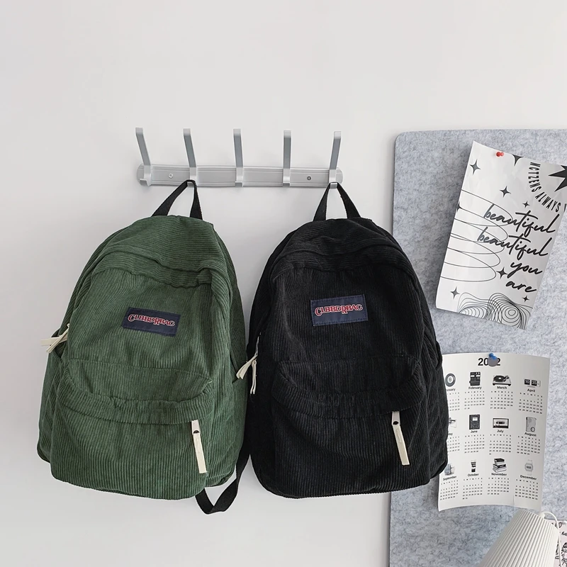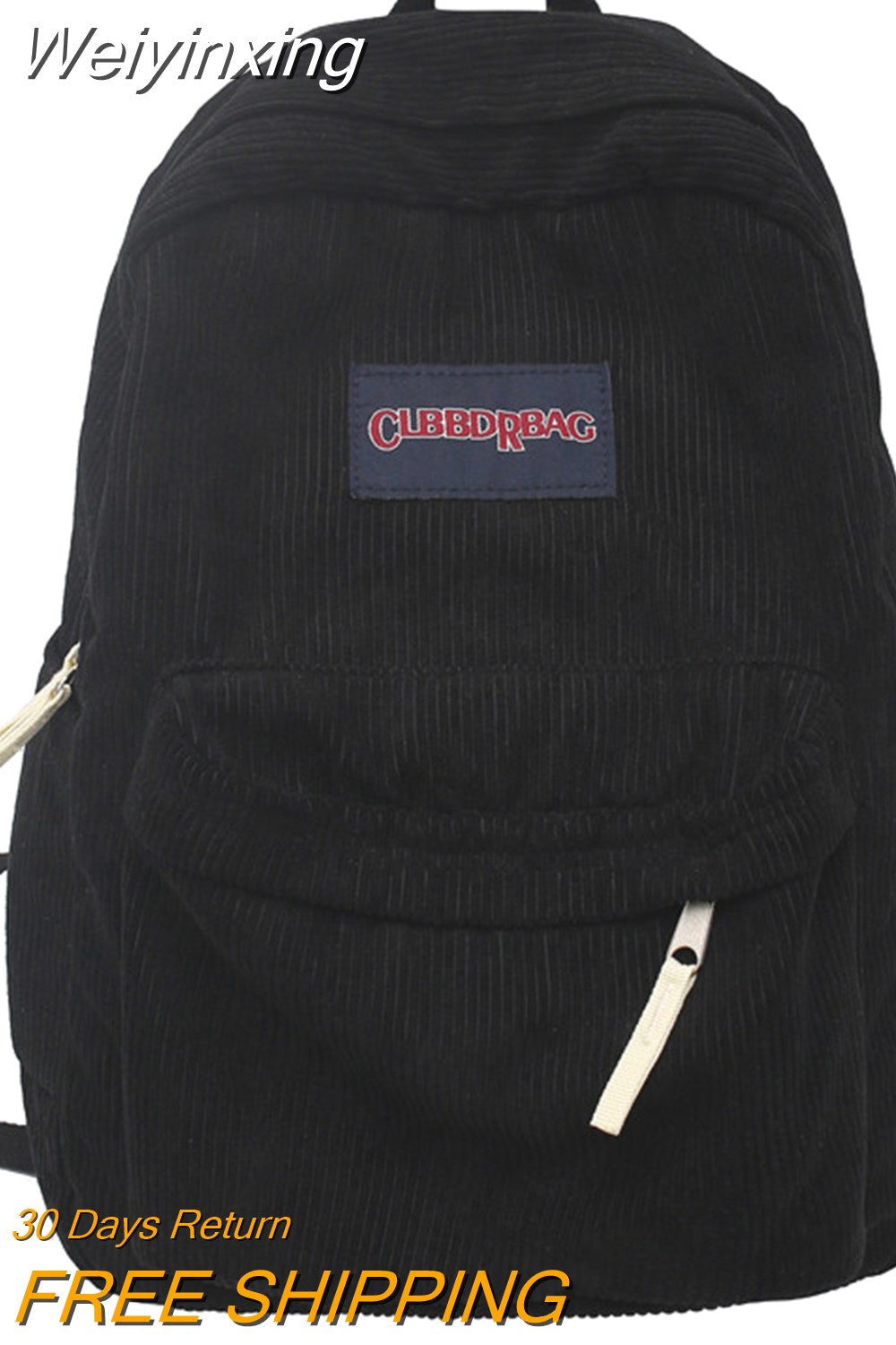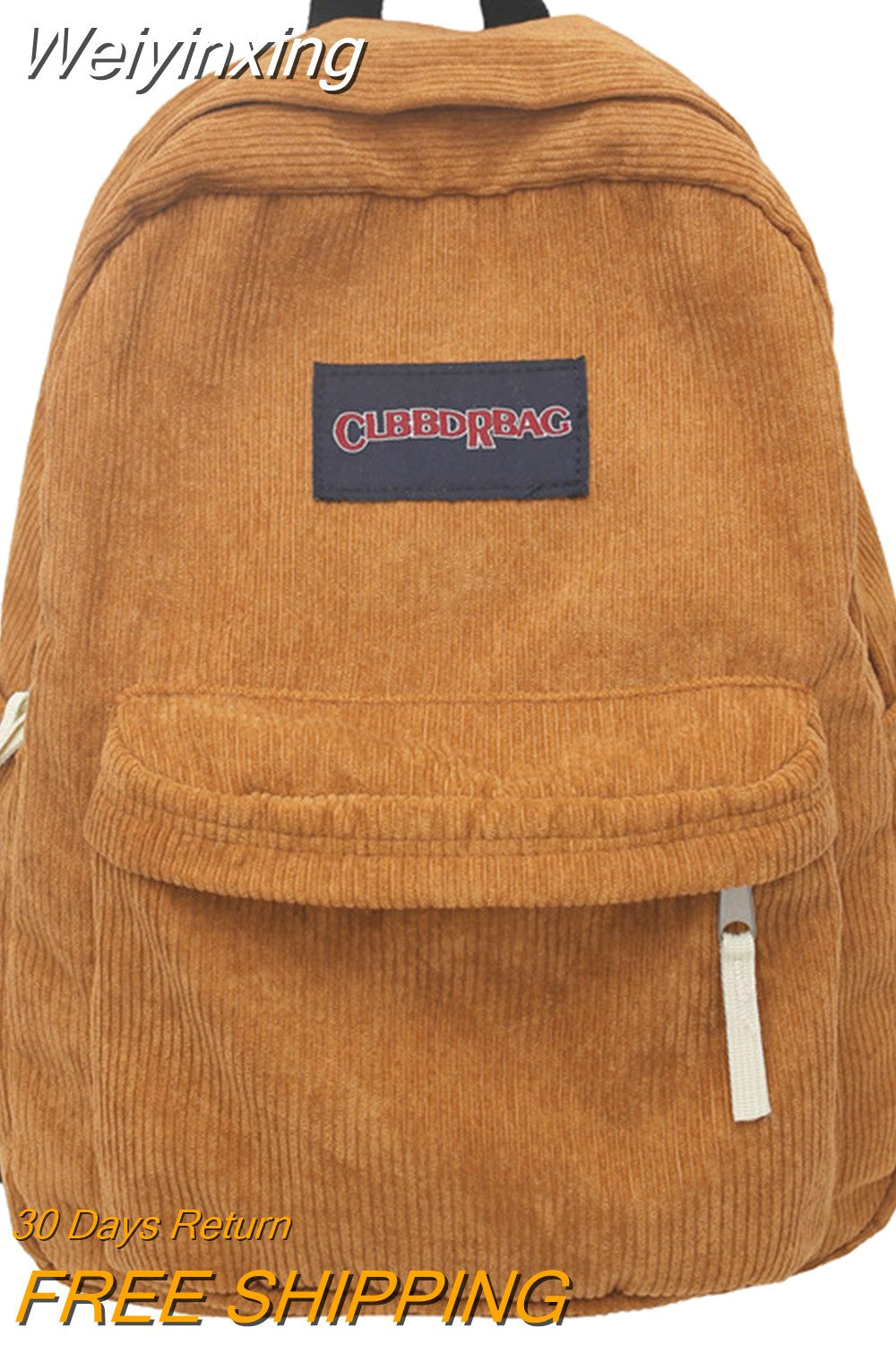 Weiyinxing Boy Girl Corduroy Green School Bag Men Women Laptop College Backpack Cool Lady Student Fashion Female Travel BookBag New