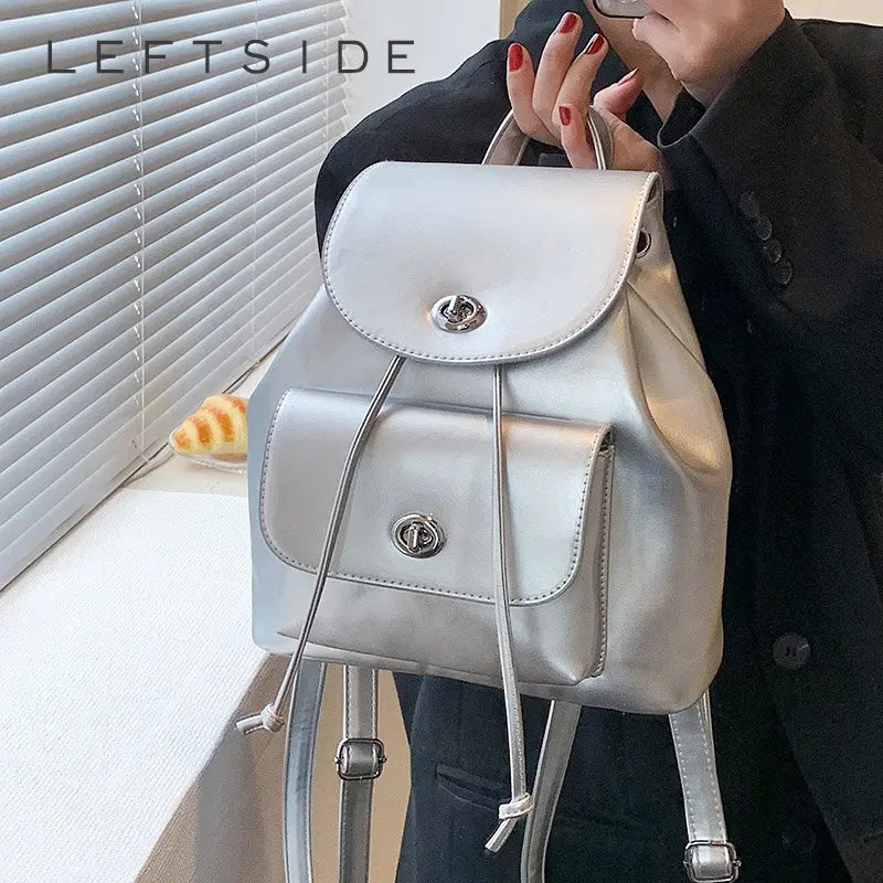 Weiyinxing Brand 2024 Retro Silver Back Pack Small PU Leather Backpack Women School Bags For Teenagers Girls Luxury Backpacks