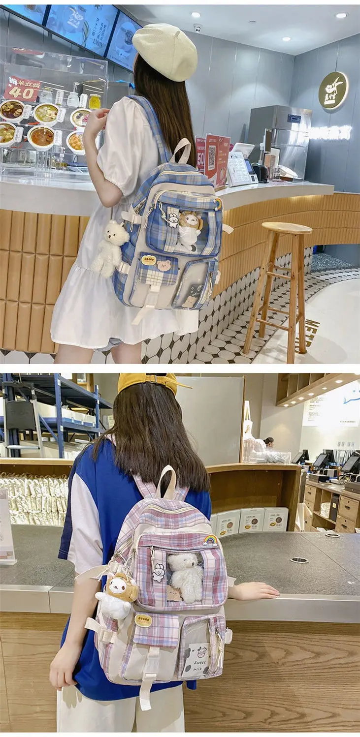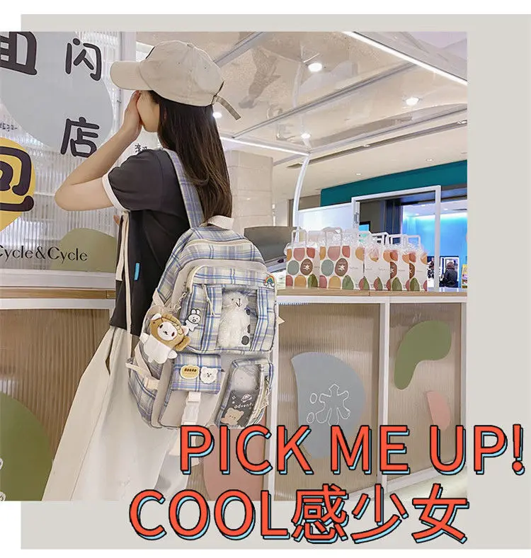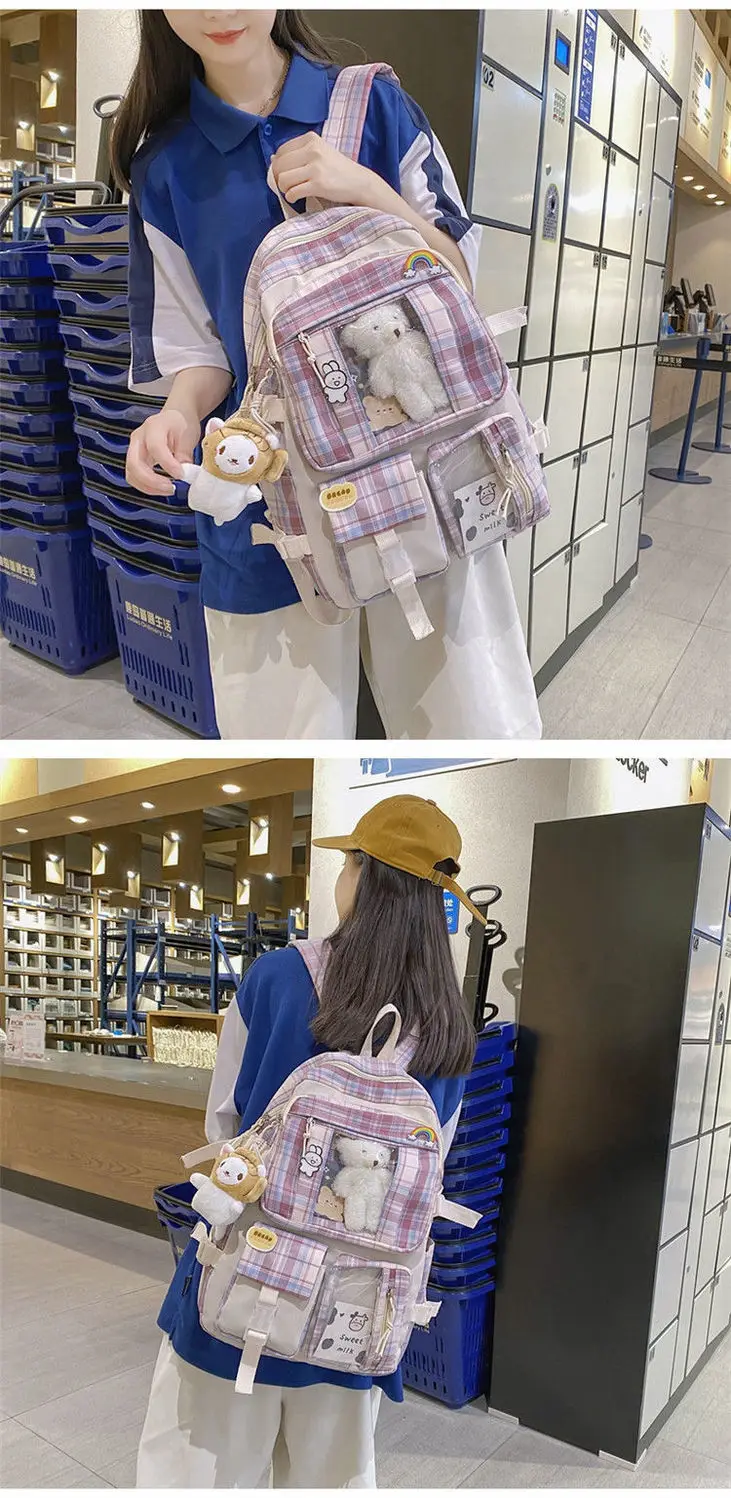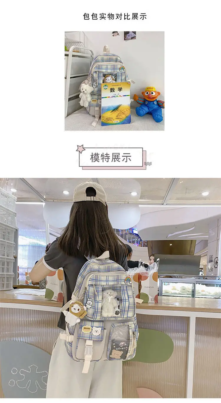 Weiyinxing Capacity Backpack Schoolbag Student Female Korean School Version Harajuku Cartoon Backpack Junior High
