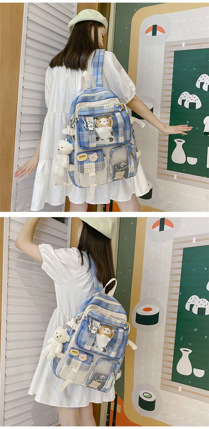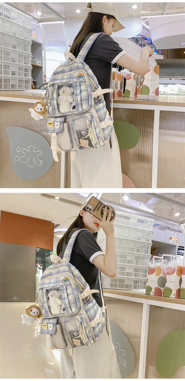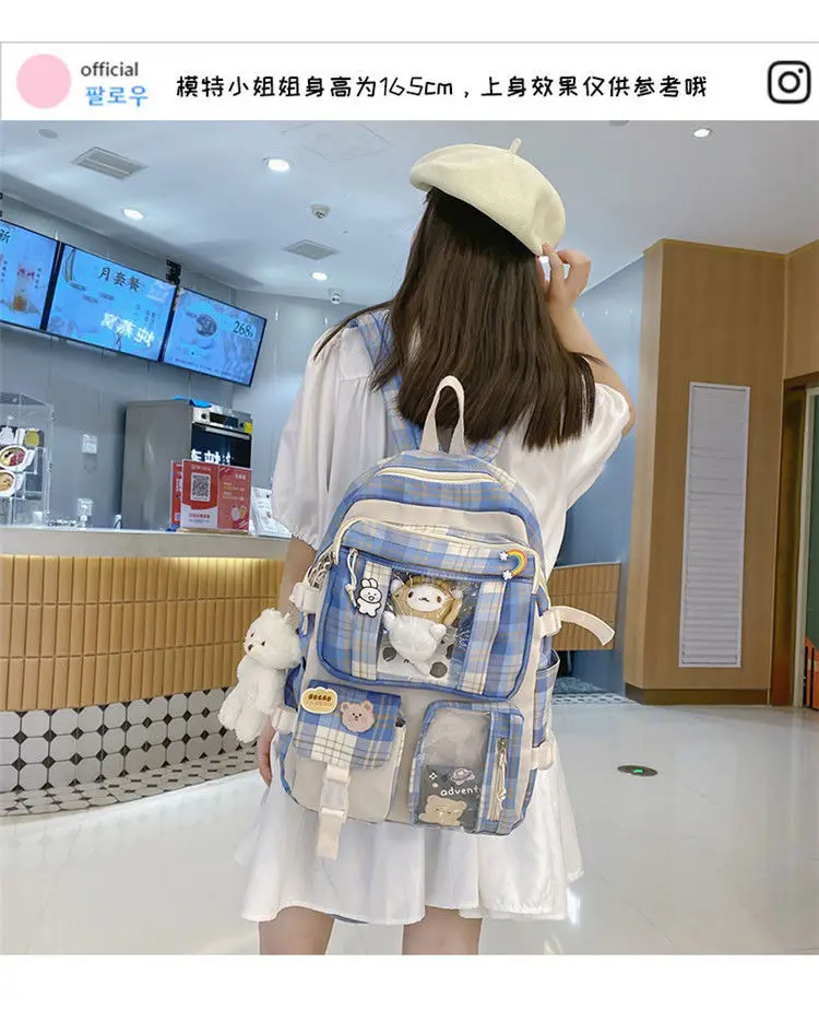 Weiyinxing Capacity Backpack Schoolbag Student Female Korean School Version Harajuku Cartoon Backpack Junior High