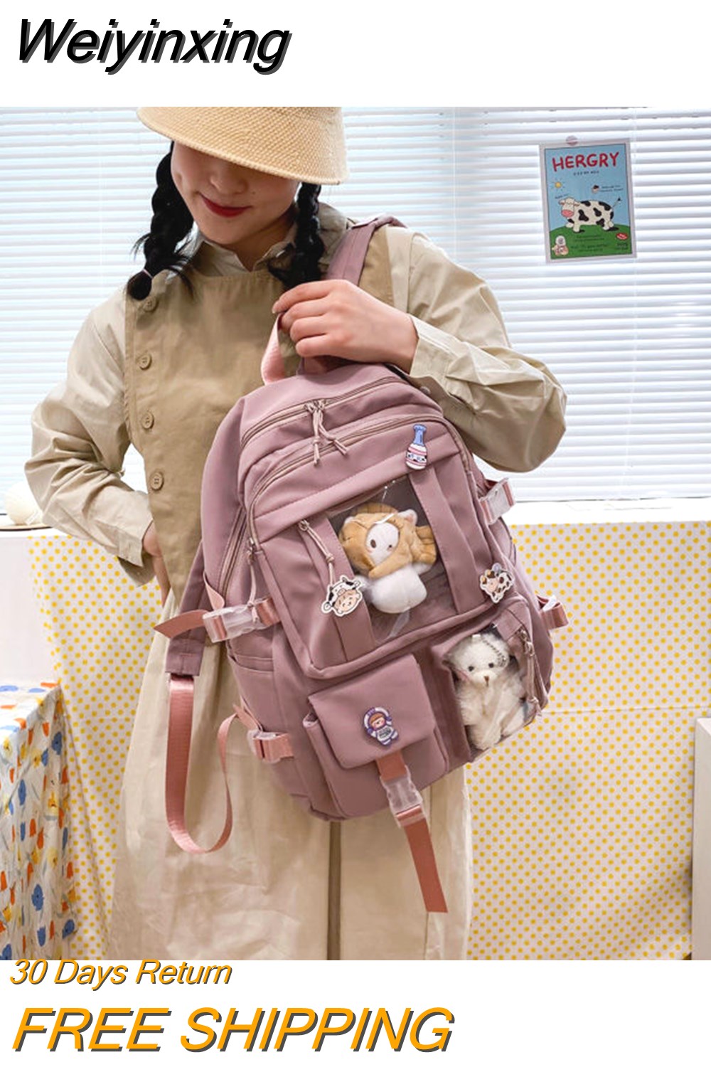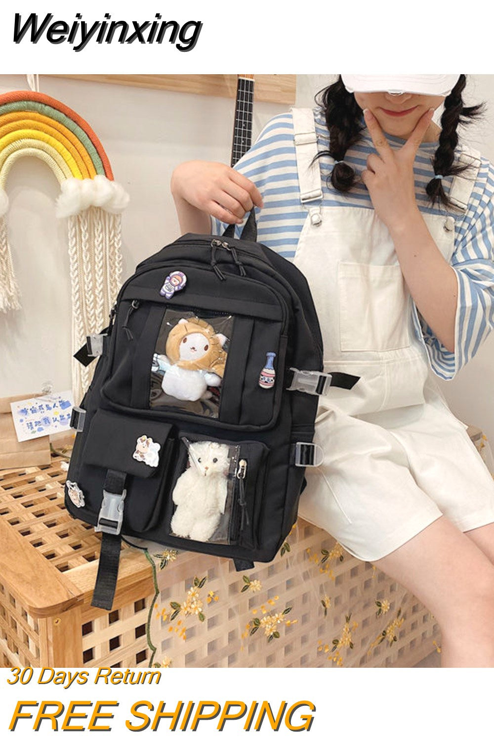 Weiyinxing Capacity High School Student Schoolbag Female Korean Version Harajuku Cartoon Backpack Junior High School Student Backpack