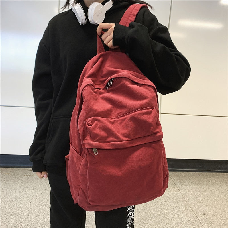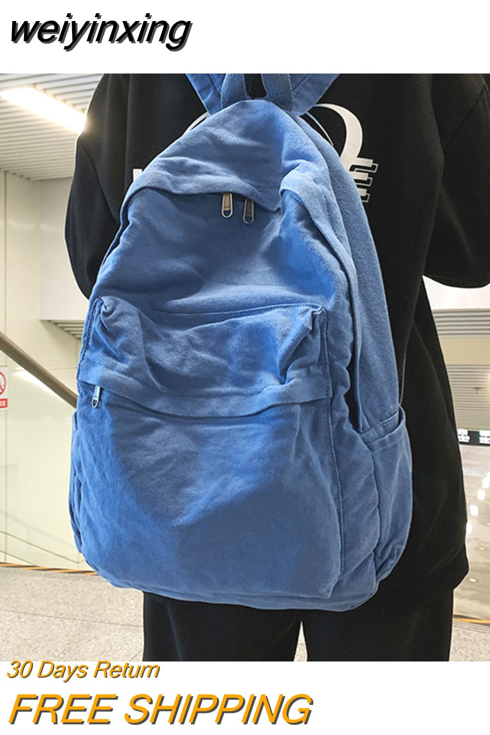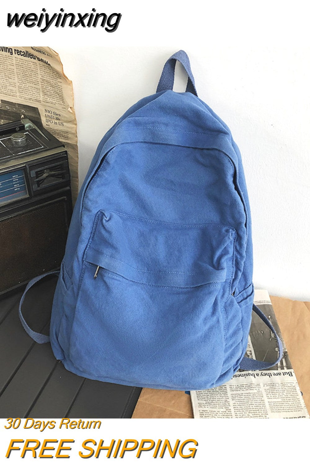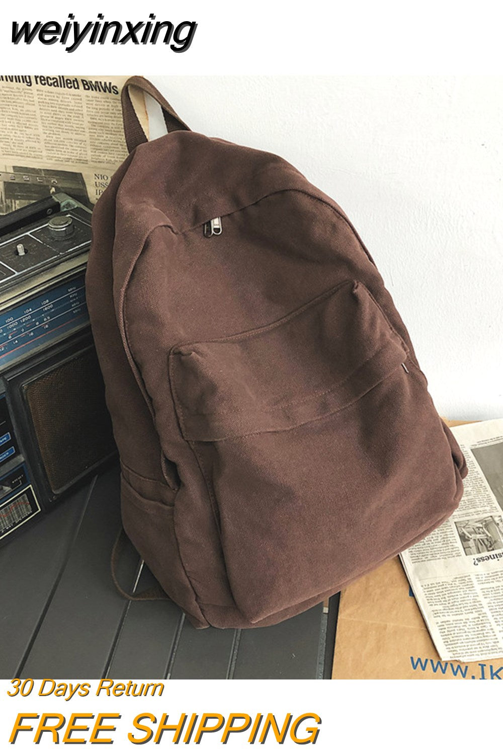 weiyinxing Casual Backpack Women Travel Bag Vintage High Capacity Solid Women's Backpack Girls Men Canvas Student Zipper School Bag