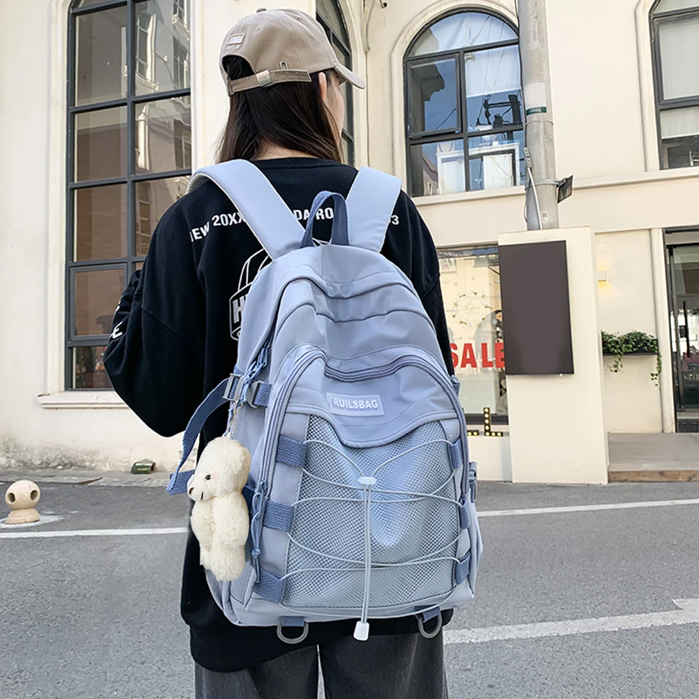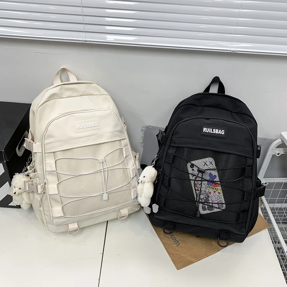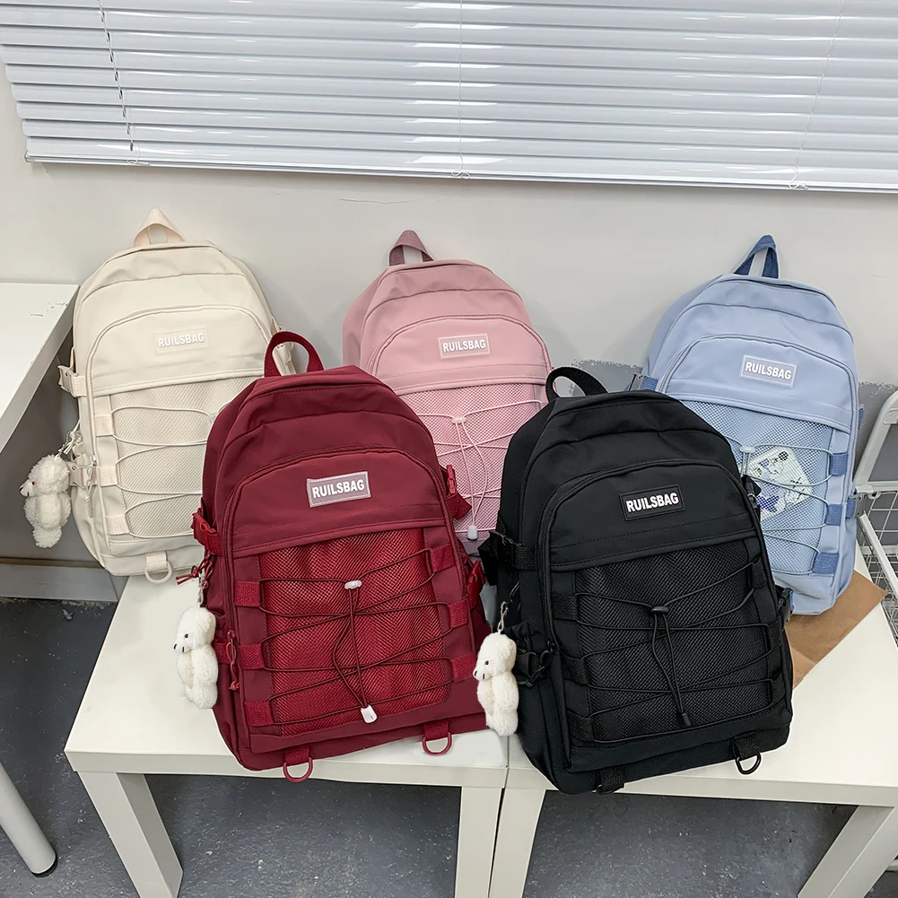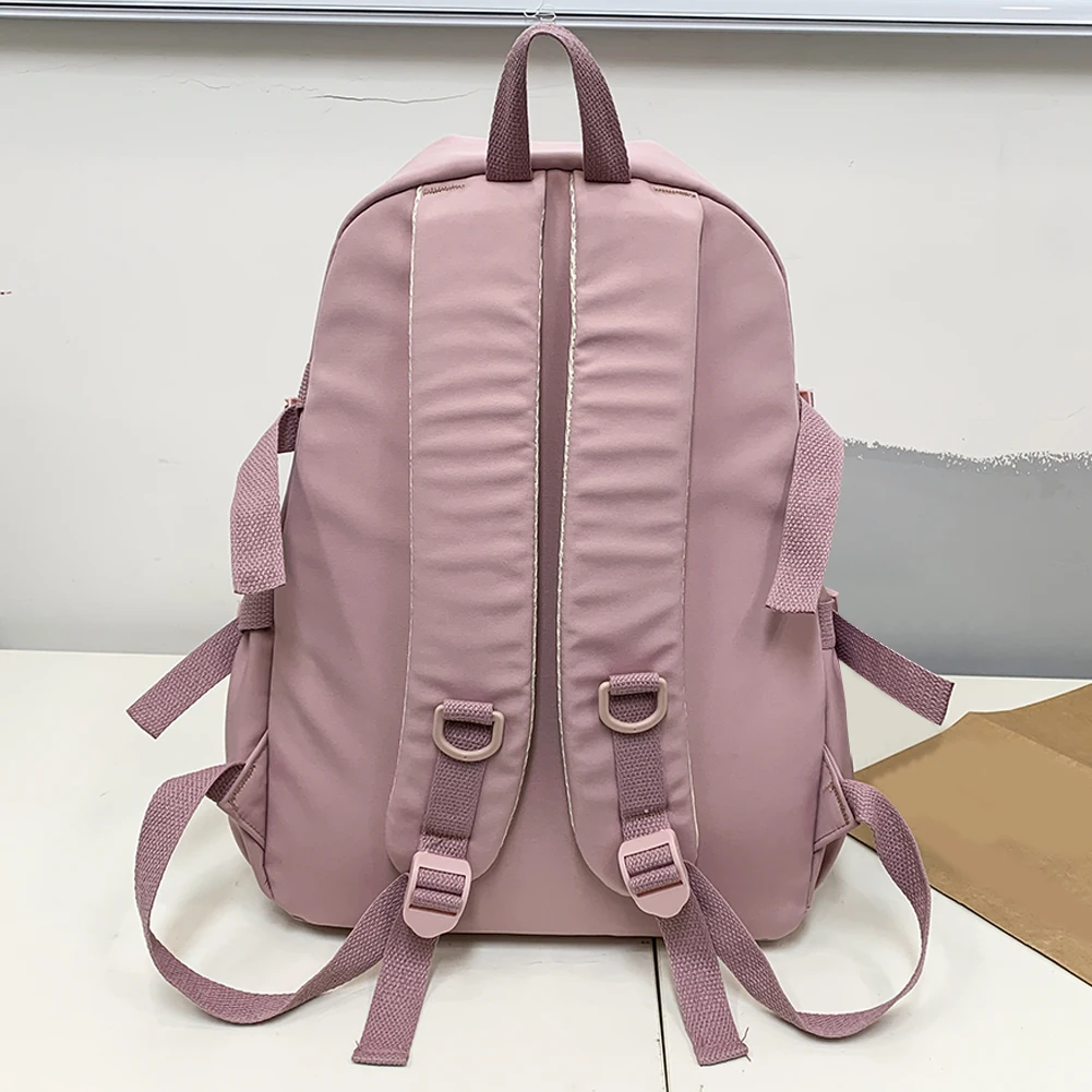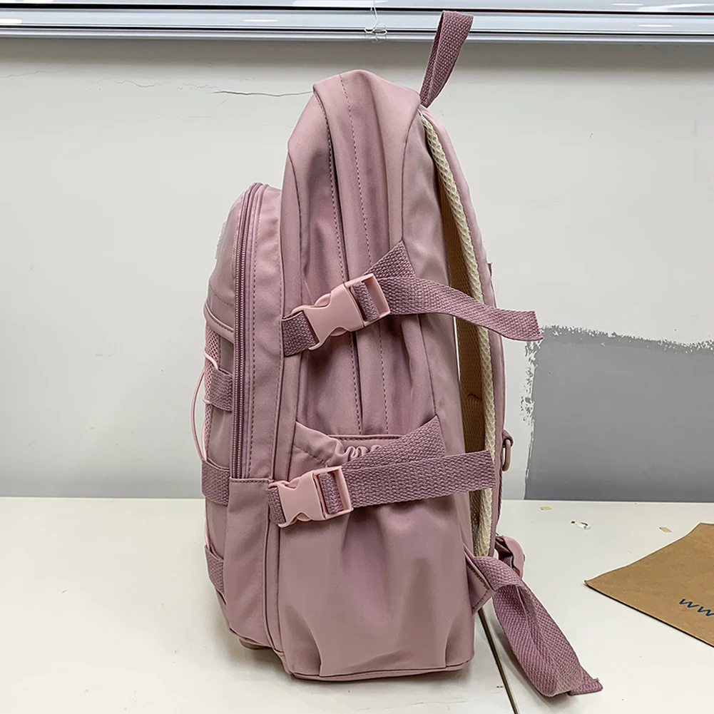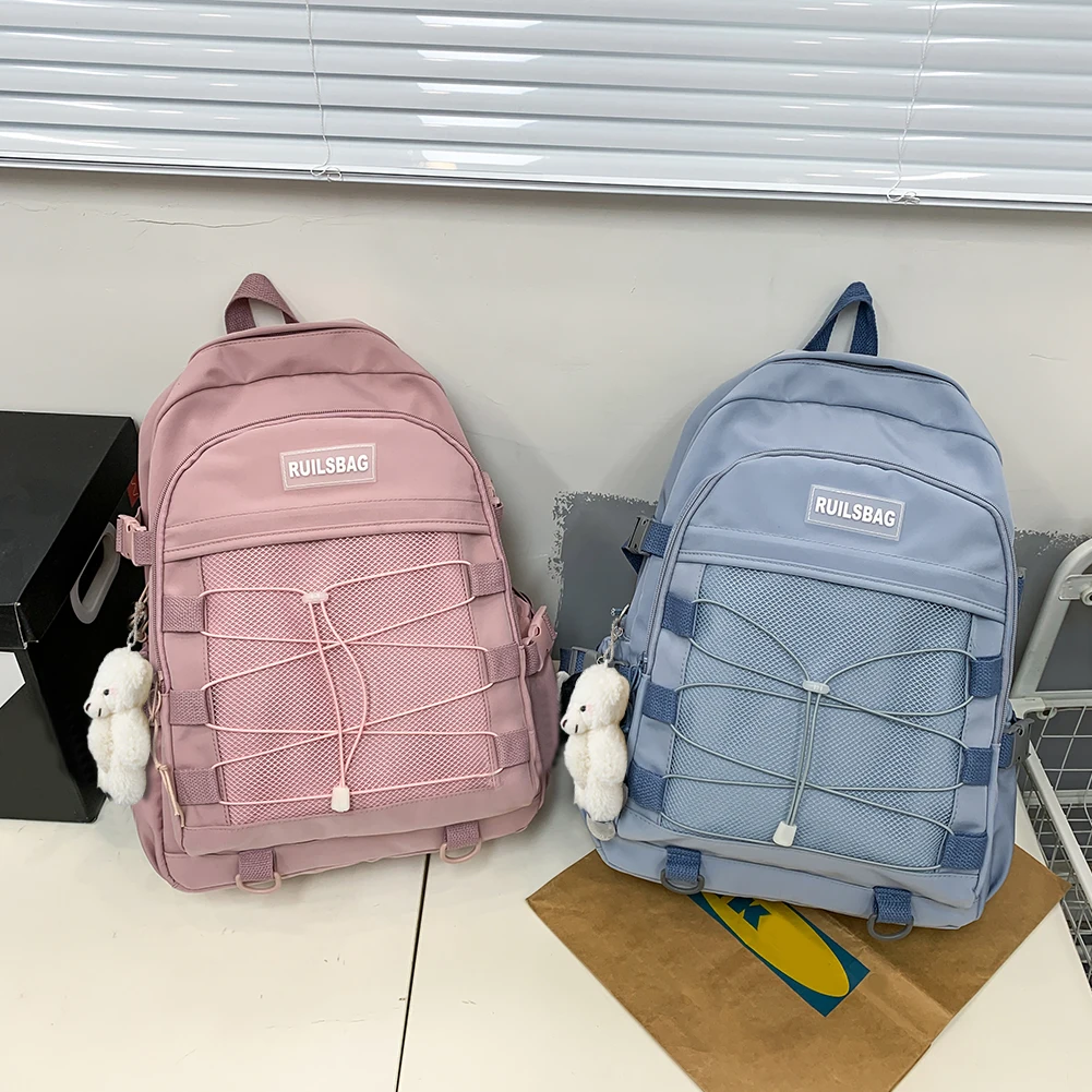 Weiyinxing College Backpack 2024 Students Aesthetic Schoolbags with Pendant Solid Color Girls Mochila Multi-Pocket Travel Rucksack