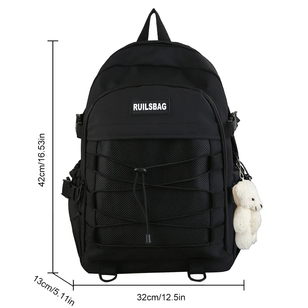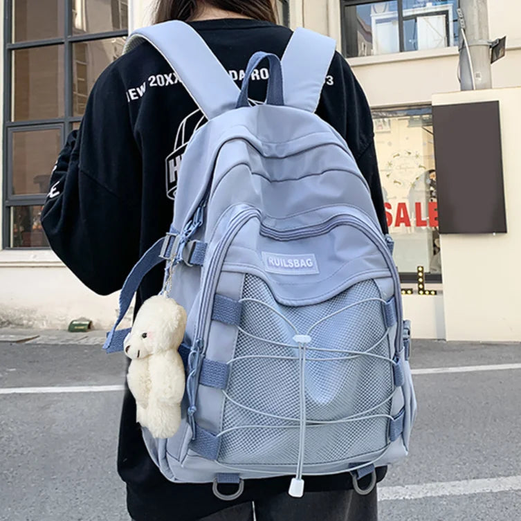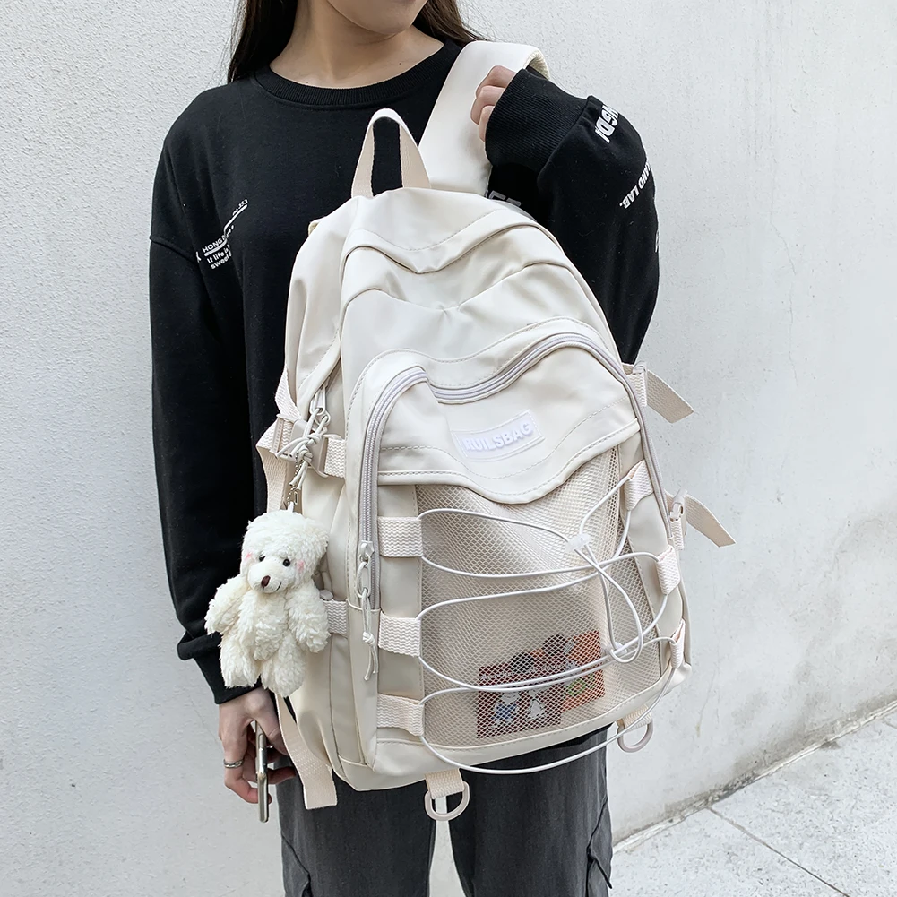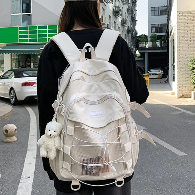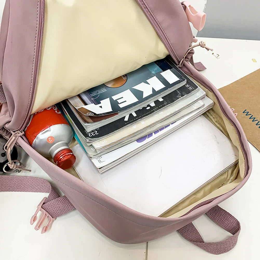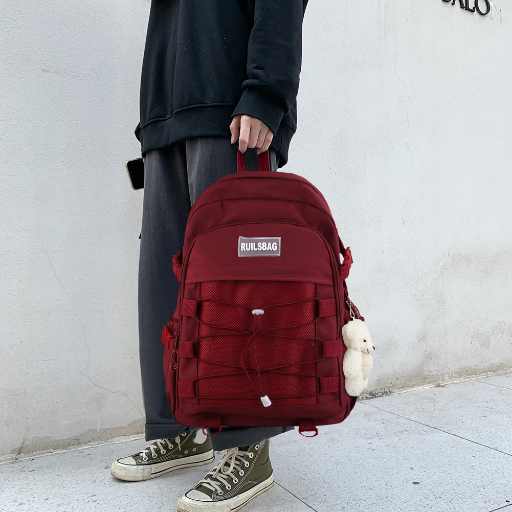 Weiyinxing College Backpack 2024 Students Aesthetic Schoolbags with Pendant Solid Color Girls Mochila Multi-Pocket Travel Rucksack