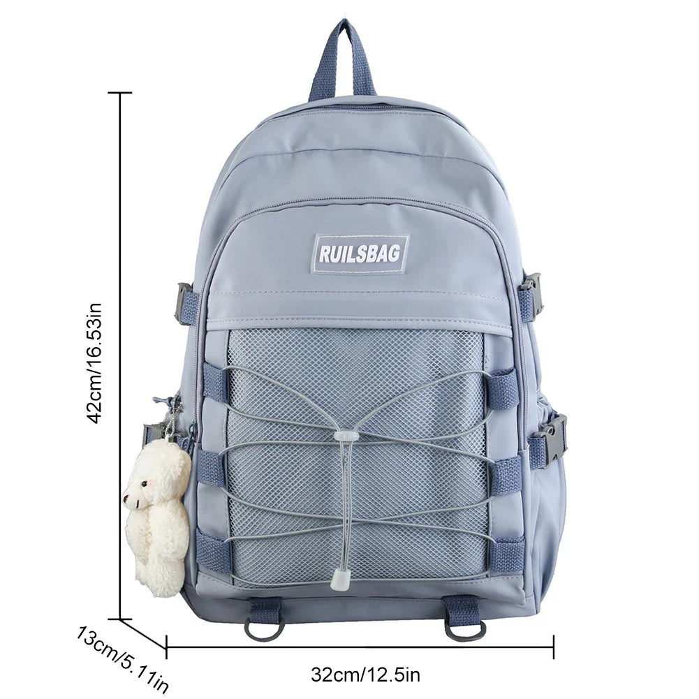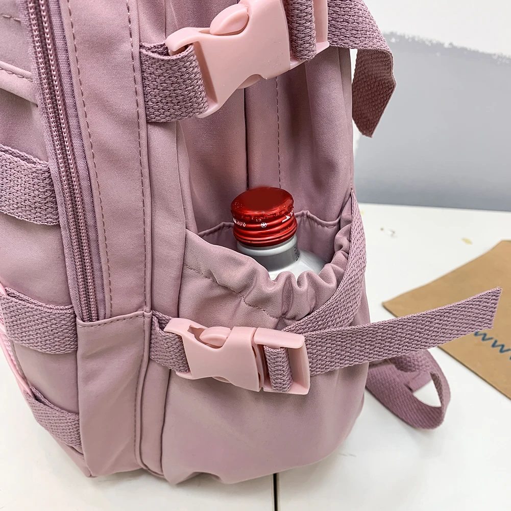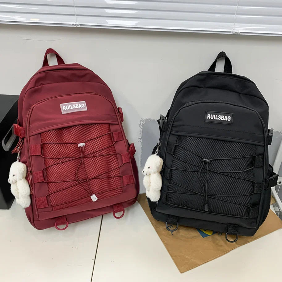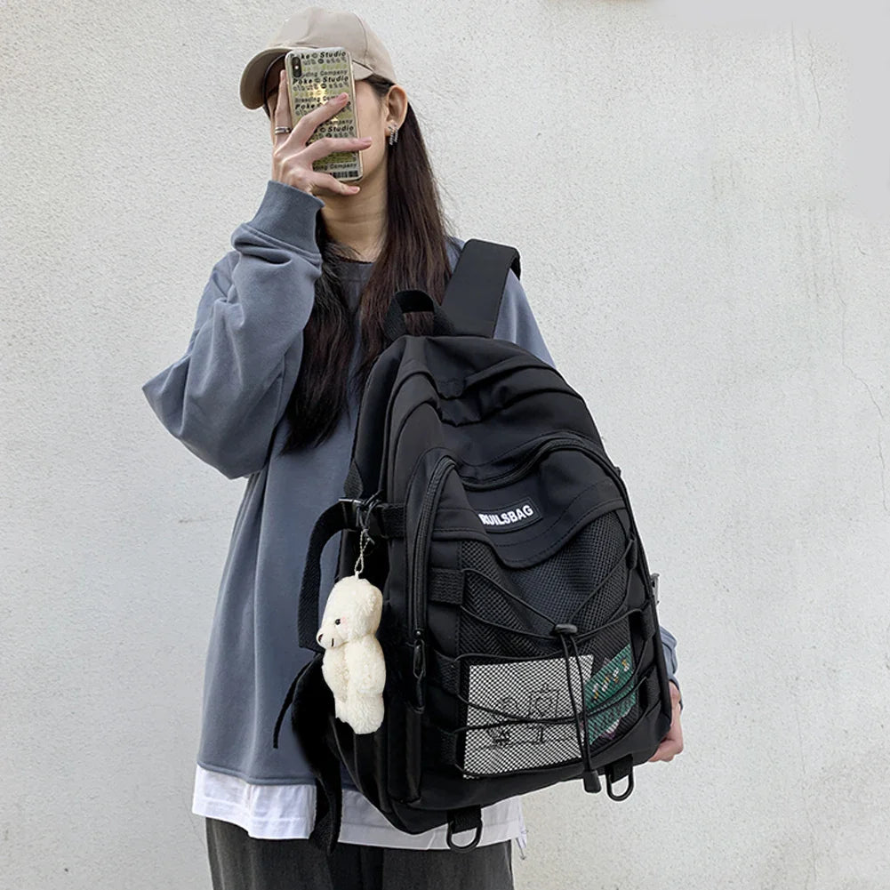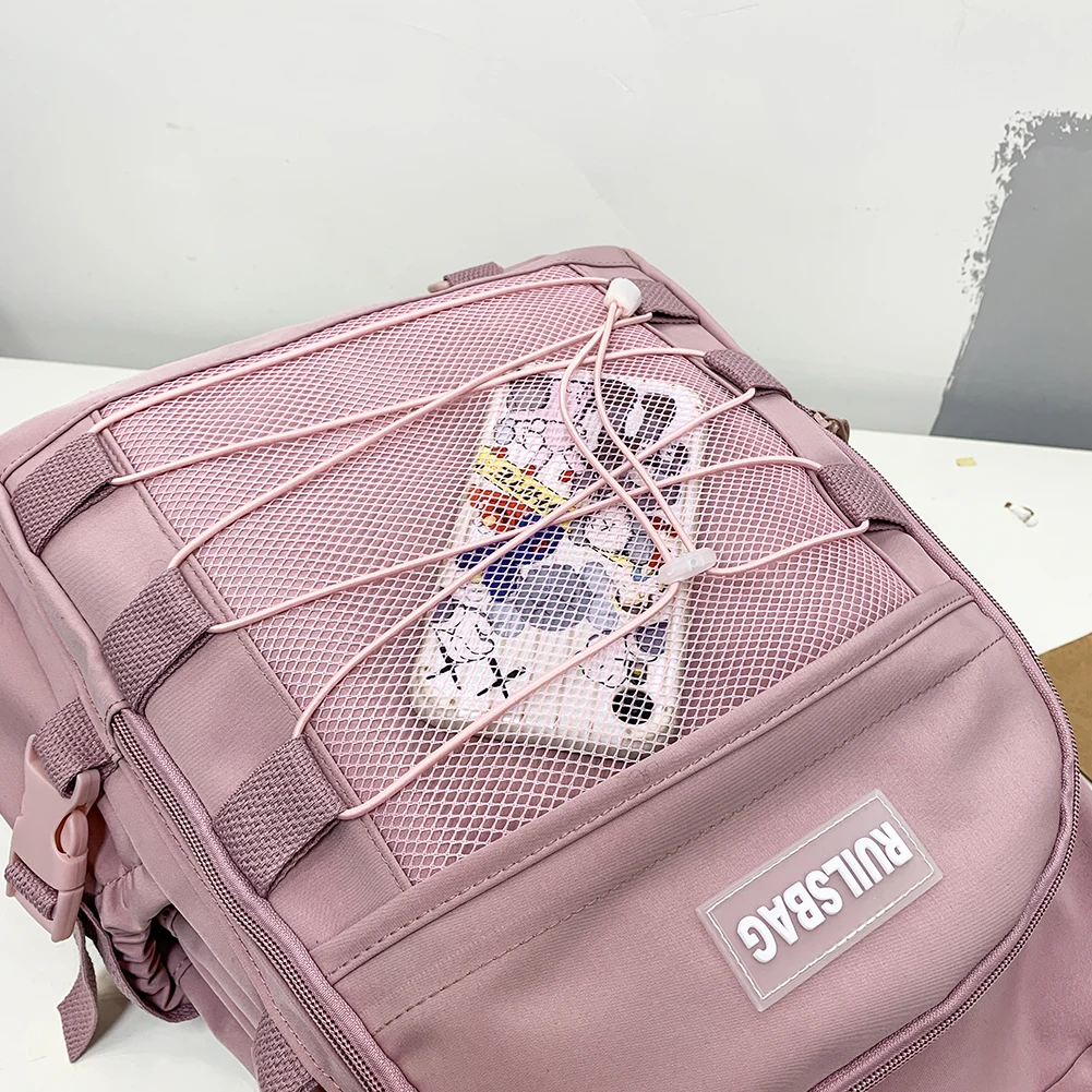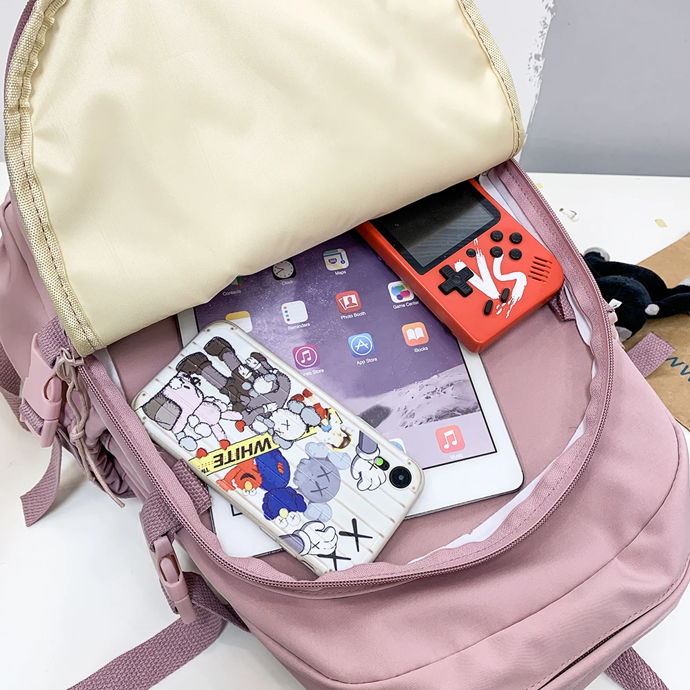 Weiyinxing College Backpack 2024 Students Aesthetic Schoolbags with Pendant Solid Color Girls Mochila Multi-Pocket Travel Rucksack