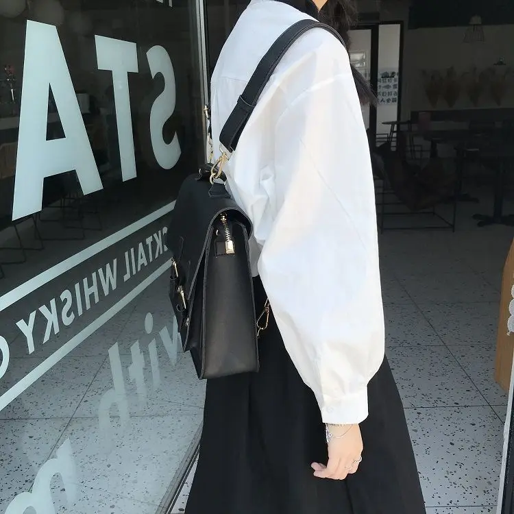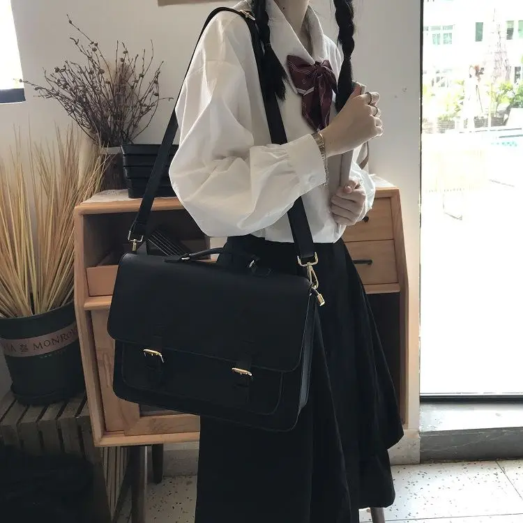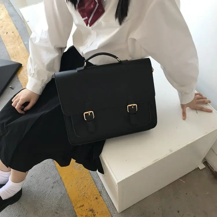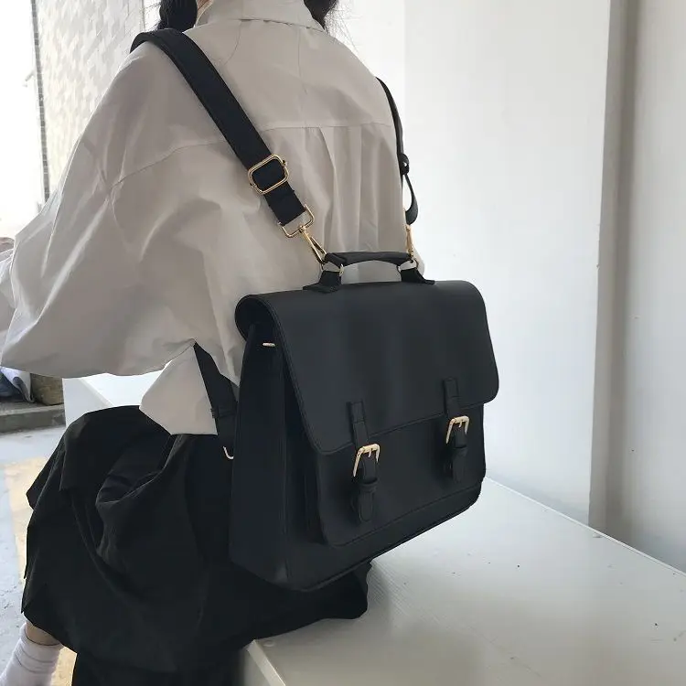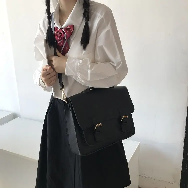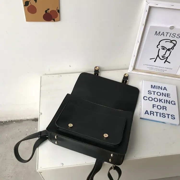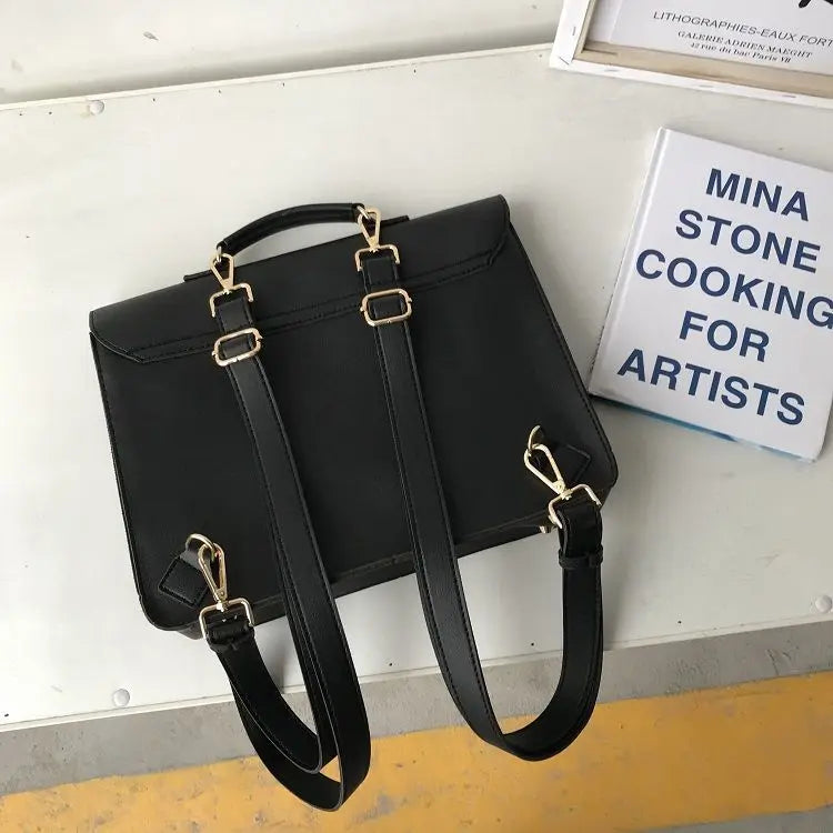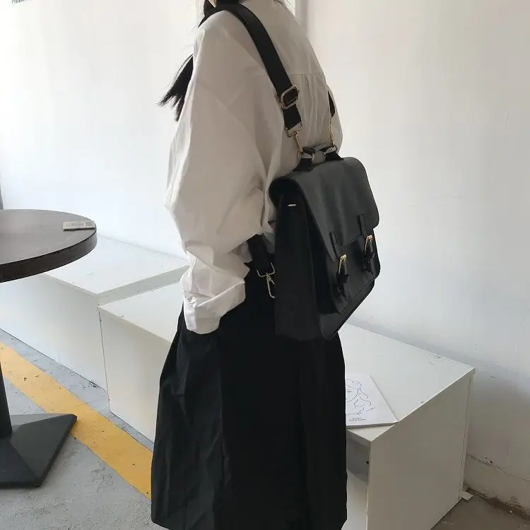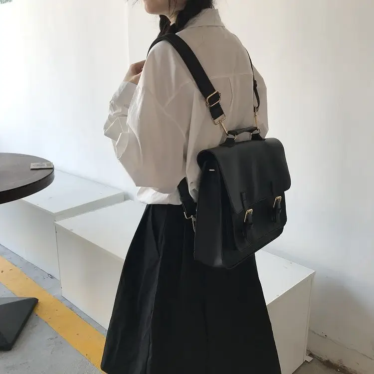 Weiyinxing College Style Girls Student Backpack School Book Bag for Women Pu Leather Lady Shoulder Bags Solid Color Crossbody Bags