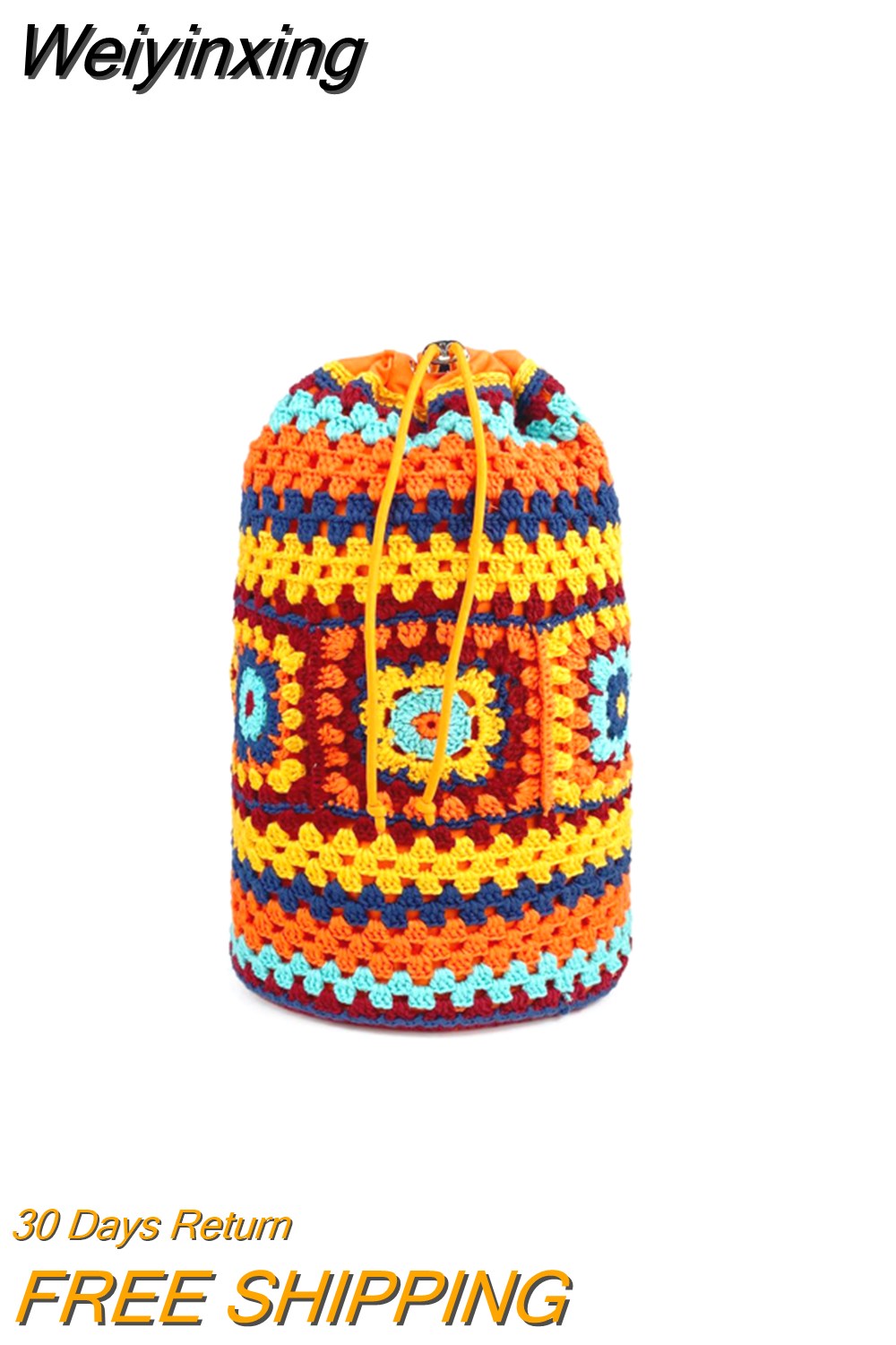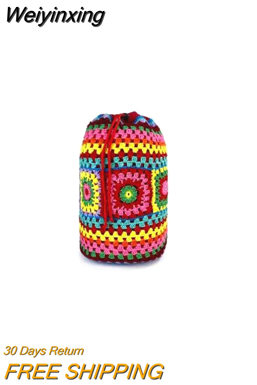 Weiyinxing Crochet Barrel Shaped Women Shoulder Bags Knitted Granny Square Backpacks Handmade Woven Handbag Casual Travel Bag 2023