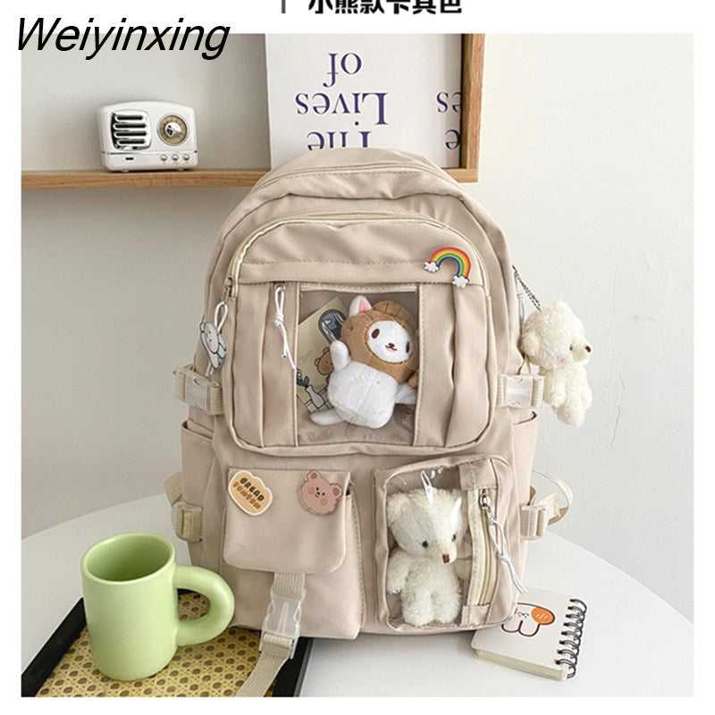 Weiyinxing Cute Women Multi-Pocket Nylon Backpack Ins Junior High School Student School Bag Female Girl Backpack Laptop Book 911