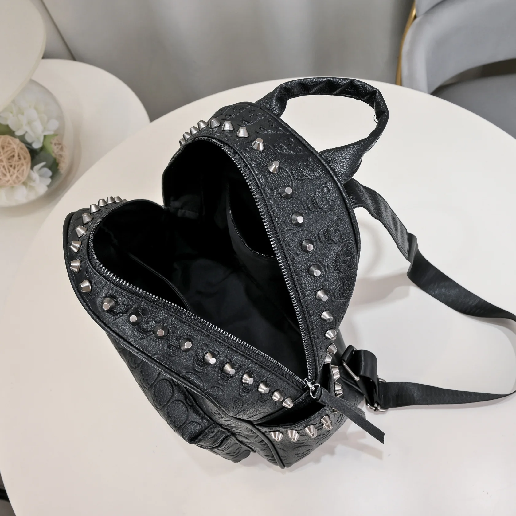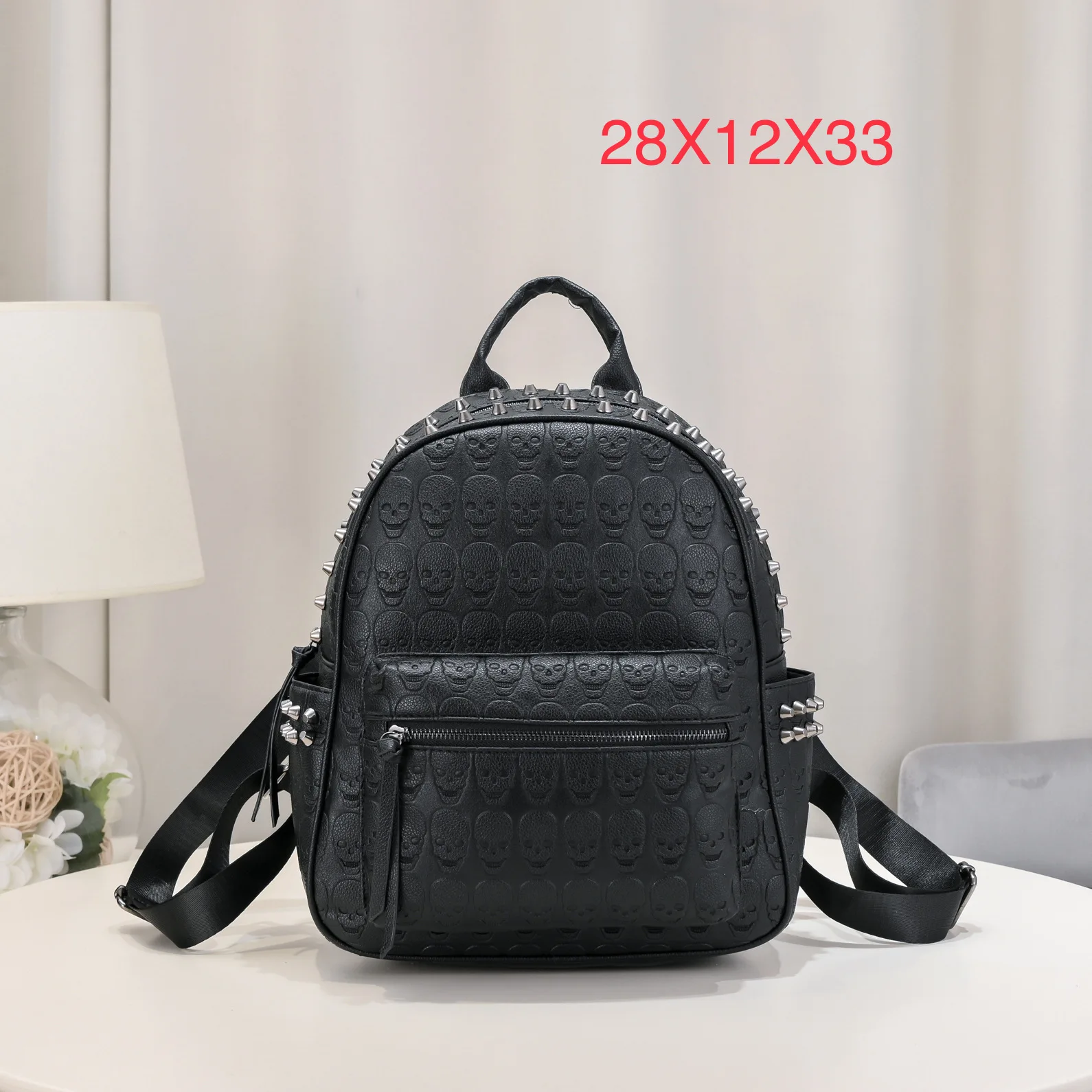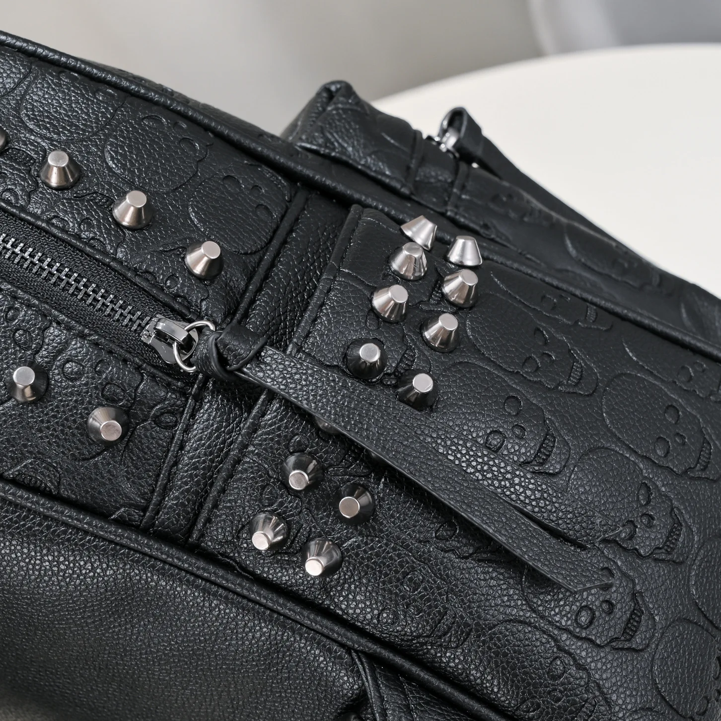 Weiyinxing Design All Match Casual Backpacks Men Women Trendy Rivets Schoolbags Soft Leather Vintage Skull Rucksacks Y2k Aesthetic