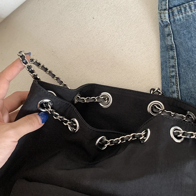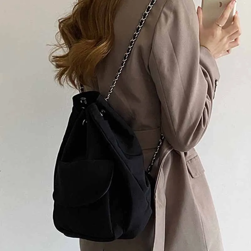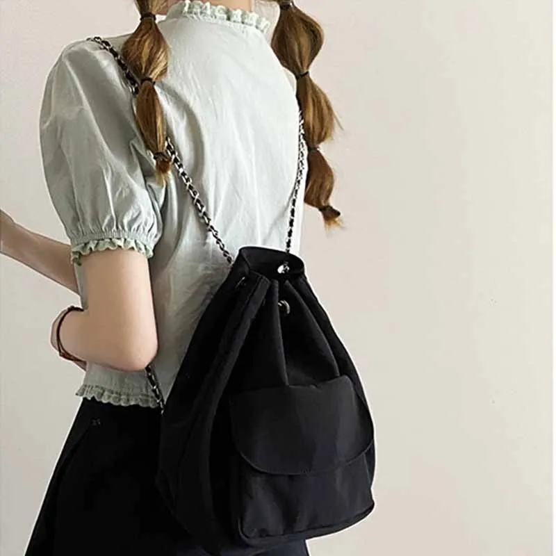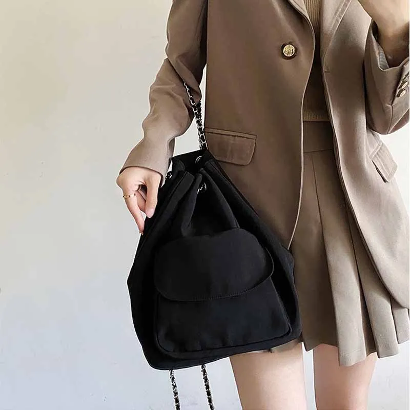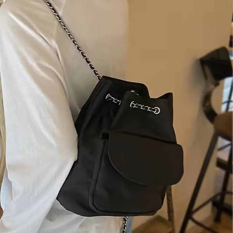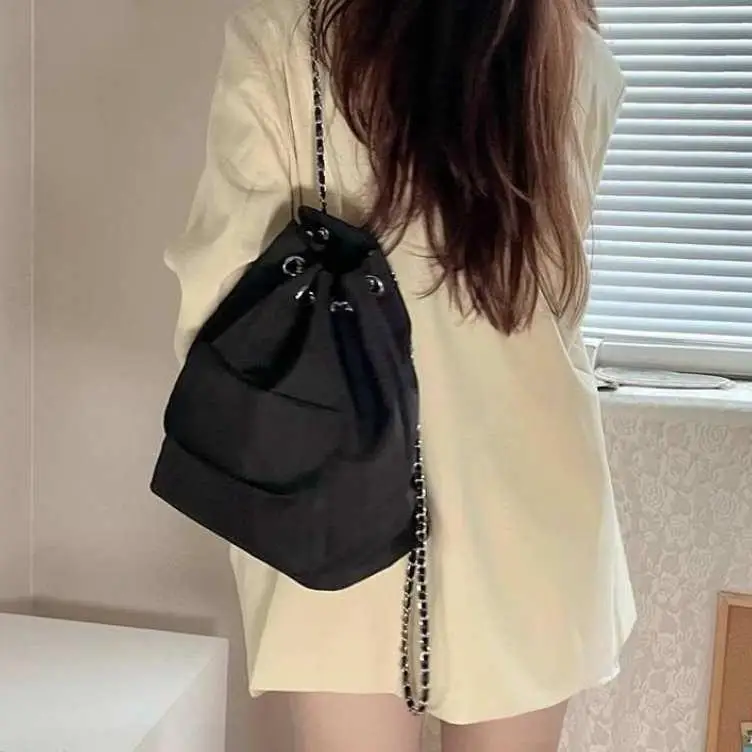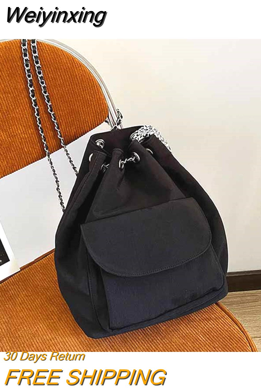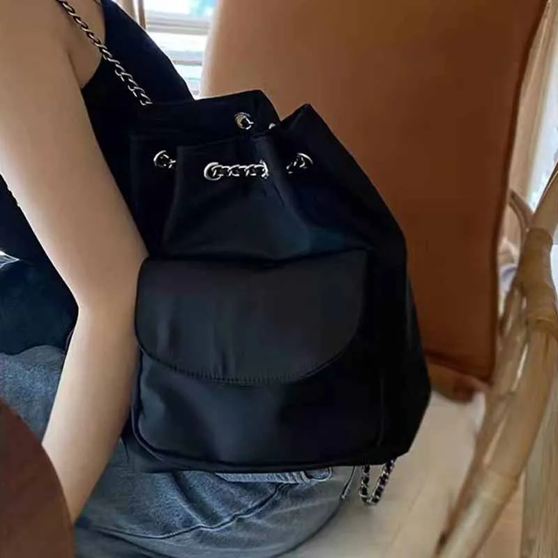 Weiyinxing Design Fashion Backpack for Women 2023 Spring and Summer Casual Travel Drawstring Chain Bucket Bags Girls Nylon Back Packs