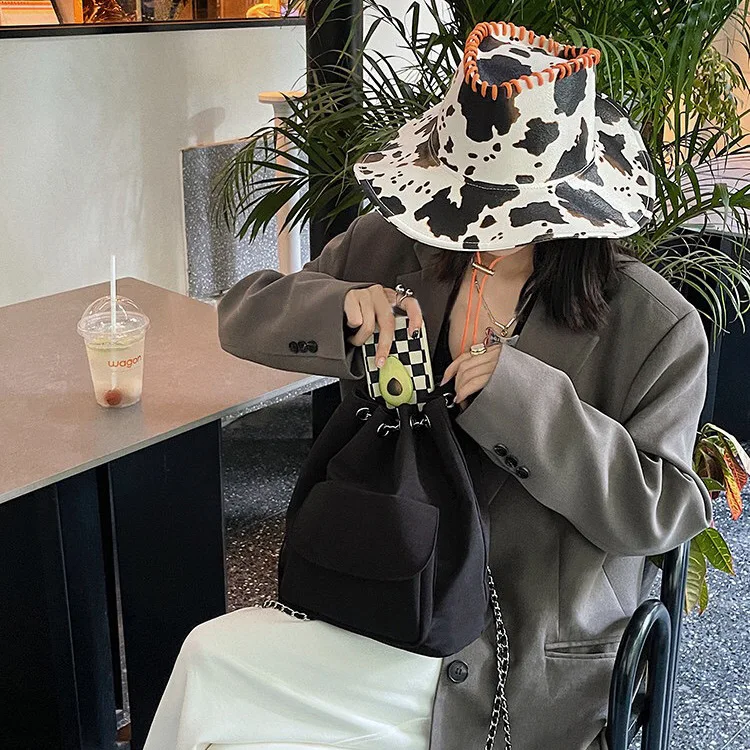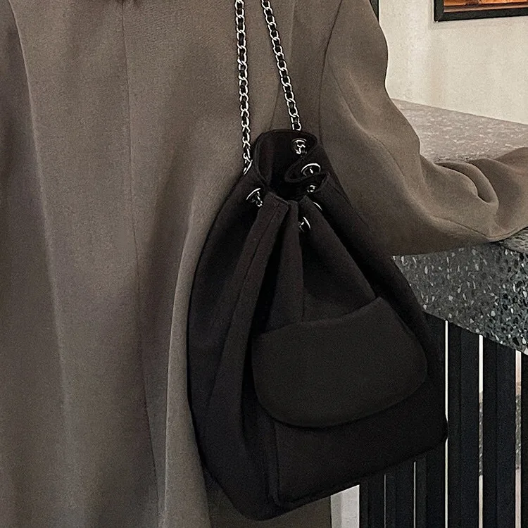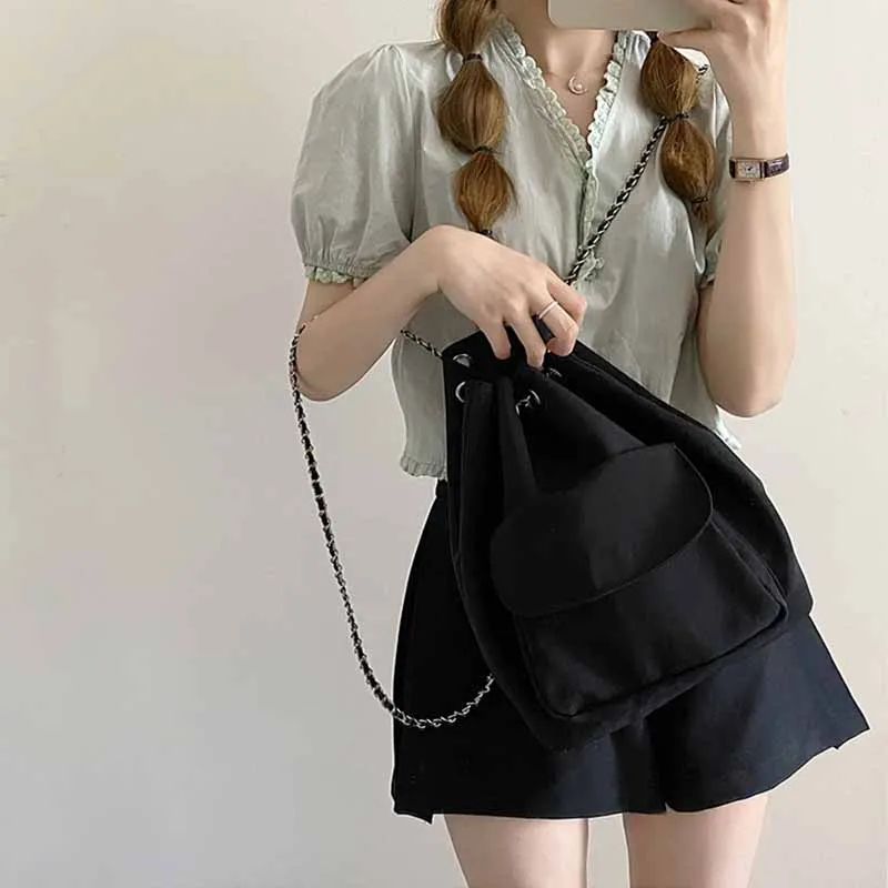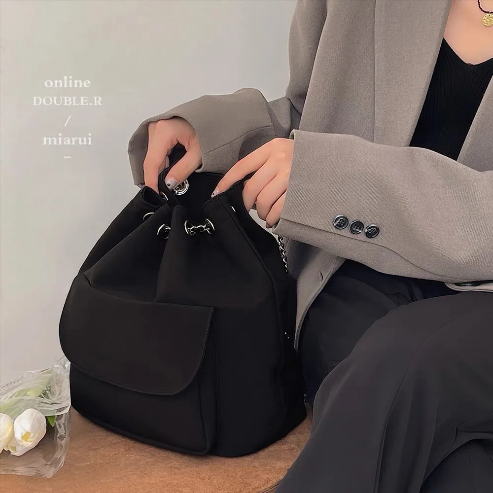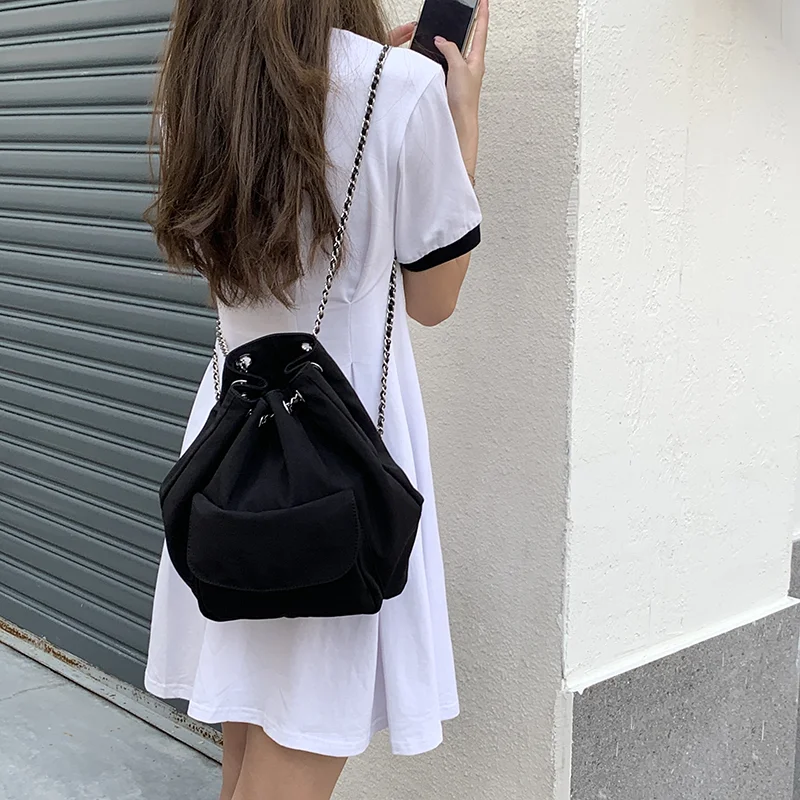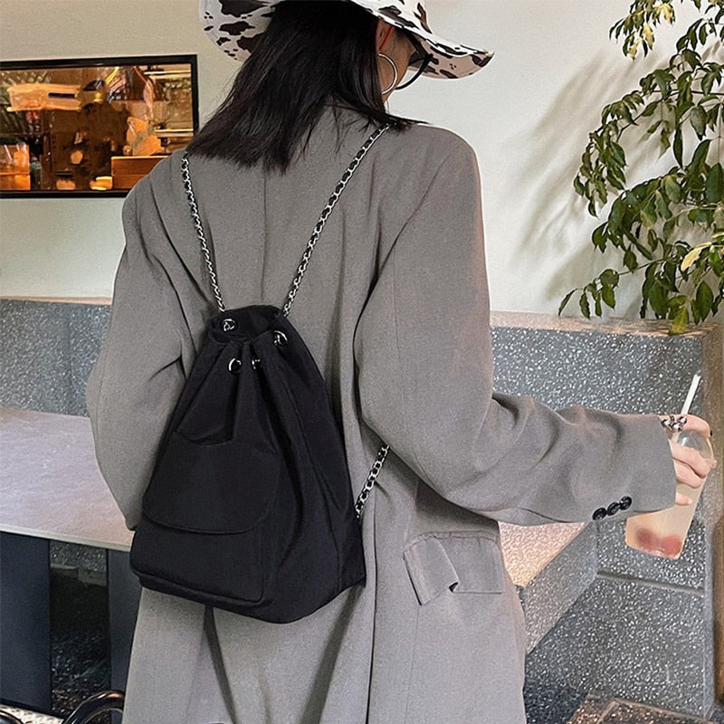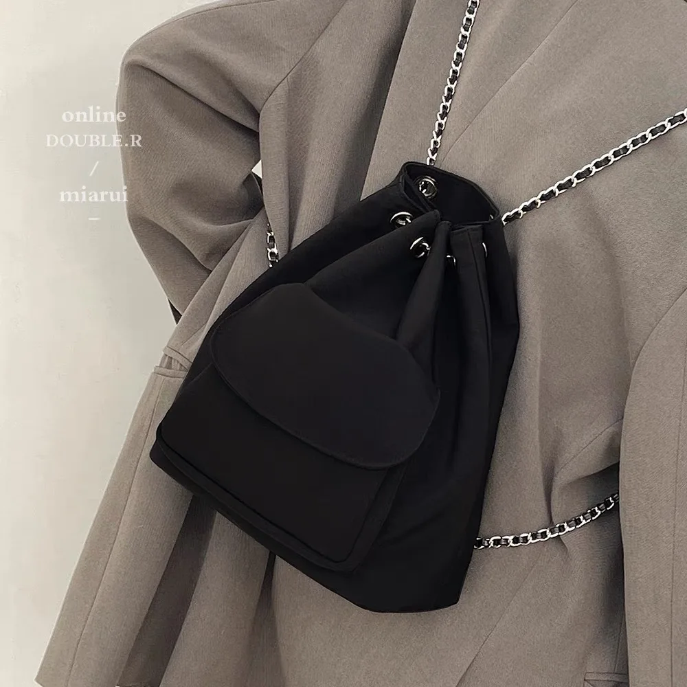 Weiyinxing Design Fashion Backpack for Women 2023 Spring and Summer Casual Travel Drawstring Chain Bucket Bags Girls Nylon Back Packs