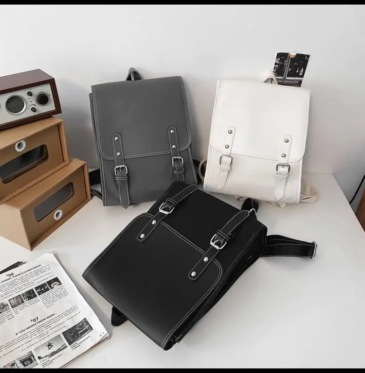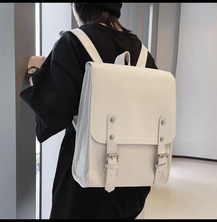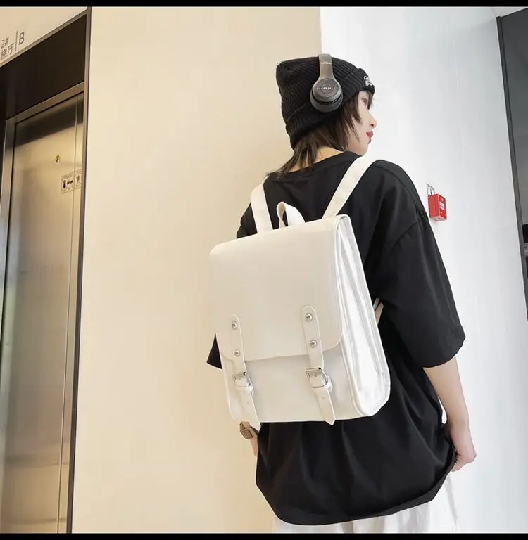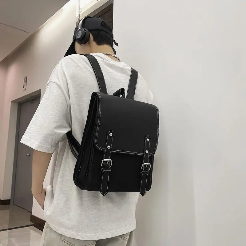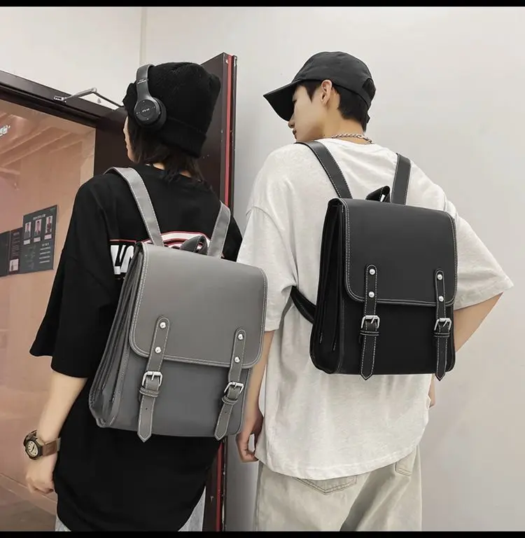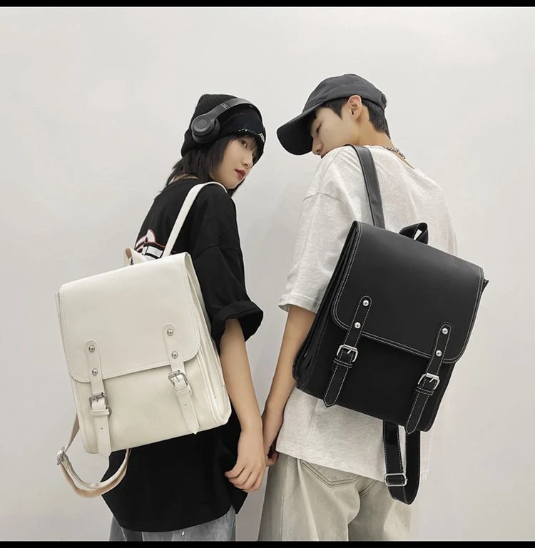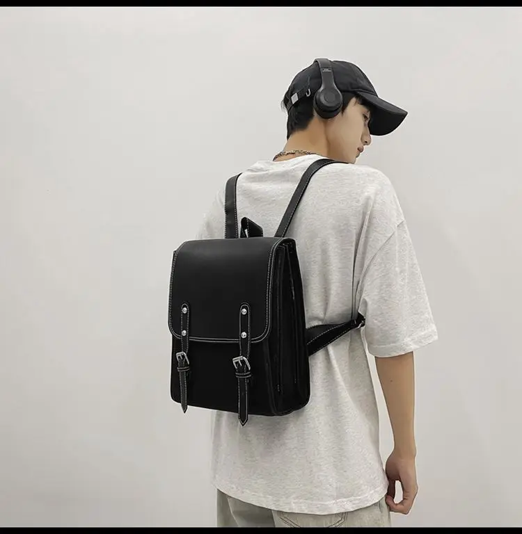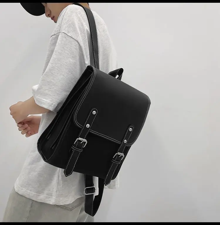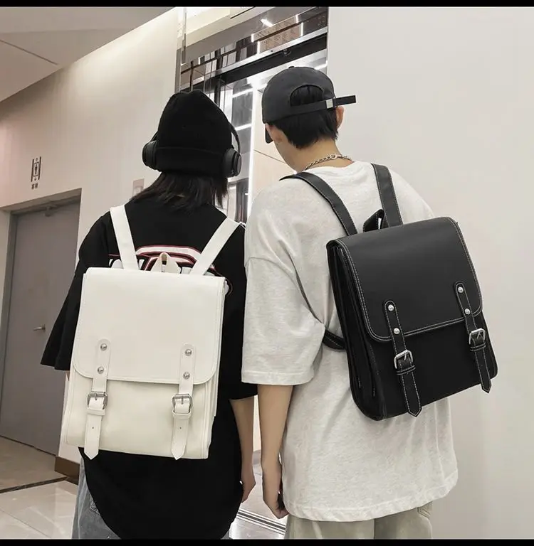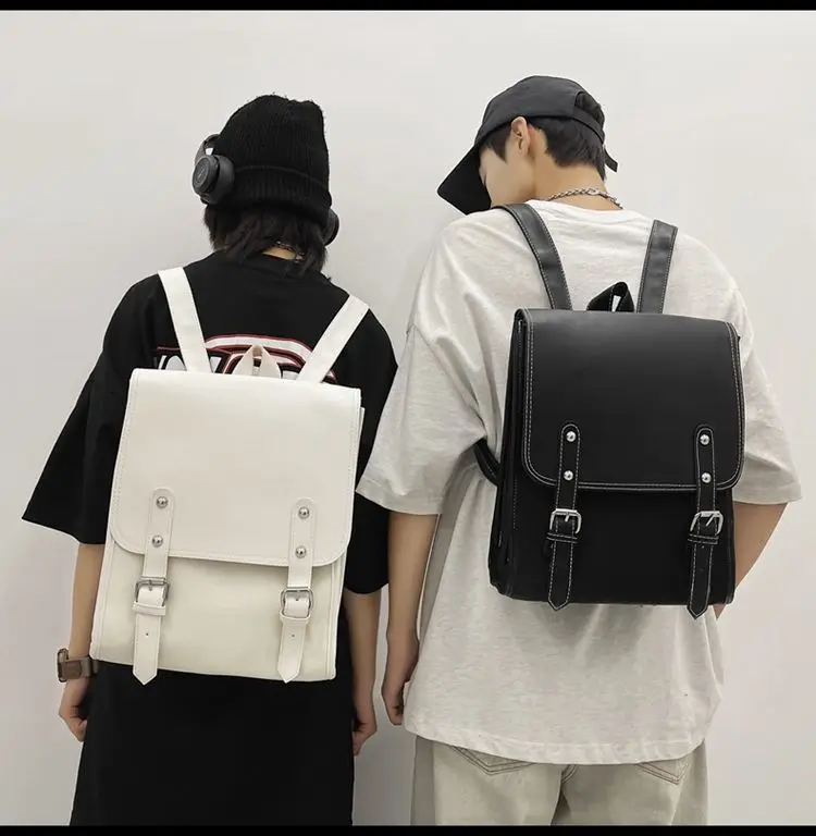 Weiyinxing Design Fashion Vintage Schoolbags All Match Men Preppy Students Backpack Women Solid Pu Leather Backpacks Y2k Aesthetic
