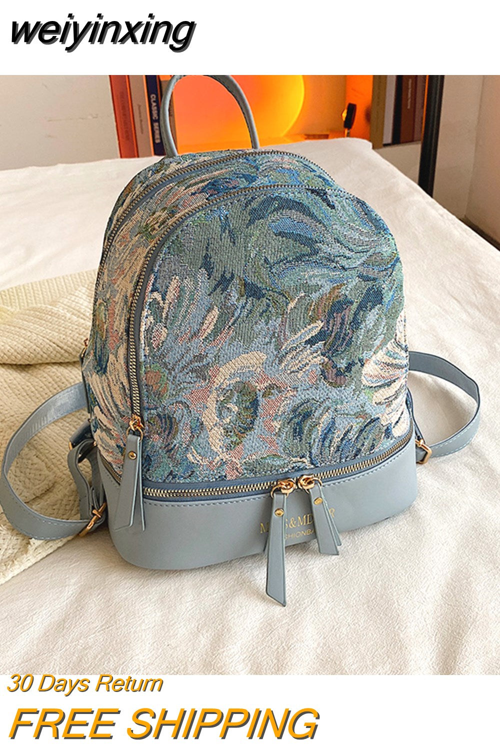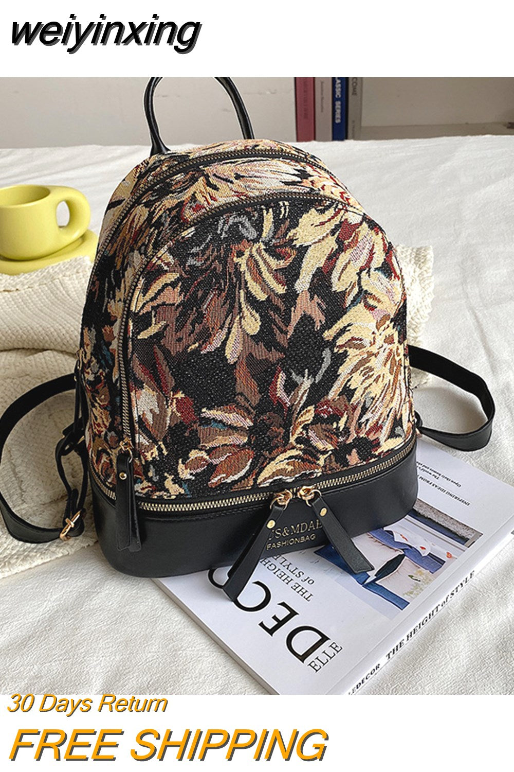 weiyinxing Designer Small Women Backpack Soft Flower Pattern Mini Female Shoulder Bags School Backpacks Bag for Teenage Girls Purses
