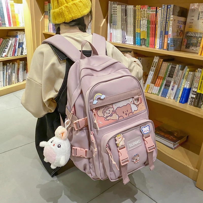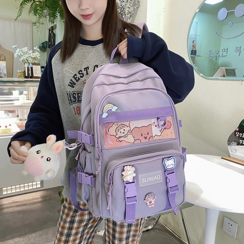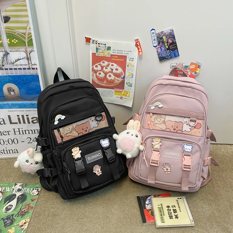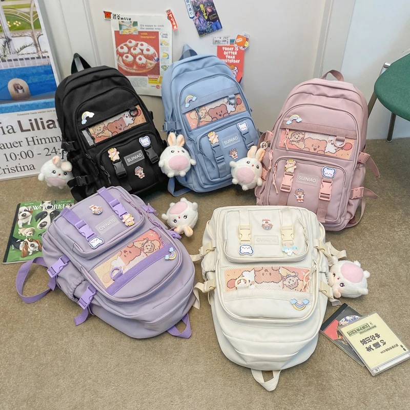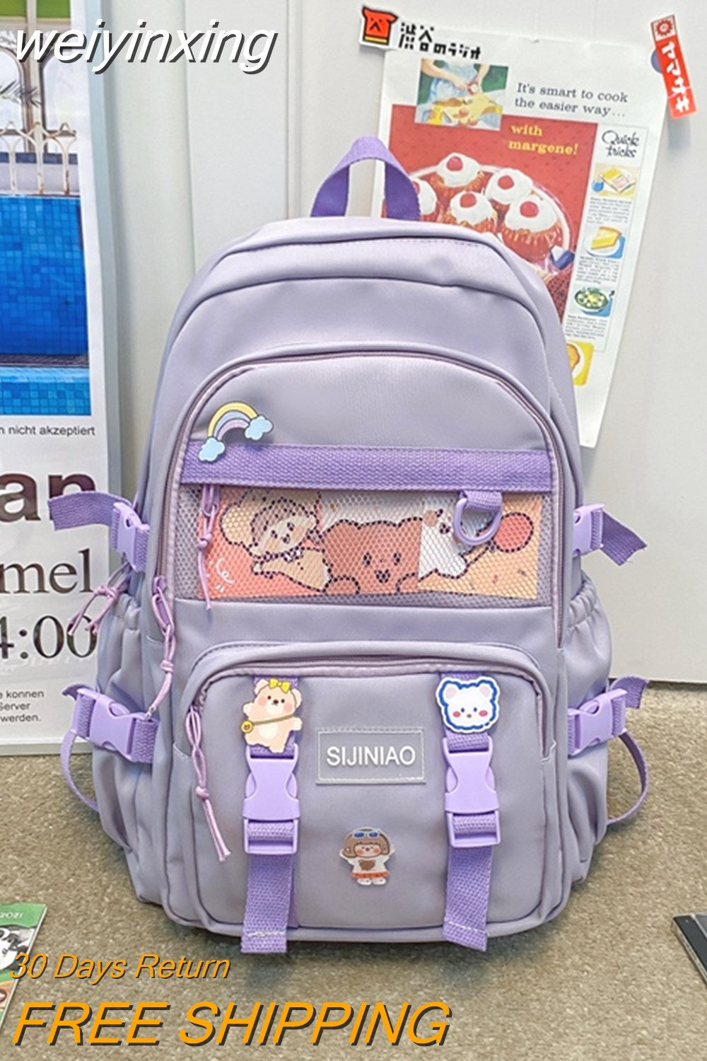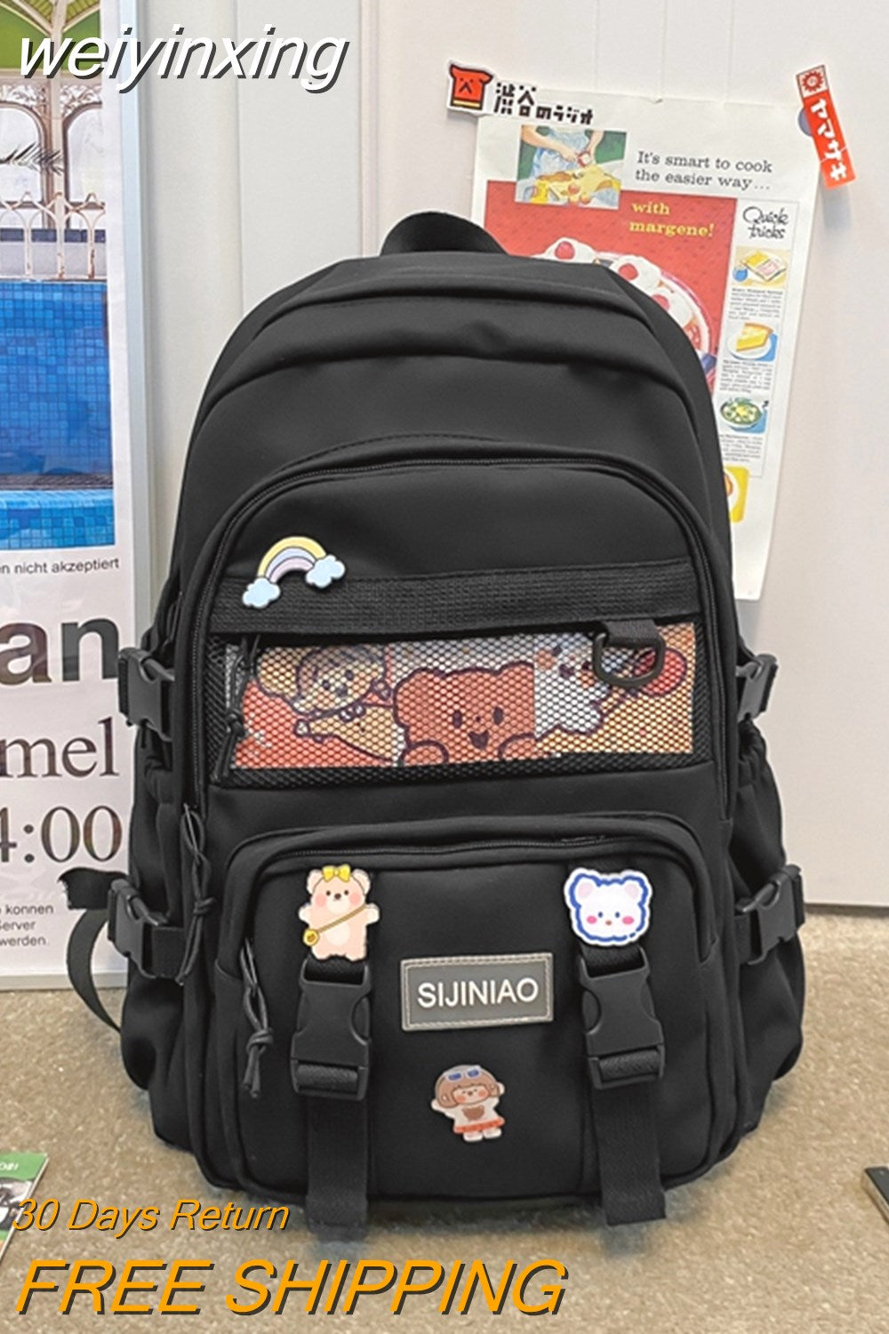 weiyinxing Fashion Girls Waterproof Backpack High School Kawaii Schoolbag Student Women Cute Travel Mochila Black Laptop Rucksack