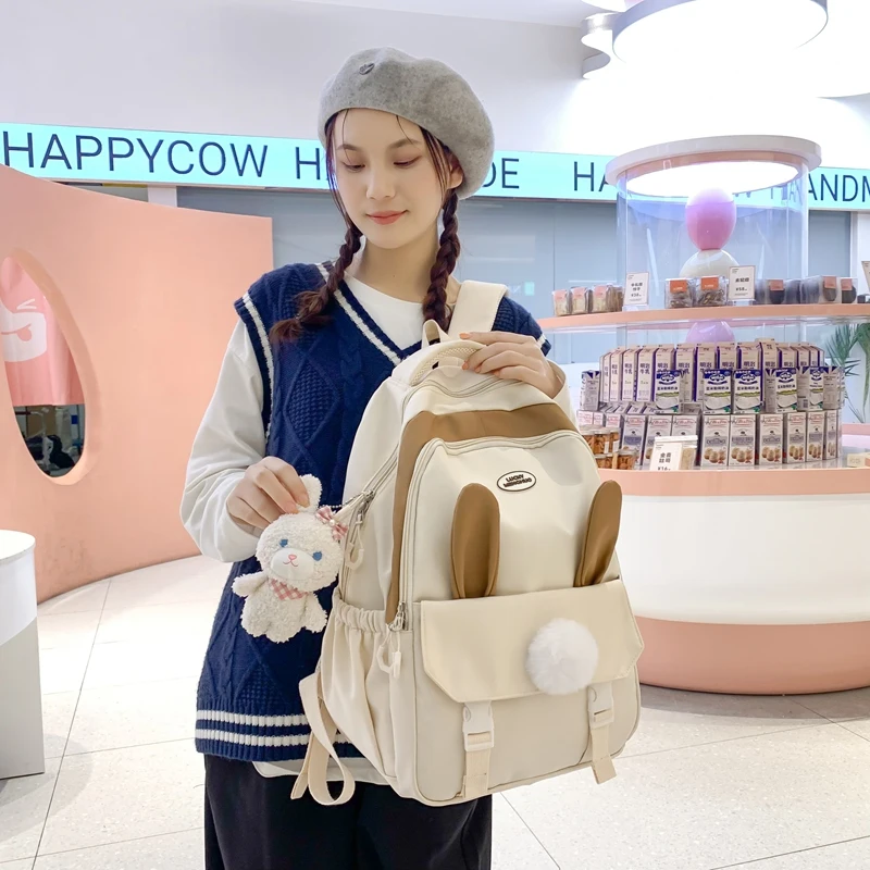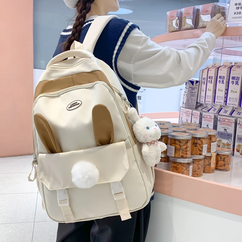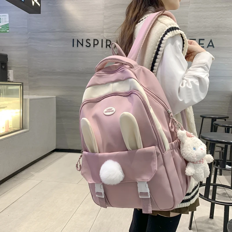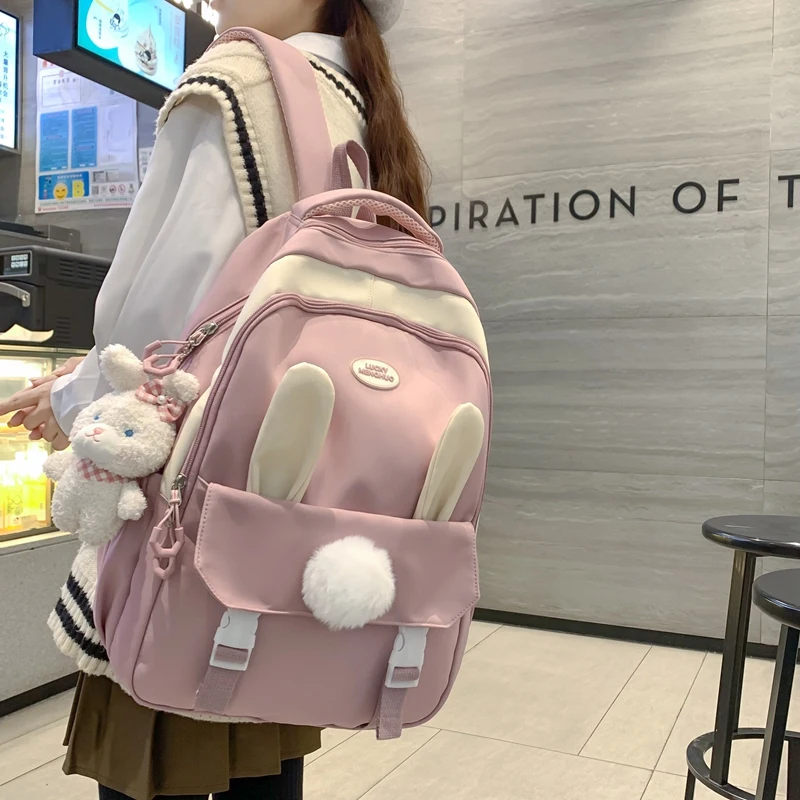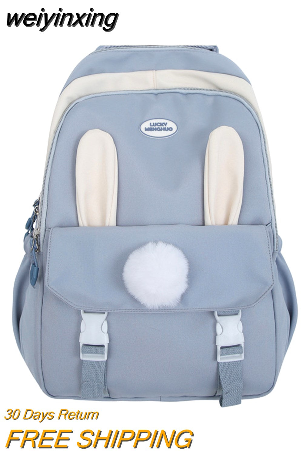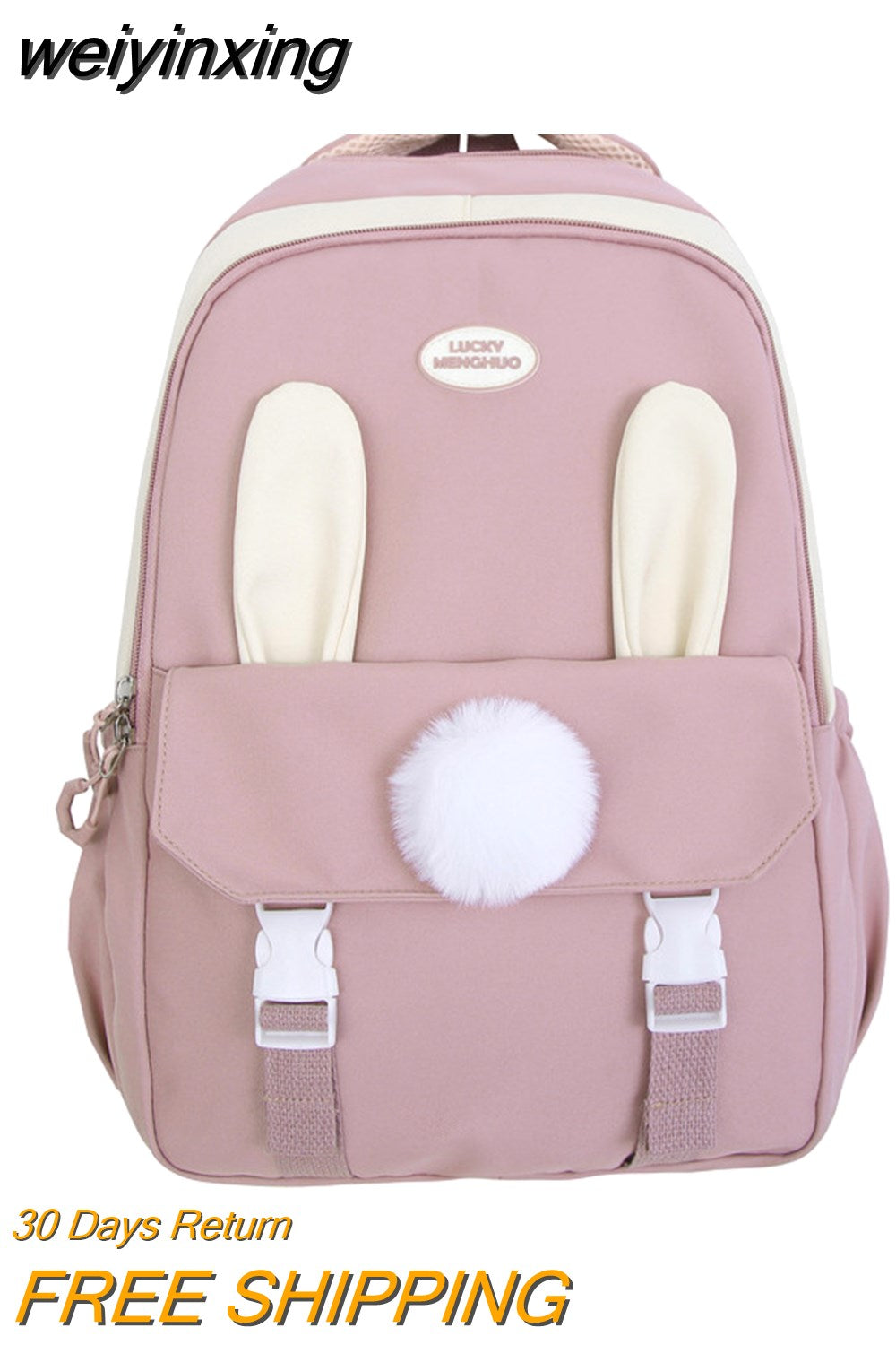 weiyinxing Fashion Kawaii Girls Bookbag Cute Rabbit Design Waterproof School Bag Women Backpack for Teens Rucksack Travel Mochila