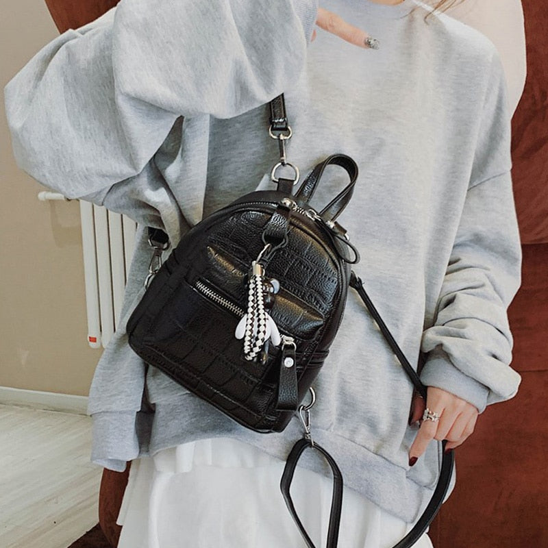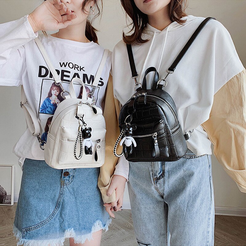 Weiyinxing Fashion New Women Backpacks High quality PU Leather Backpack Cute Small Girls School Bag Little Bear Pendant Mini Backpacks