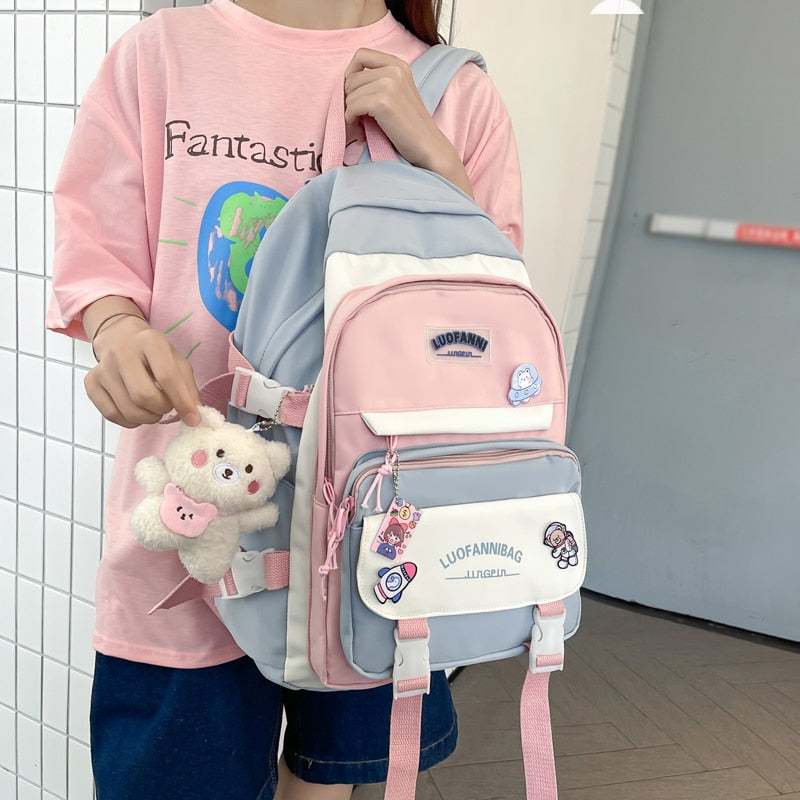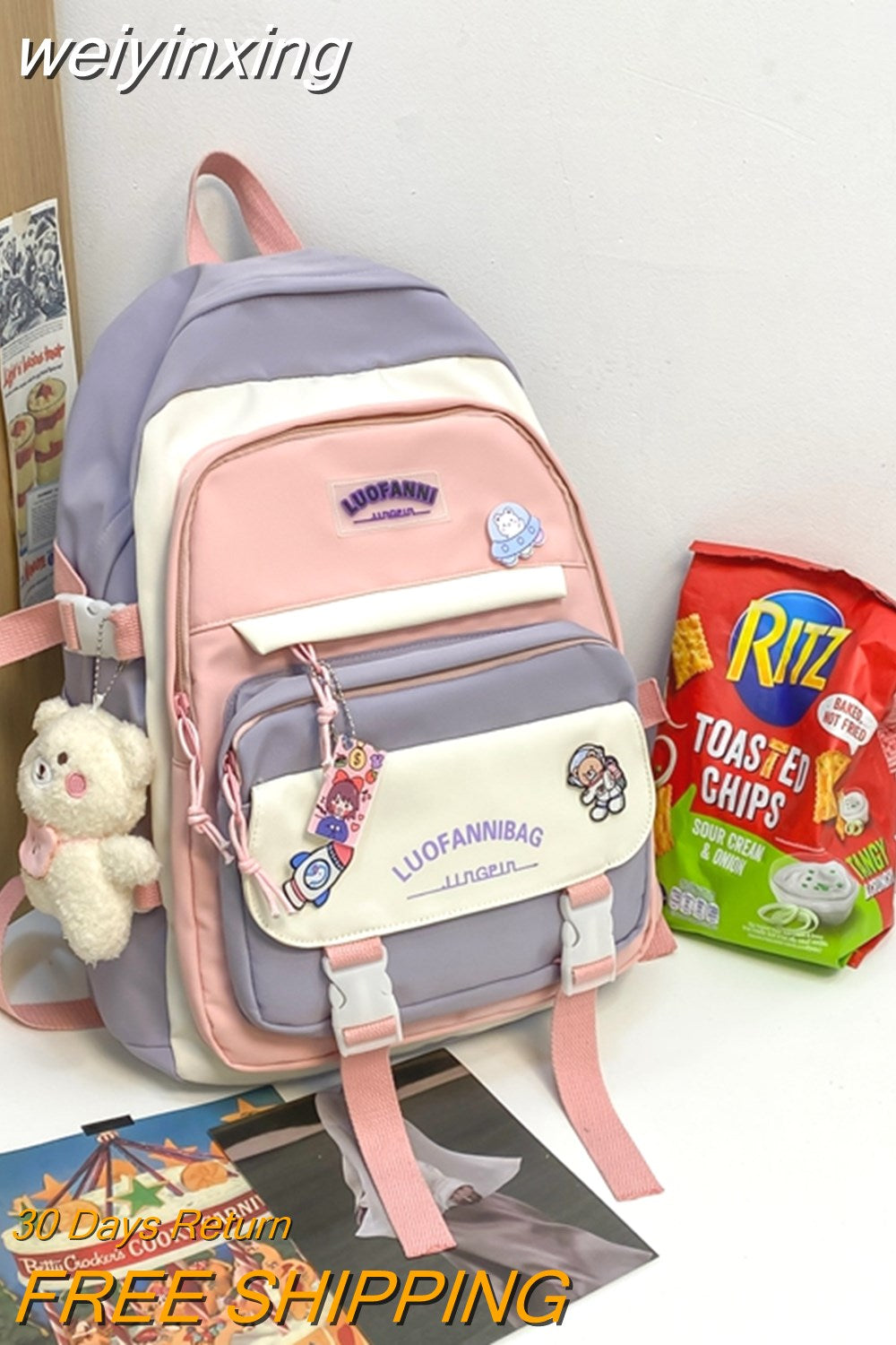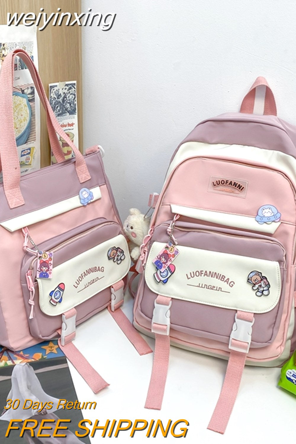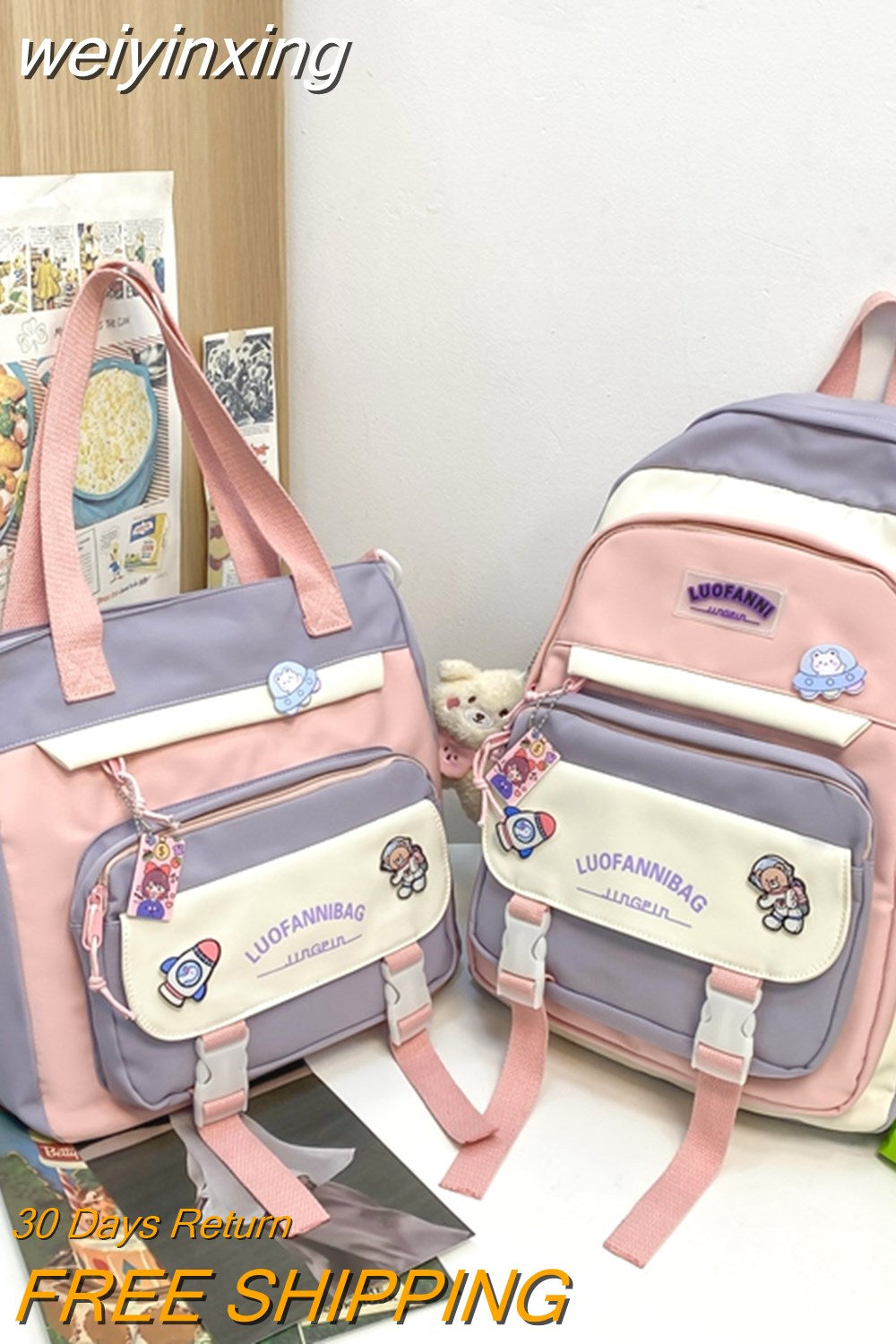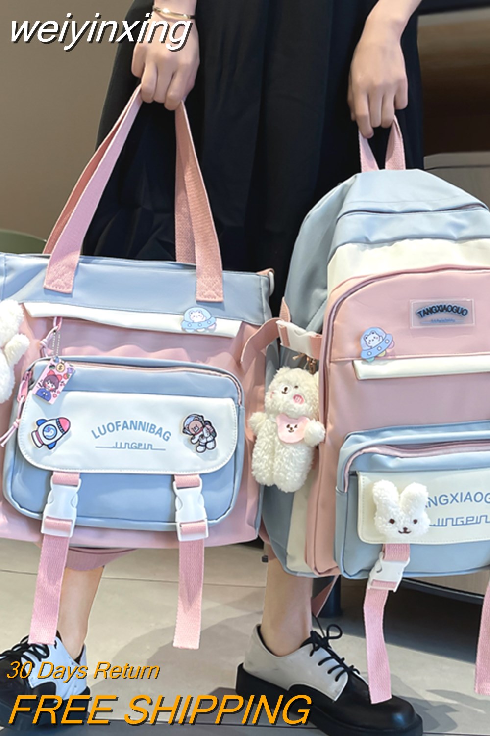 weiyinxing Fashion Women Backpack Cute Nylon Waterproof Set Bag Rucksack Teens Kawaii Bookbag for Girls Schoolbag Travel Mochila