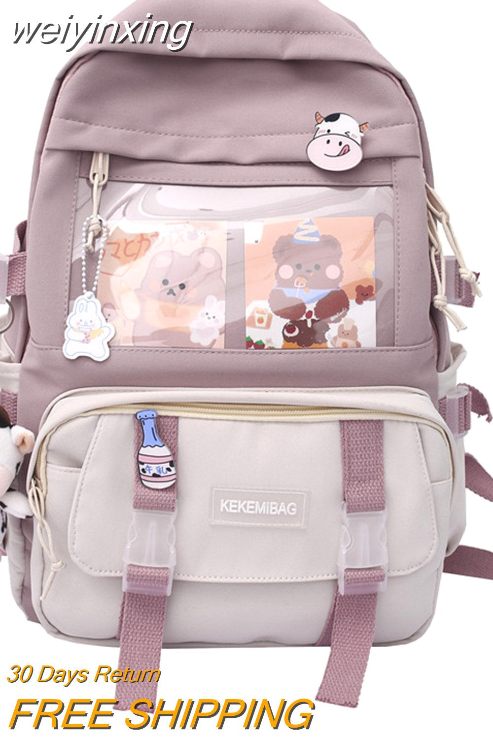 weiyinxing Fashion Women Backpack Kawaii Canvas Leisure Travel Bag Rucksack Bookbag for Teenager Girl Schoolbag Laptop Mochila