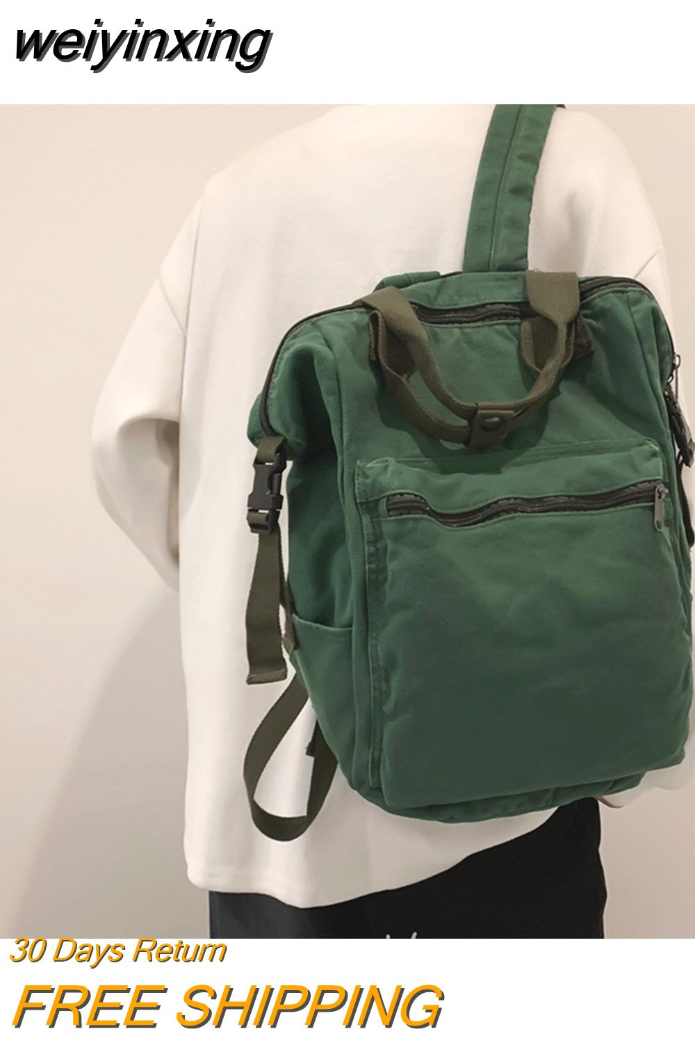 weiyinxing Fashion Women Canvas Knapsack Lovers Shoulder Bag Backpack Simple Schoolbag Men Black Rucksack College School Mochila