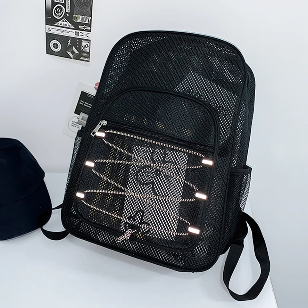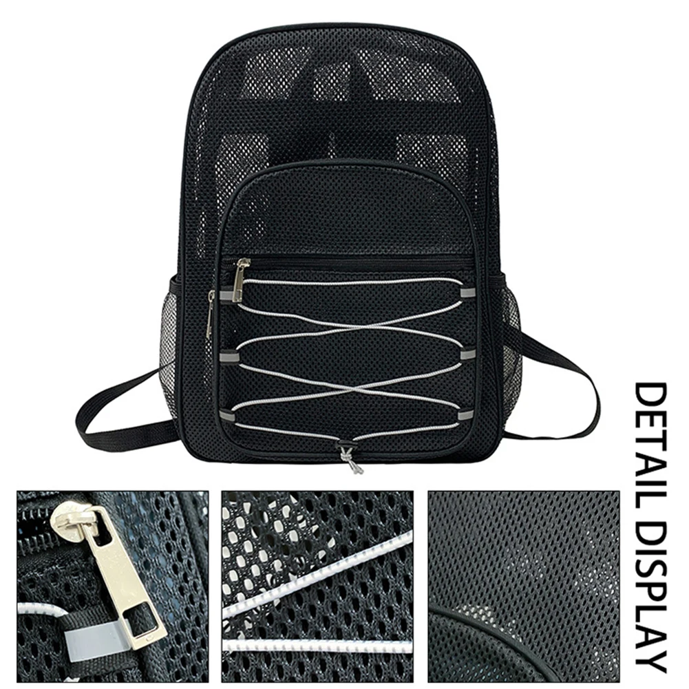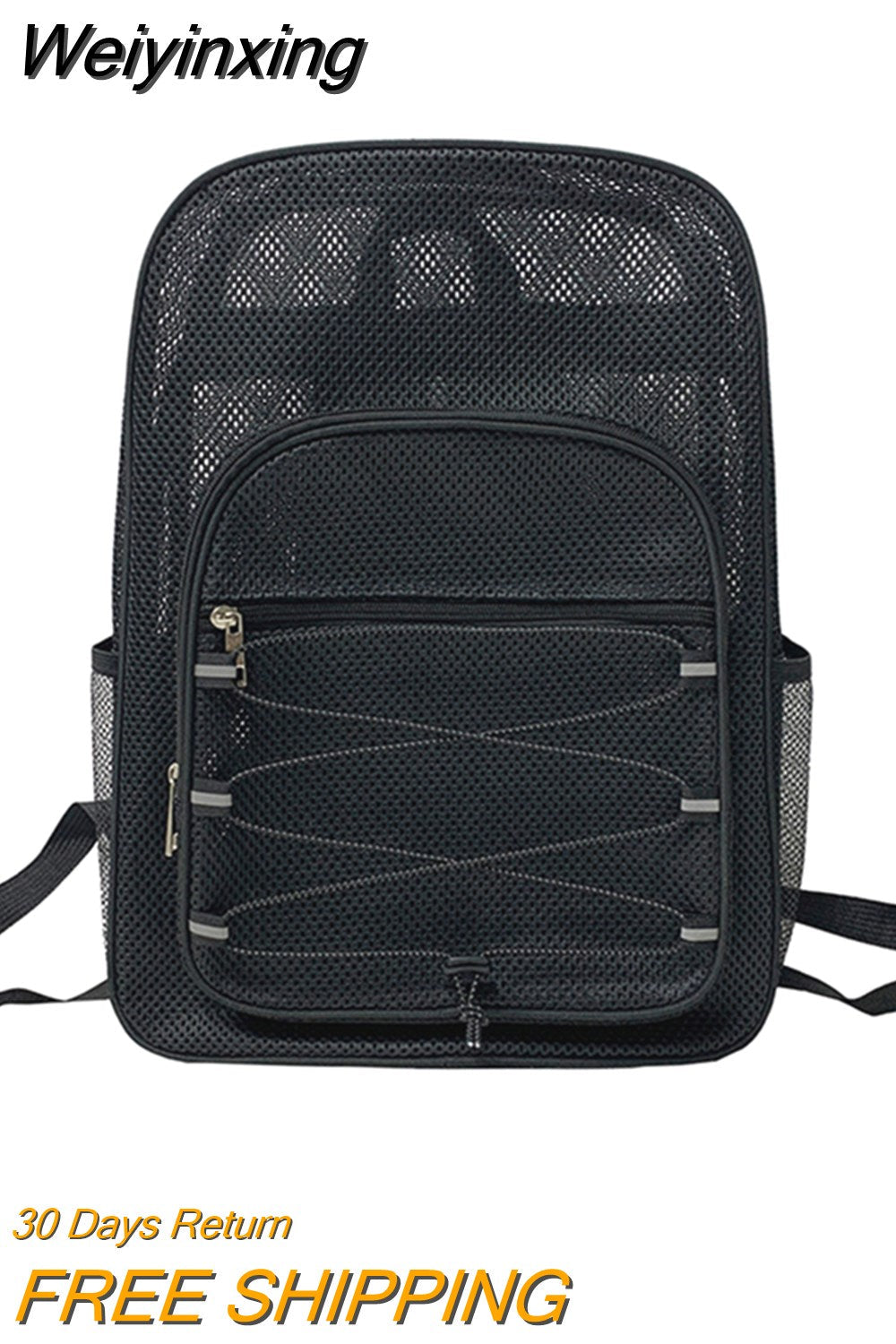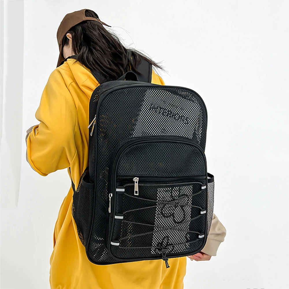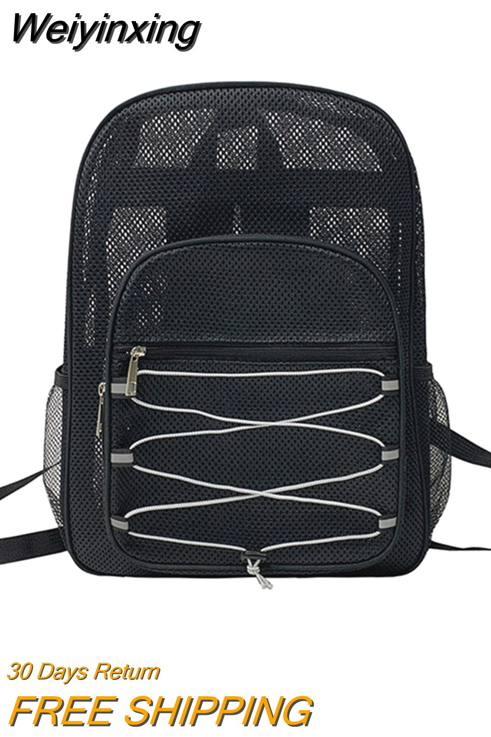 Weiyinxing Fashion Women Transparent Backpacks Mesh Backpack for Boys and Girls Light Weight Rucksack Travel Gym Bags Black Student Bag