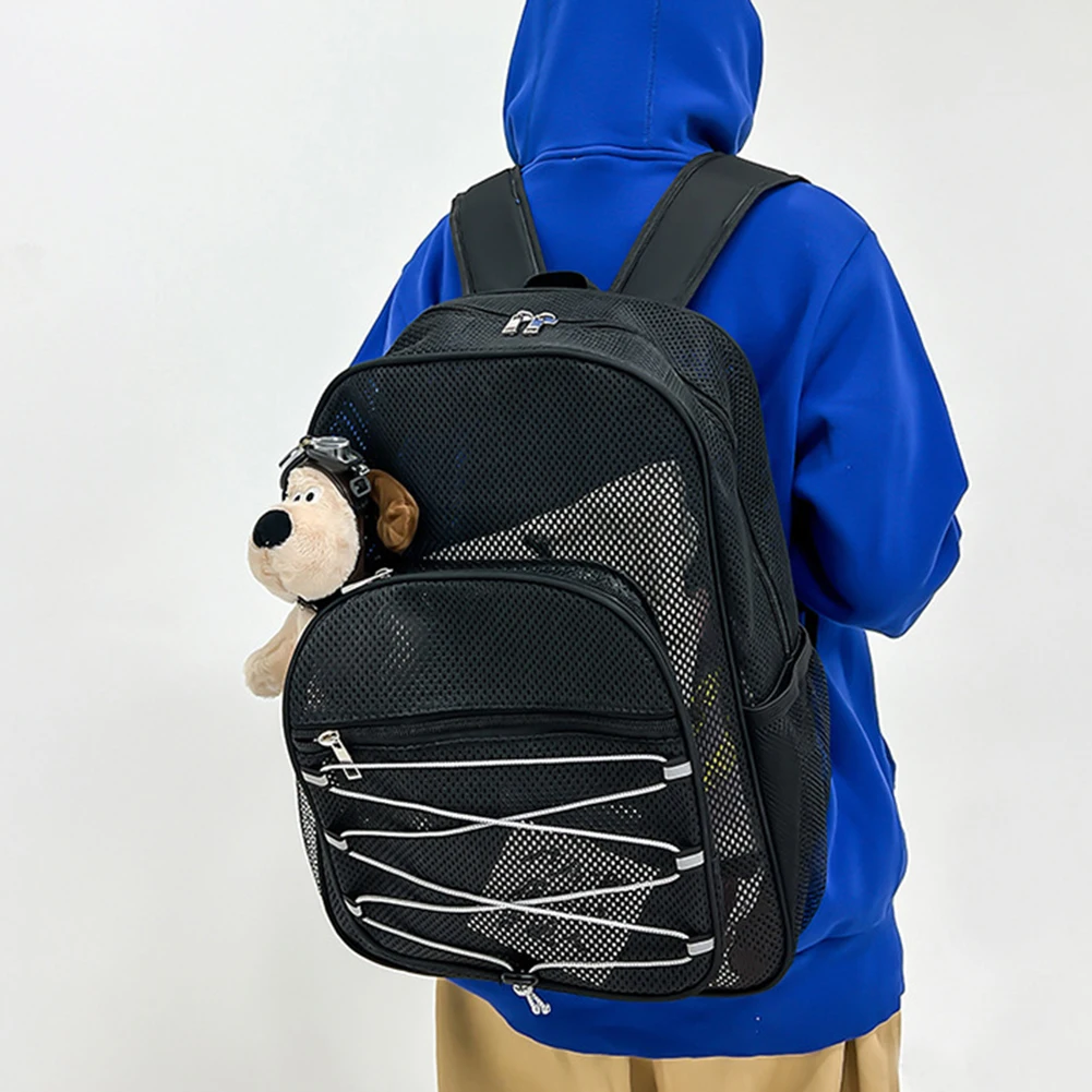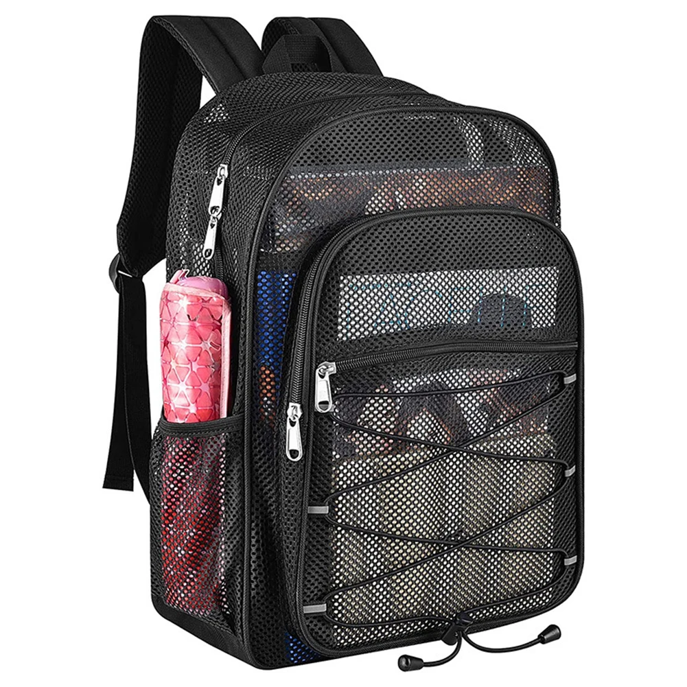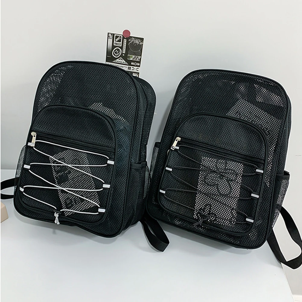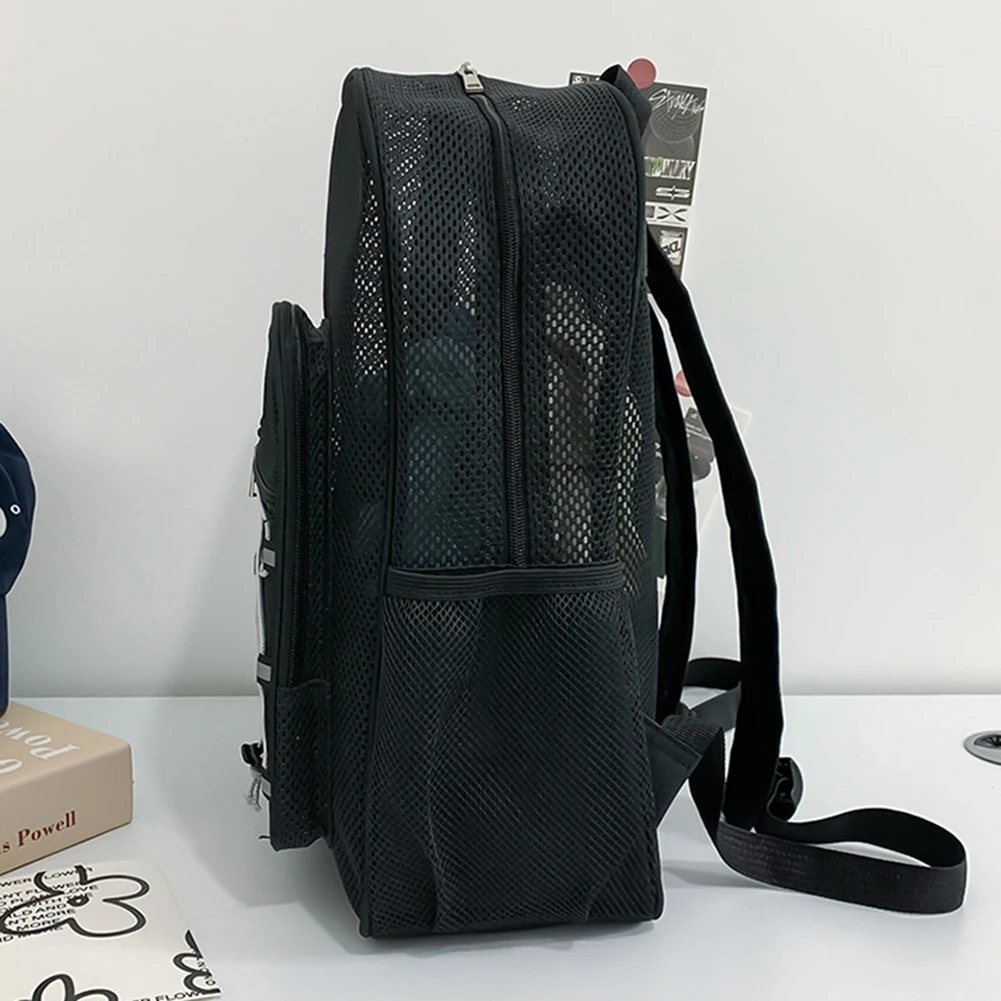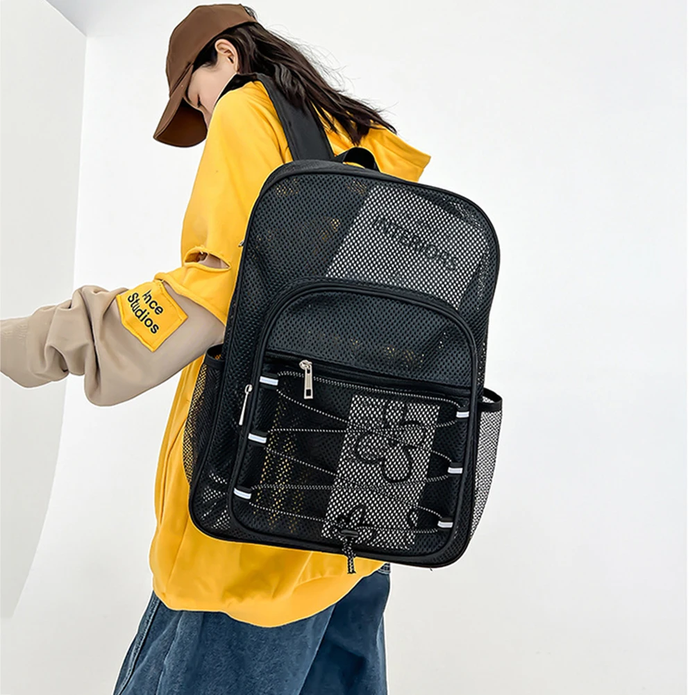 Weiyinxing Fashion Women Transparent Backpacks Mesh Backpack for Boys and Girls Light Weight Rucksack Travel Gym Bags Black Student Bag