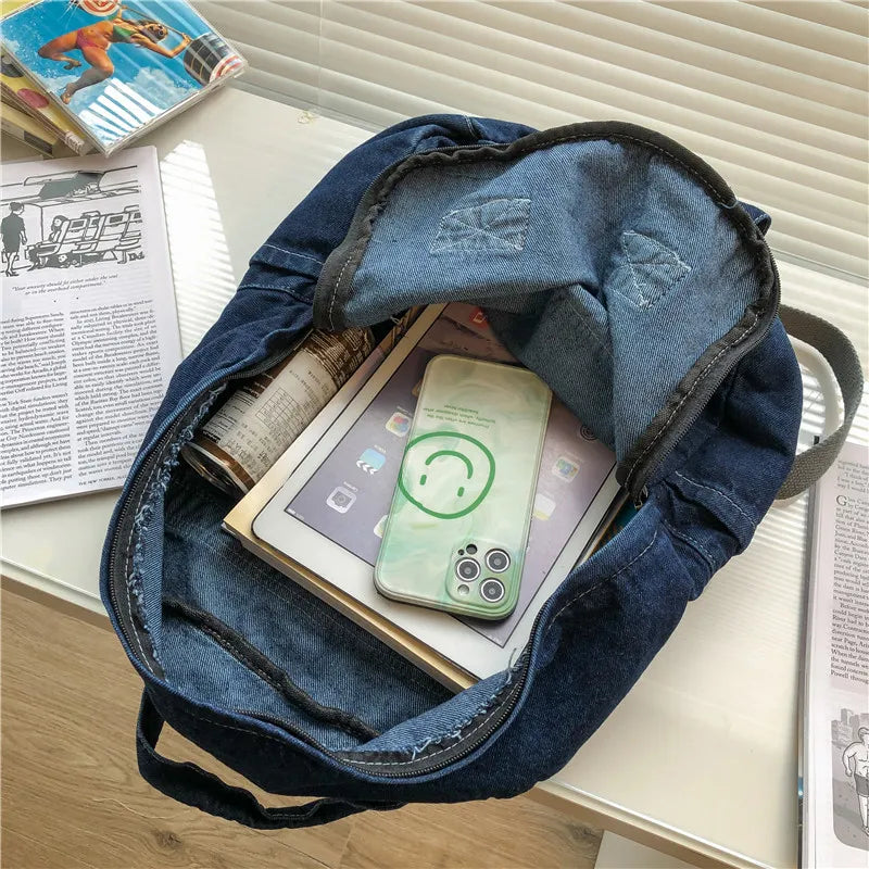 Weiyinxing Fashion Women's Backpack Denim Travel Backpacks College Student School Bag for Teenager Girls Female Shoulder Bags Book Bag