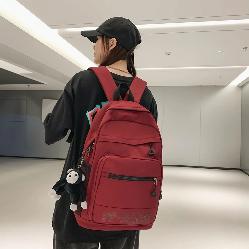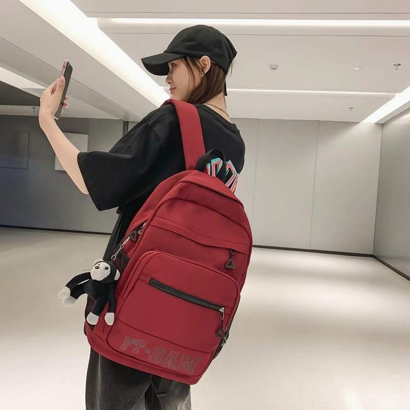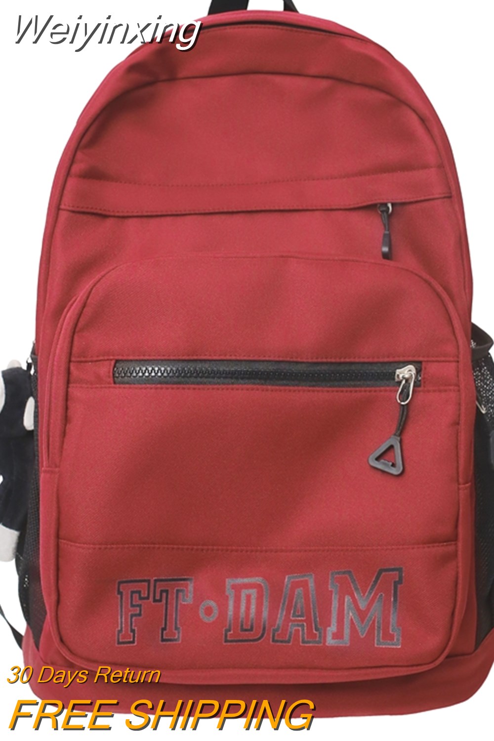 Weiyinxing Female Male Red Waterproof Student Book Bag Nylon Girl Boy Travel School Bag Men Lady Laptop College Women Backpack Fashion