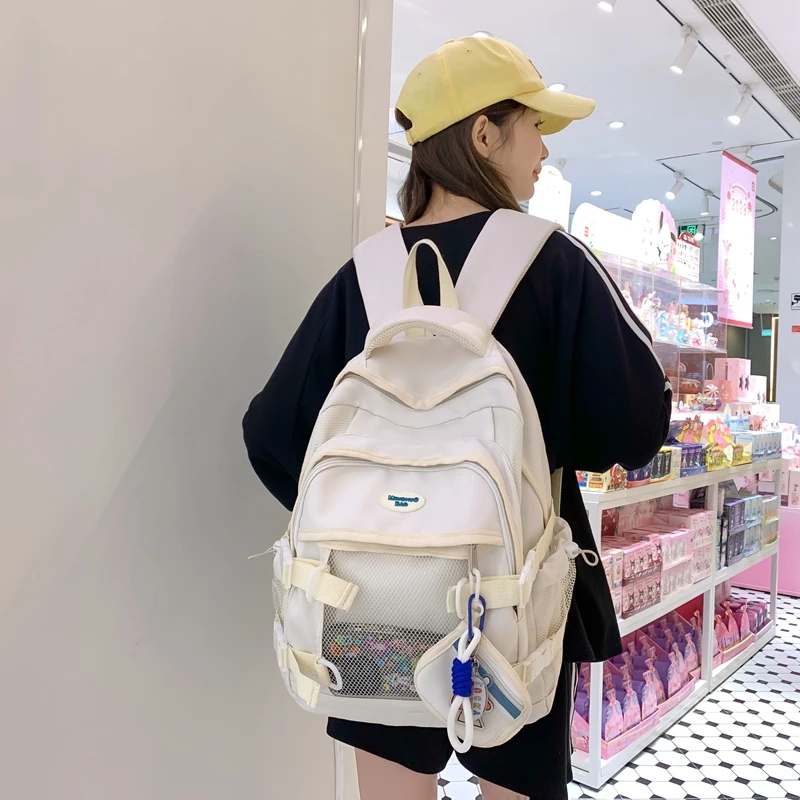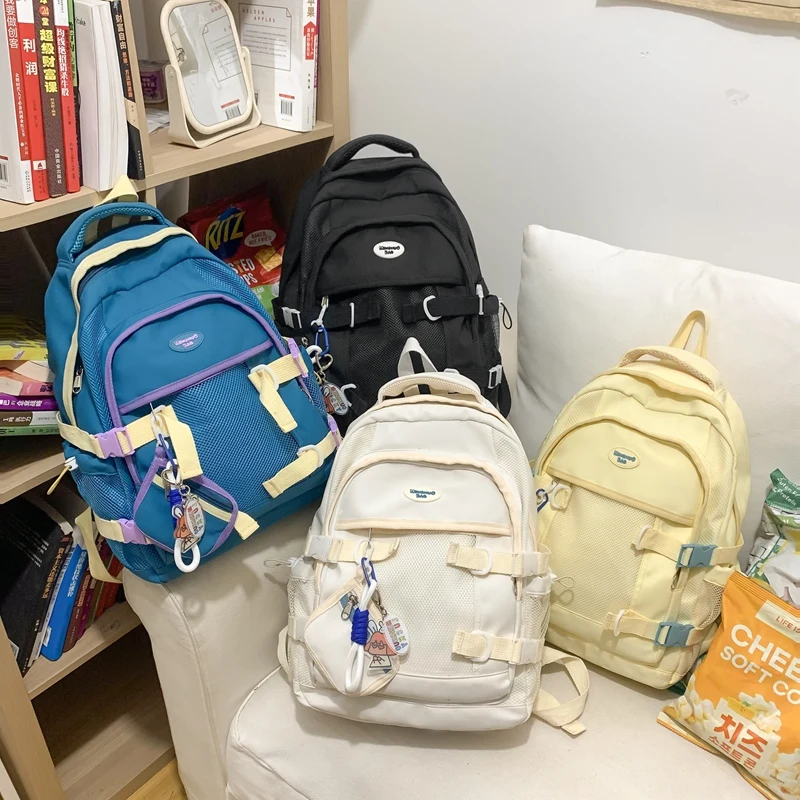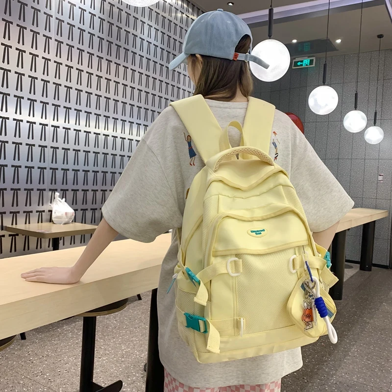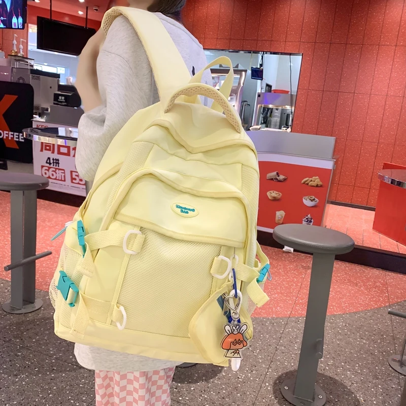Weiyinxing Female Yellow Kawaii Mesh Travel Coin Purse College School Backpack Girl Nylon Cool Lady Cute Laptop Net Book Bags Women