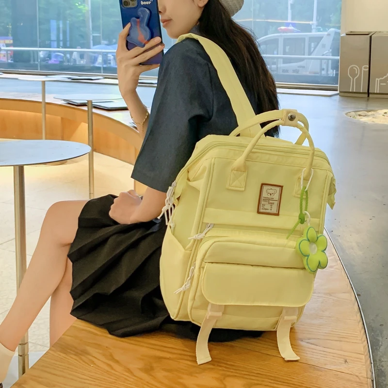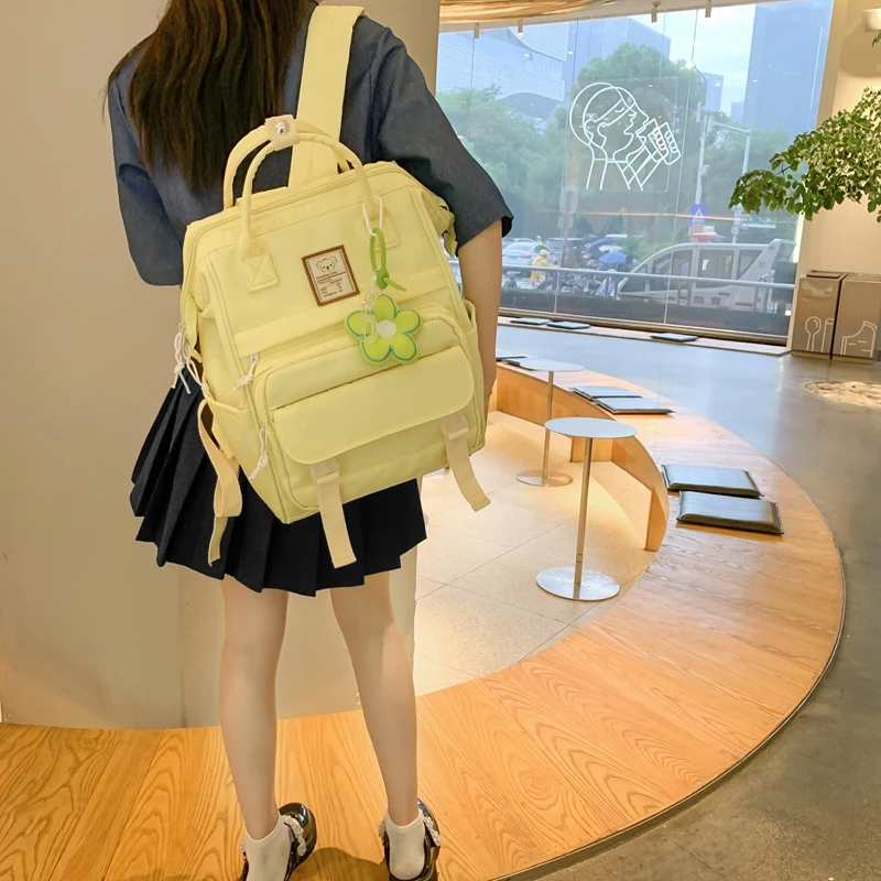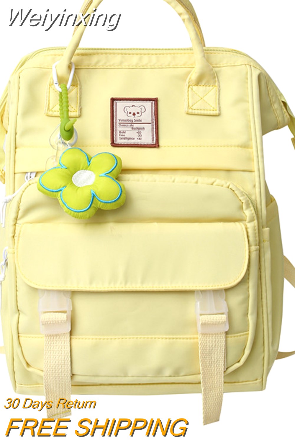 Weiyinxing Female Yellow Laptop College Backpack Fashion Lady Kawaii Book Bag Cool Women Nylon Student Backpack Girl Cute School Bag