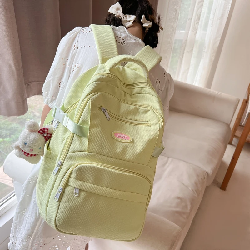 Weiyinxing Female Yellow Travel Student Backpack Girl Kawaii Nylon School Backpack Women Laptop Ladies Cute College Book Bag Fashion
