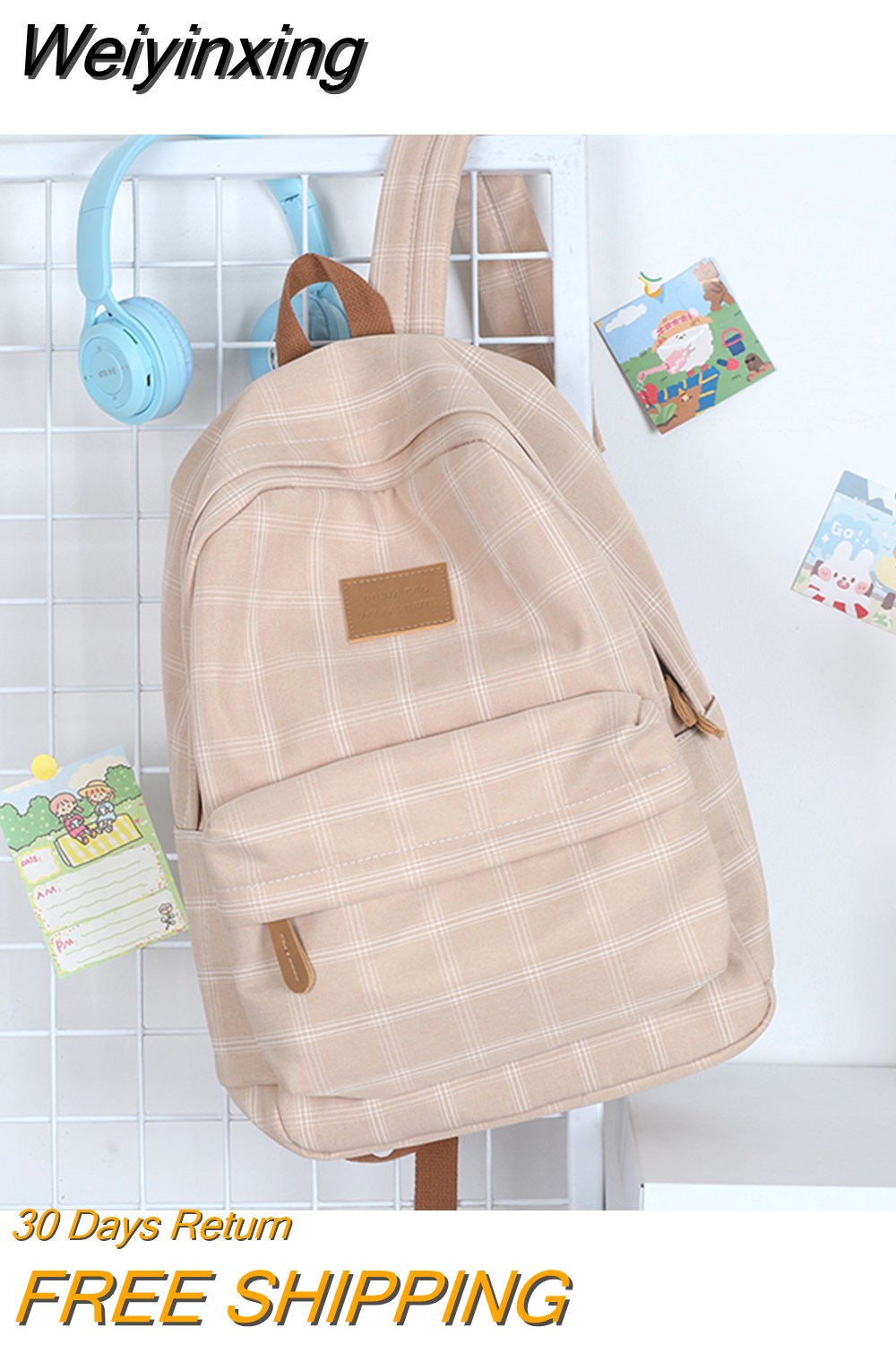 Weiyinxing Girl College School Bag Casual New Simple Women Backpack Striped Book Packbags for Teenage Travel Shoulder Bag Rucksack