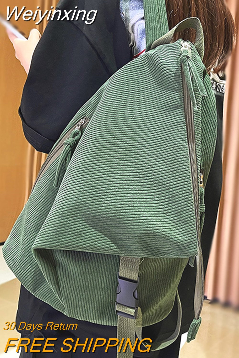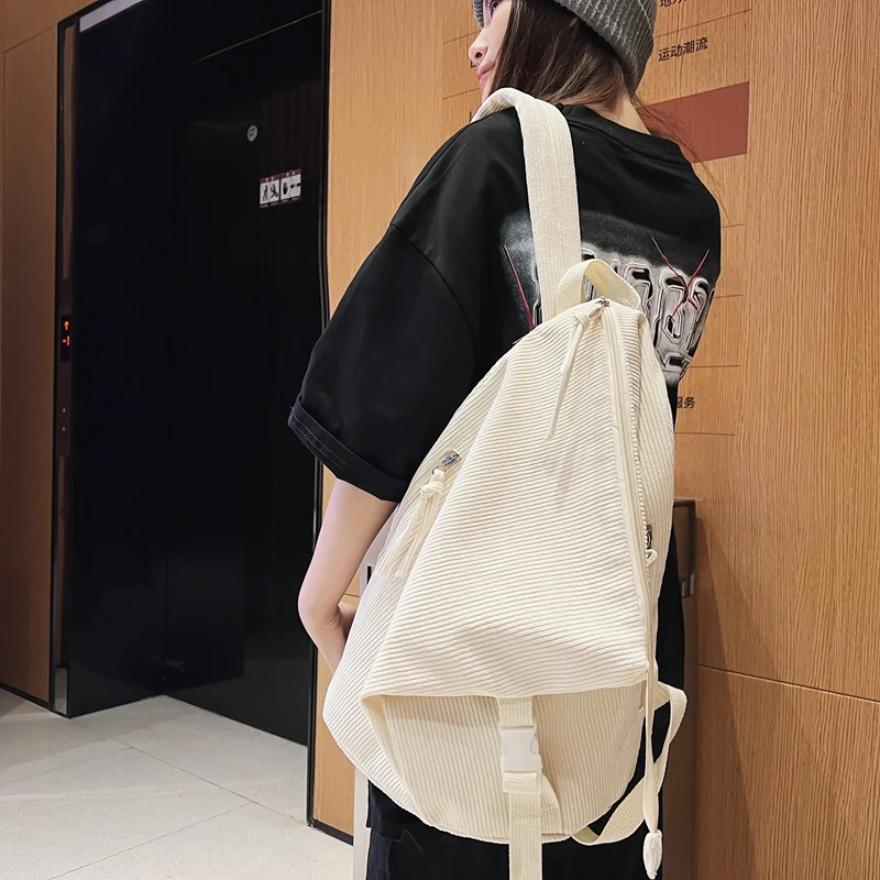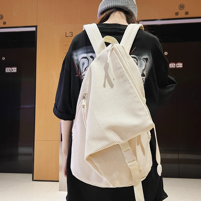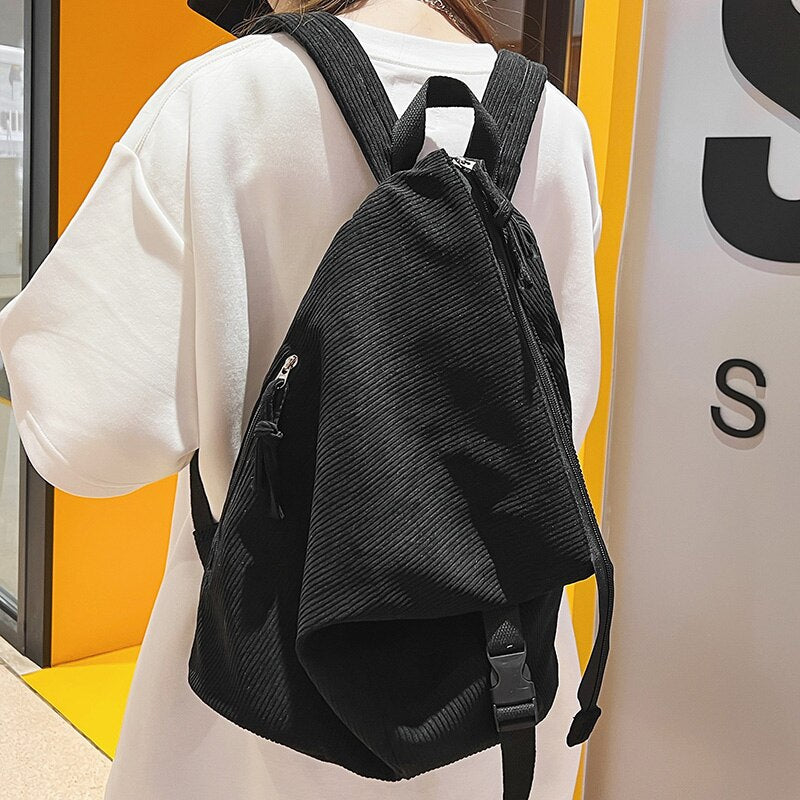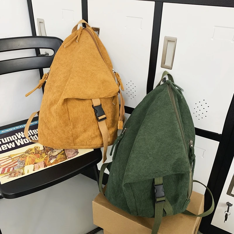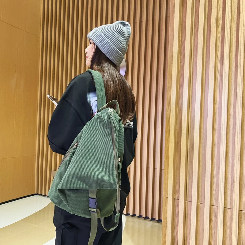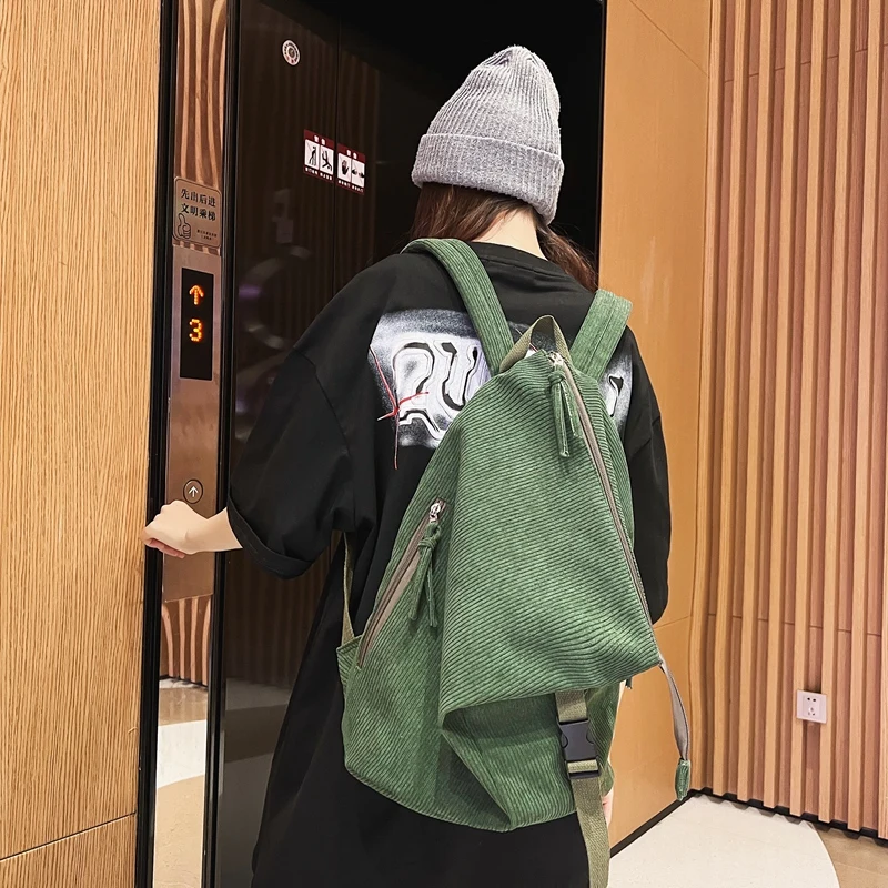 Weiyinxing Girl Corduroy Fold Green Backpack Cool Design Female Travel College Backpack Fashion New Lady Cute Women Laptop Book Bags
