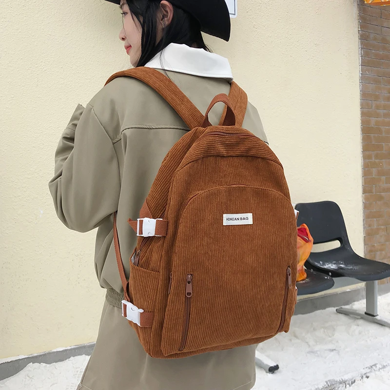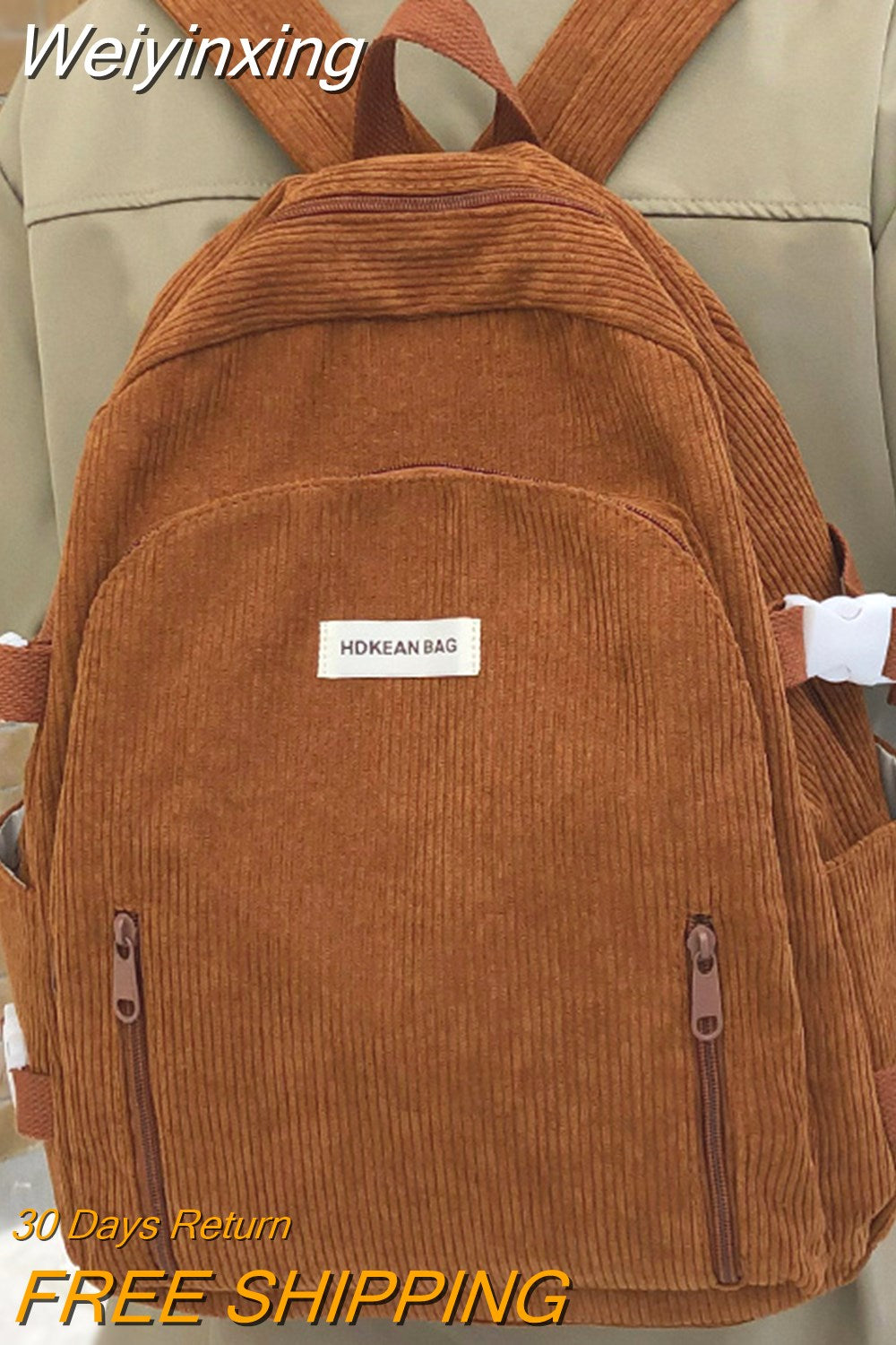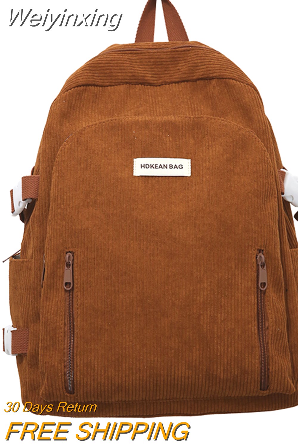 Weiyinxing Girl Corduroy Kawaii Backpack Cool Design Female Travel College Backpack Fashion Lady Cute Book Women Laptop Student Bags