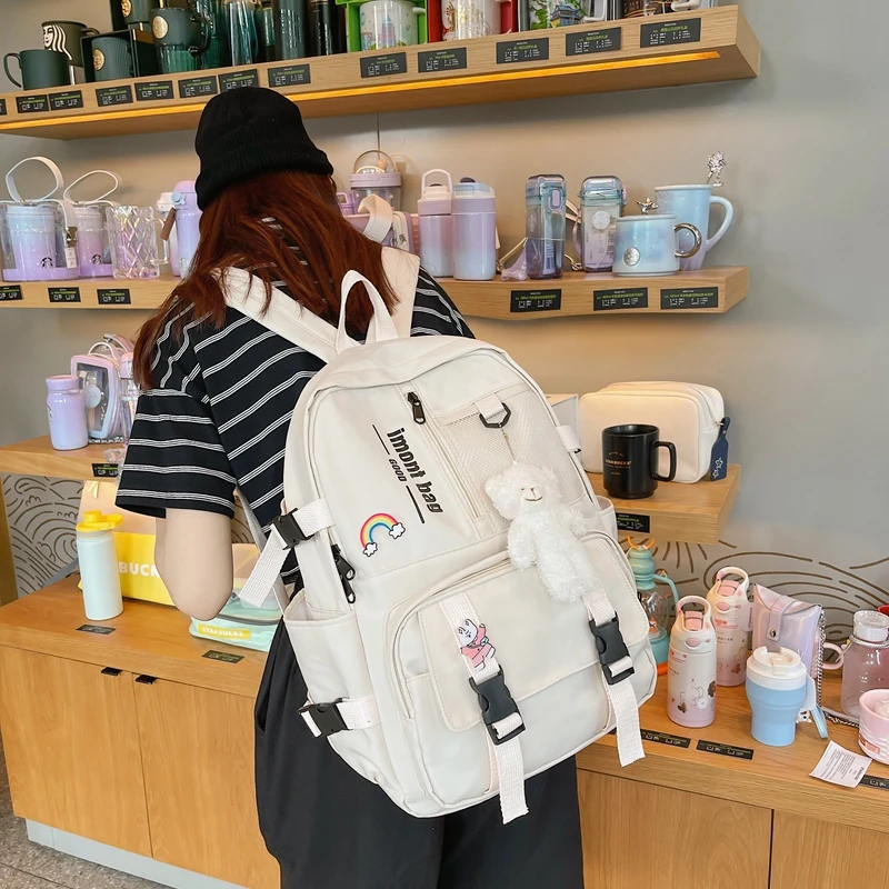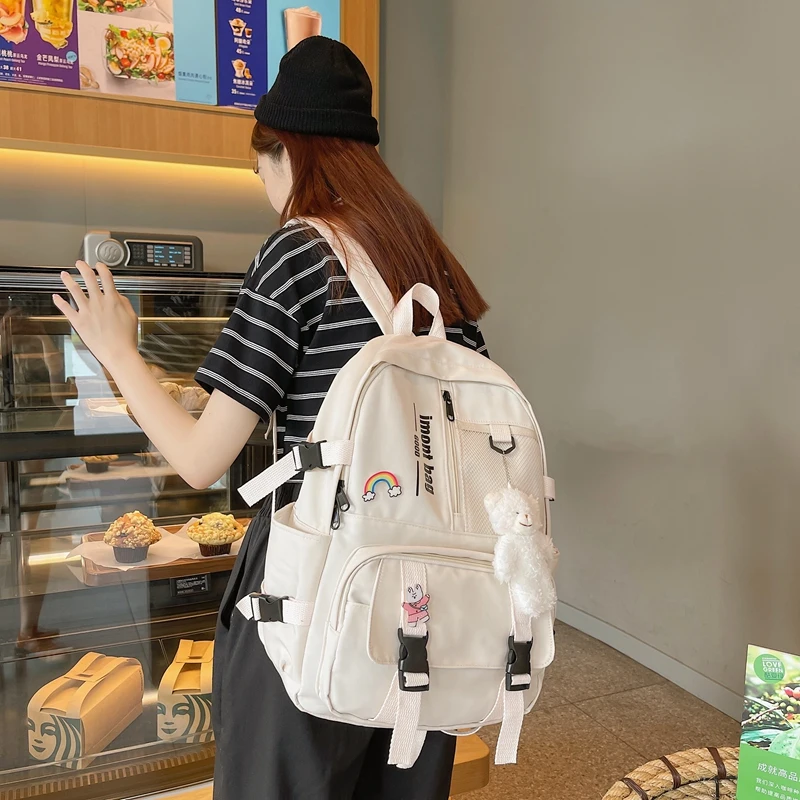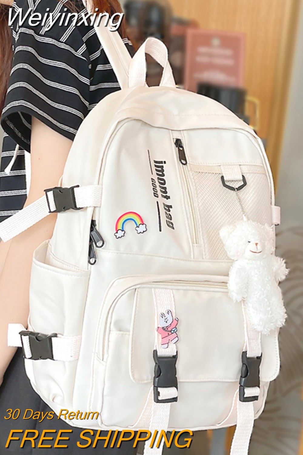 Weiyinxing Girl White Waterproof Backpack Nylon Ladies School Bag Kawaii Female Laptop Bag Women College Student Mesh Backpack Fashion