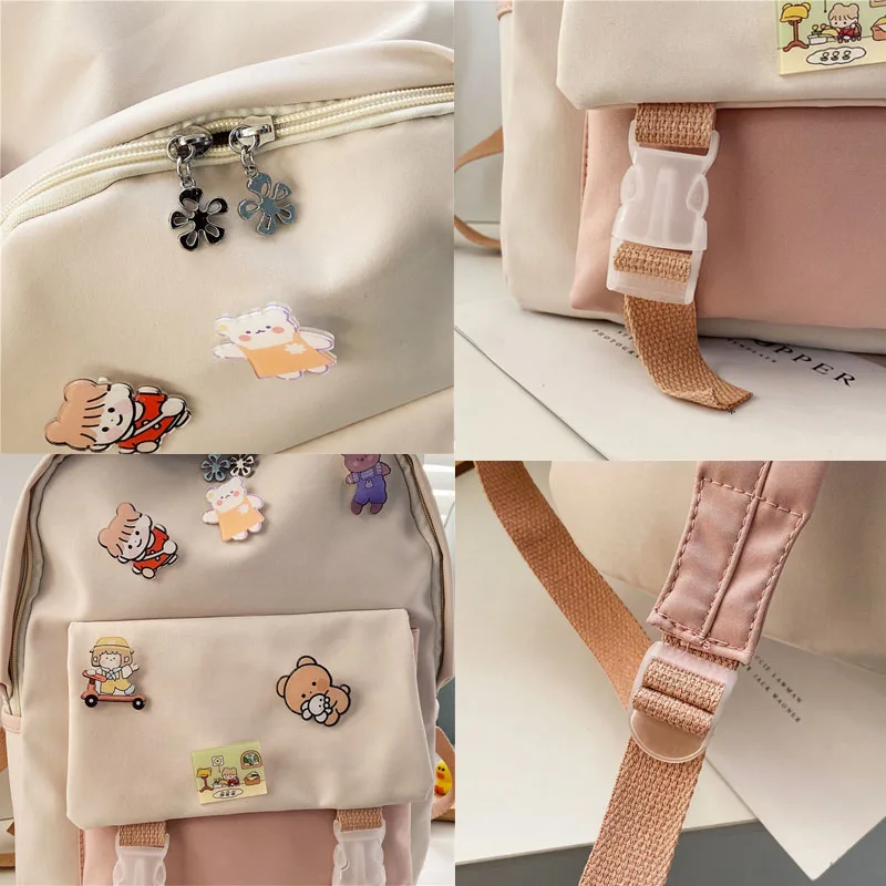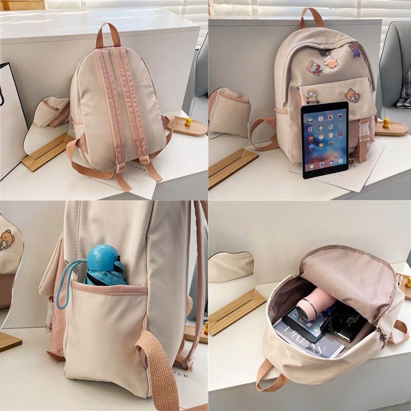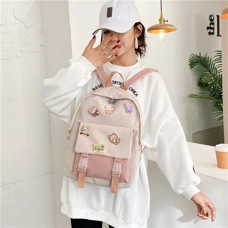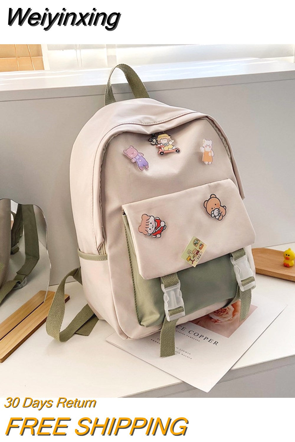 Weiyinxing Girls Nylon Backpack INS Fashion Waterproof Backpack Teenager Cute Student School Bag Lady Large Capacity Simple Travel Bag