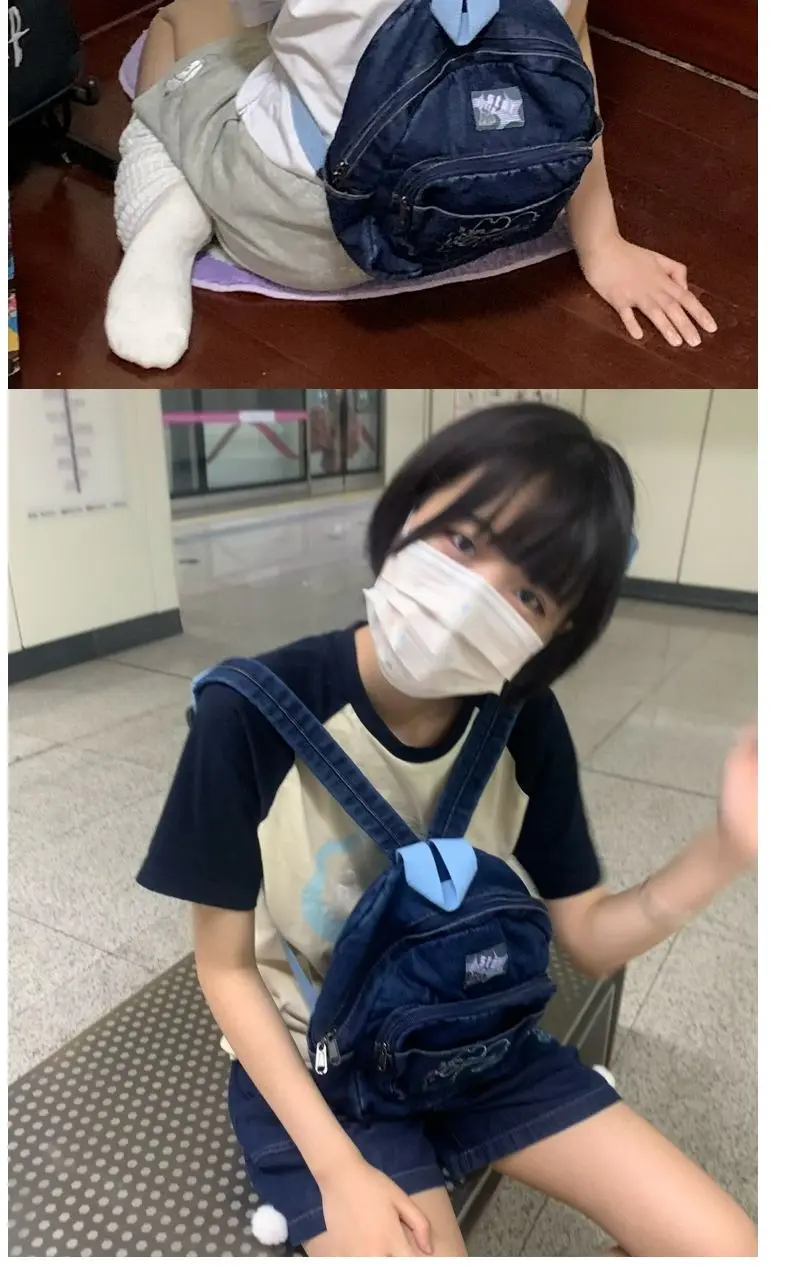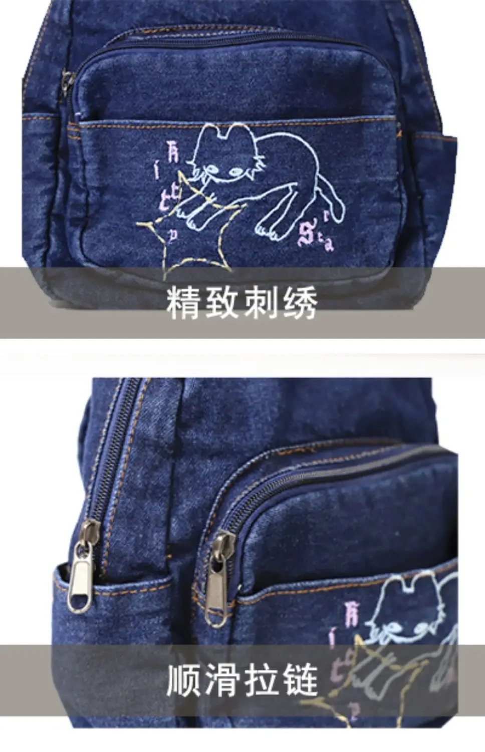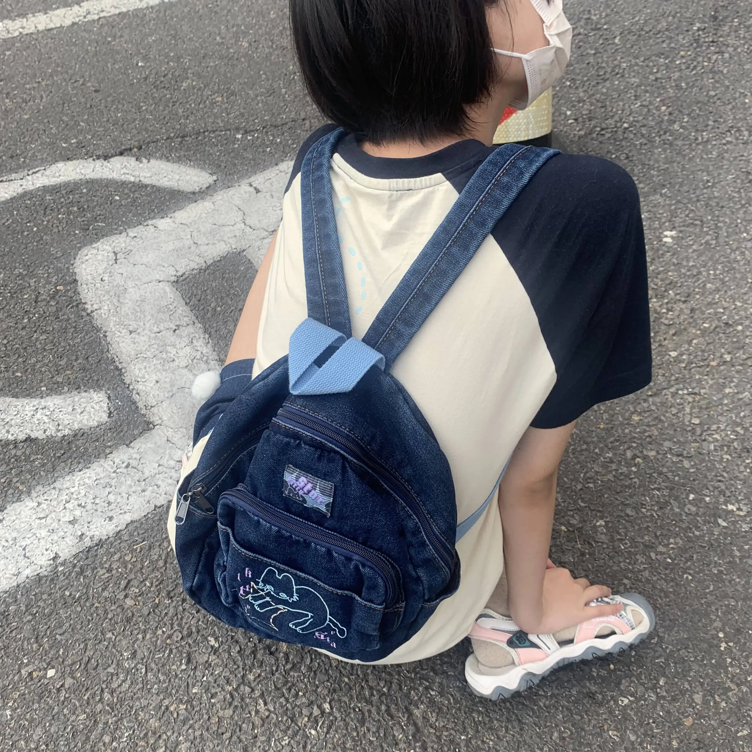 Weiyinxing Harajuku Denim Backpacks Women Vintage Cat Embroidery Chic Casual Y2k Backpack Female Retro Mini Cute Mochila Aesthetic
