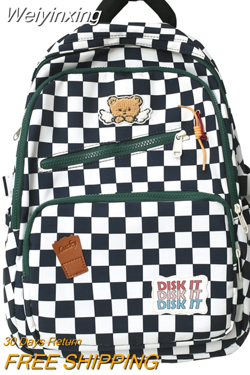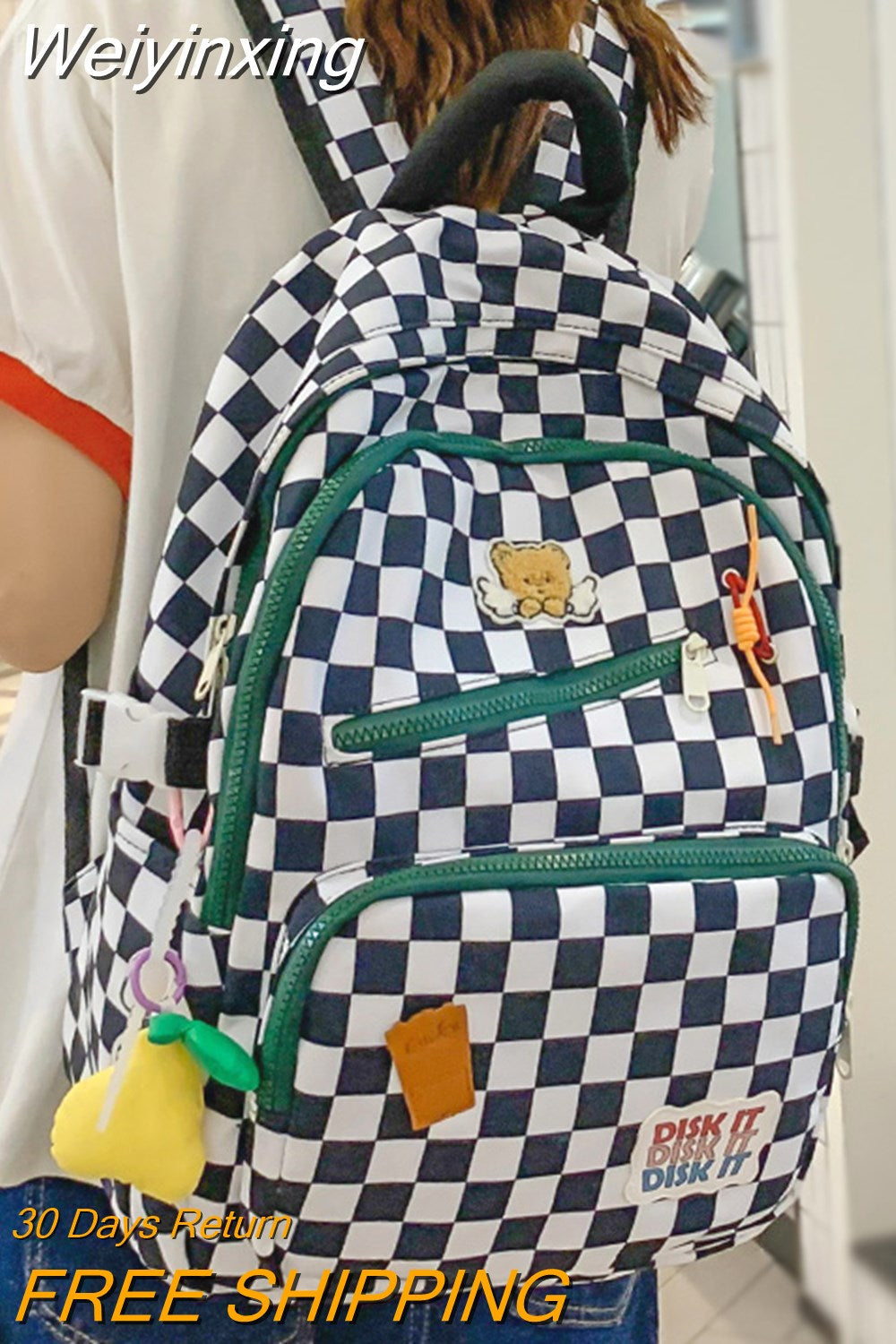 Weiyinxing Harajuku Plaid Student Bag Girl Travel Book Backpack Trendy Female Laptop College Backpack Fashion Women Nylon School Bag