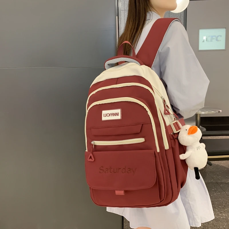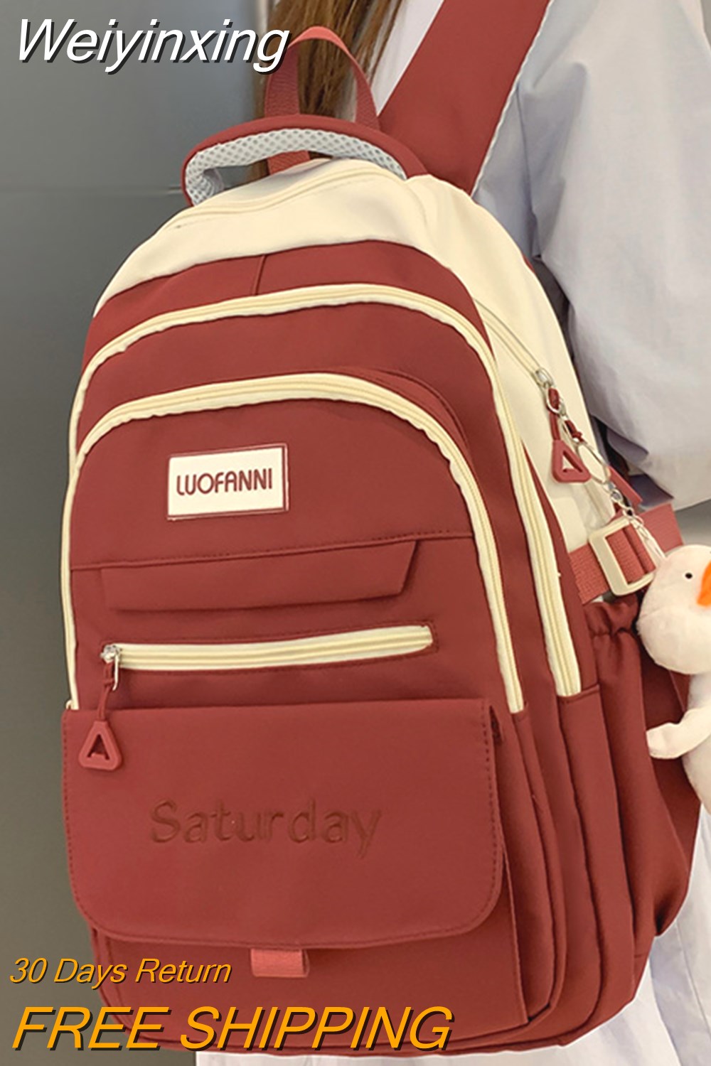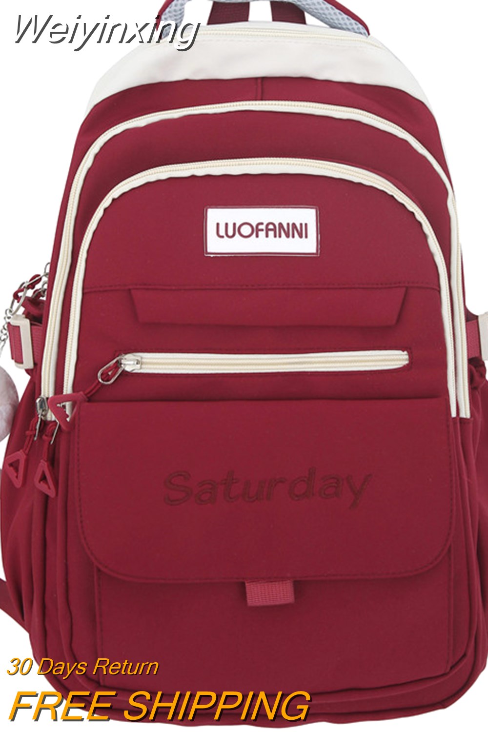 Weiyinxing High Capacity Red Leisure College Backpack Trendy Women Fashion Nylon Laptop Book Bags Girl Cute Travel School Bag Female