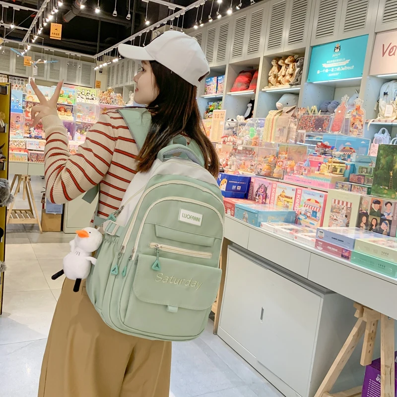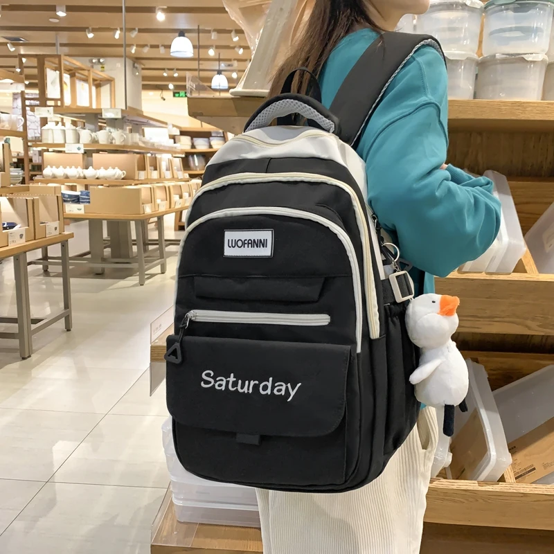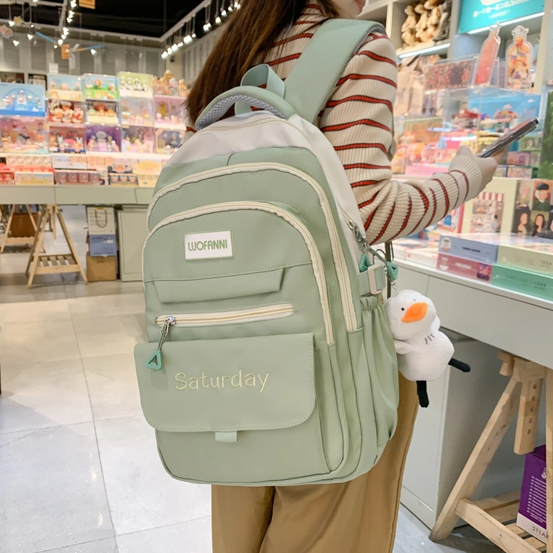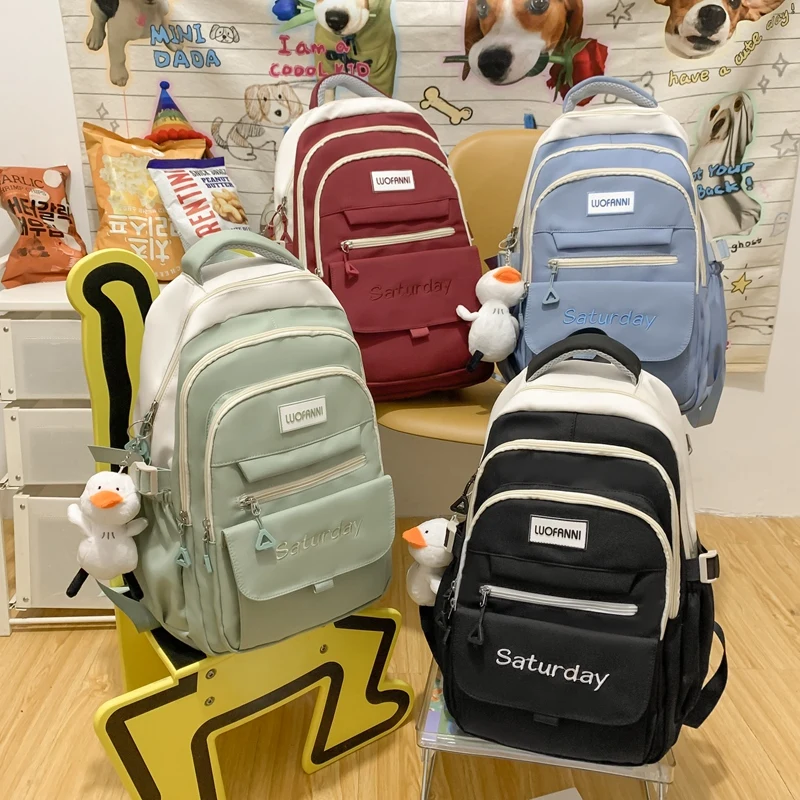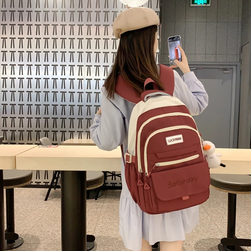 Weiyinxing High Capacity Red Leisure College Backpack Trendy Women Fashion Nylon Laptop Book Bags Girl Cute Travel School Bag Female