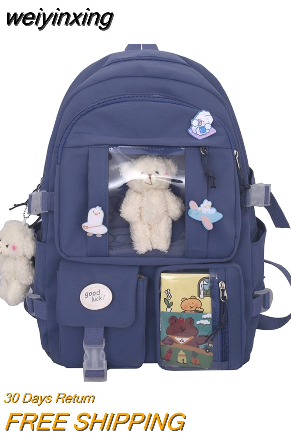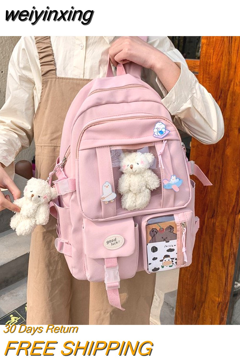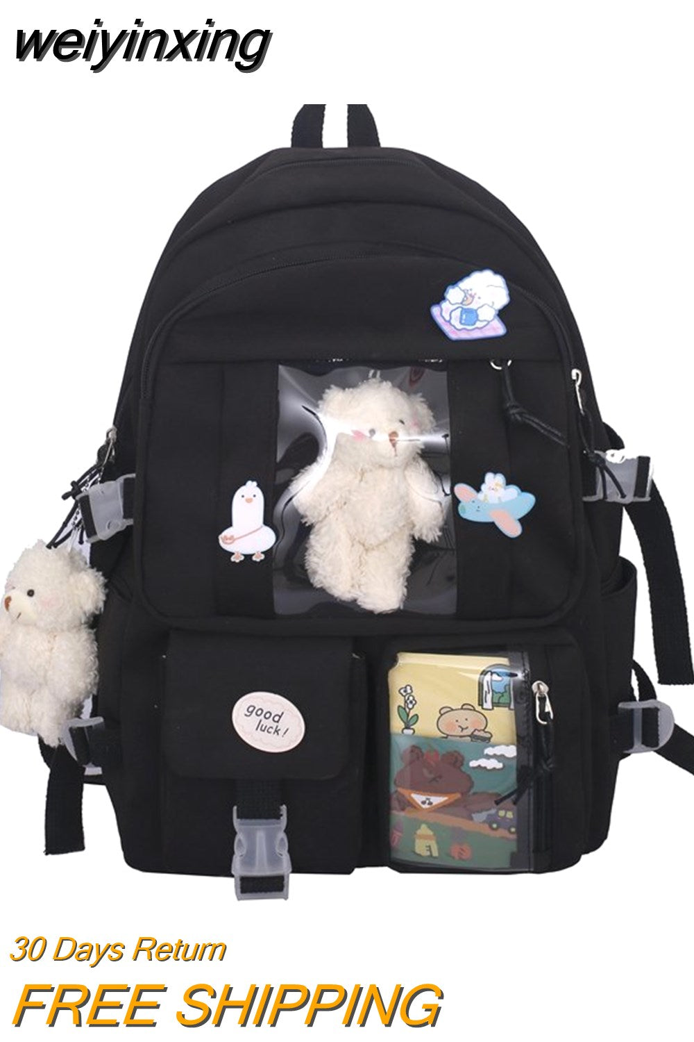 weiyinxing High School Girls Backpack Waterproof Multi Pockets For Teenage Harajuku Kawaii Black Women Cute Mochila SchoolBags