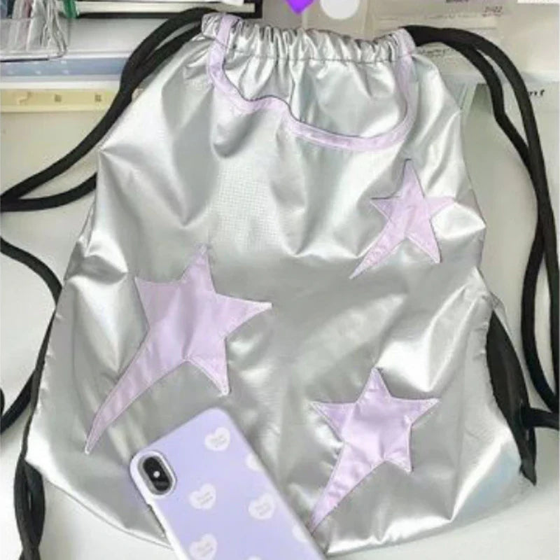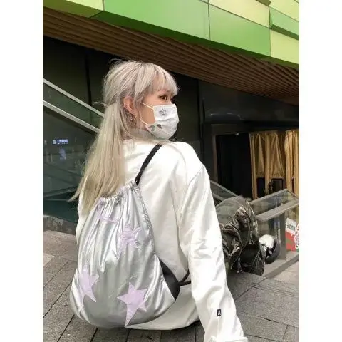 Weiyinxing Japanese Preppy Sweet Star Schoolbags Men Women Harajuku Y2k Aesthetic All Match Backpacks Drawstring Casual Kawaii Bags