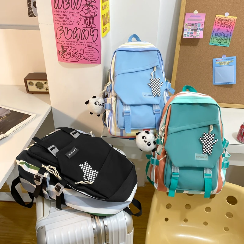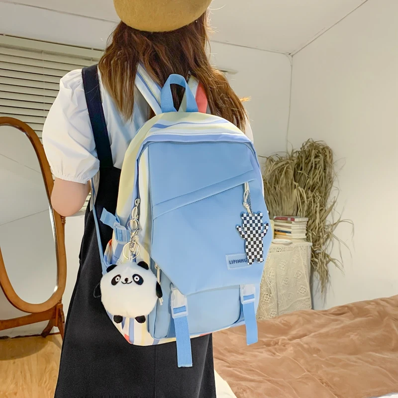 Weiyinxing Kawaii College Backpack Women Nylon School Bag Girl Travel Cute Book Backpack Trendy Fashion Cool Lady Laptop Student Bag