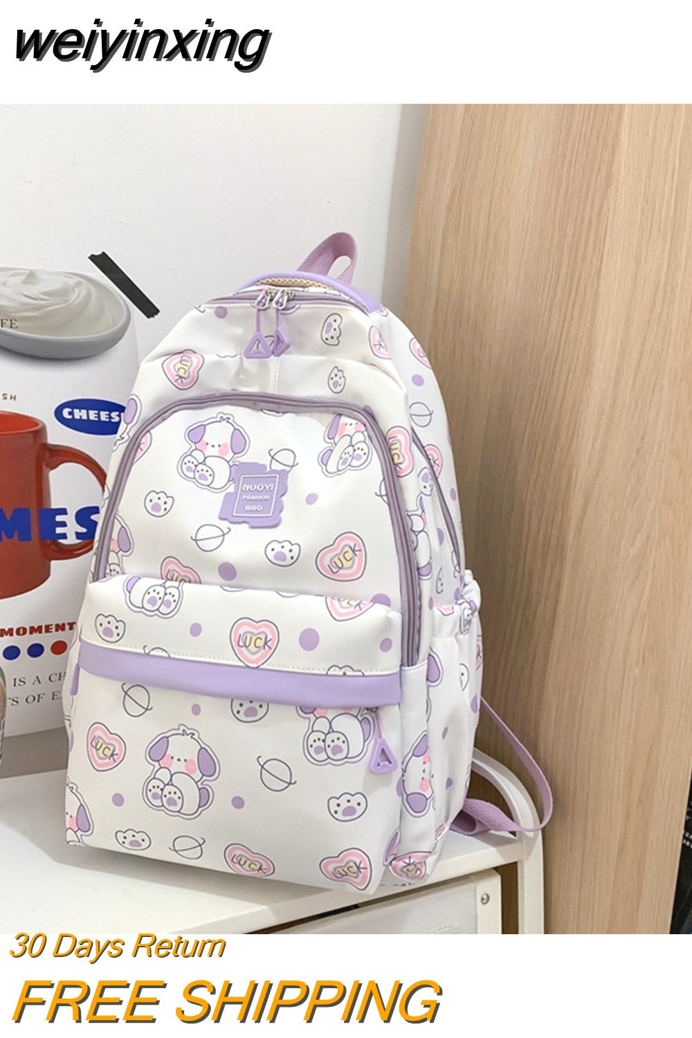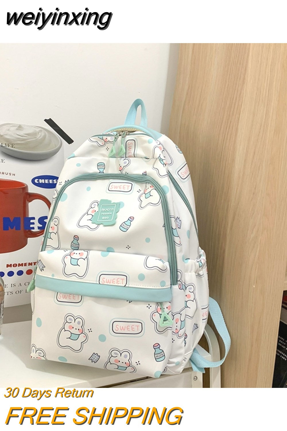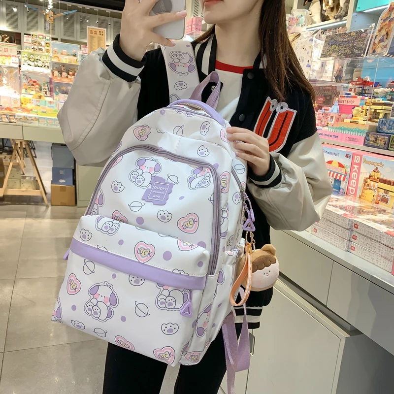weiyinxing Kawaii Girls Backpack Schoolbag Fashion Cartoon Bookbag Waterproof for Teen Nylon Cute Women Mochila Shoulder Rucksack